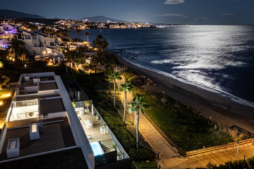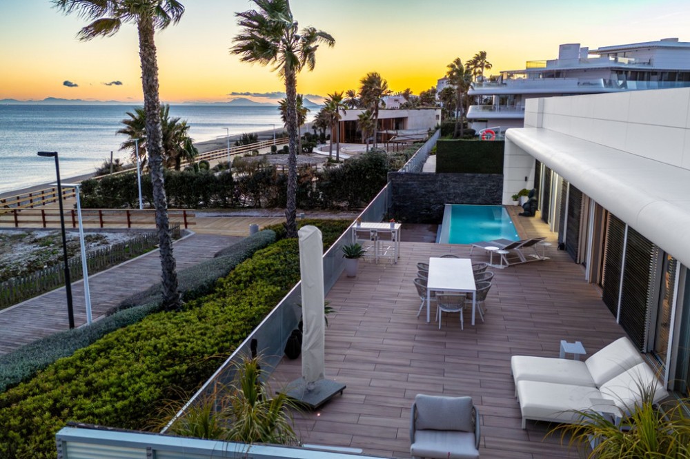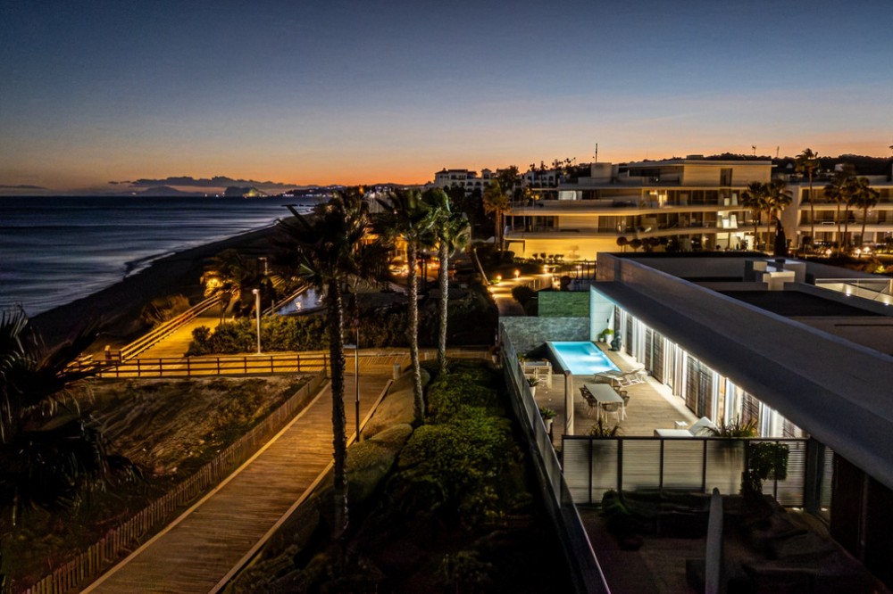 - Casa Azul is a modern 4-bed, 3-bath beachfront villa in the exclusive “The Edge” complex in Estepona. The home offers open plan living and a bright interior with large windows. You have a private pool, an expansive terrace and direct beach access. The villa sits in a premium gated community with spa and gym facilities. Inside, each bedroom includes an ensuite bathroom and fitted wardrobes. The layout is simple and practical. The main living area opens to the terrace which gives clear sea views. The design focuses on comfort with clean finishes. Casa Azul is ideal for buyers who want luxury with privacy and security. The location brings strong long term value. The mix of modern style and beachfront access creates a rare opportunity. Potential buyers will see a home that is ready to enjoy today.
