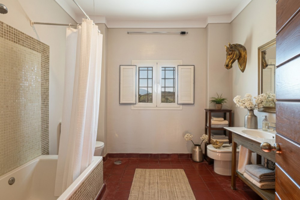 - This charming villa is located in an idyllic gated community just a 5-minute drive from the cozy village of Archidona, which offers everything you need, including shops, restaurants, and pharmacies. The community currently consists of seven villas, and the entrance gate can be operated remotely from your own garden for convenience and privacy. The villa combines unique charm with personality, and a spectacular renovation has transformed it into an exceptional home. On the large plot, there is also a second building of 235 m² across two floors, previously used as a gallery. It is in need of renovation, offering endless possibilities limited only by your imagination. The main house features four bedrooms, each designed to provide a warm, intimate, and cozy space. The three bathrooms, including one en-suite, ensure comfort and privacy for both residents and guests. The open kitchen is modern and highly functional, with a beautiful kitchen island overlooking the living area, creating a welcoming and cozy atmosphere. The foyer impresses visitors with its elegance and stylish touches. An Andalusian-style interior patio adds authentic charm and offers a peaceful outdoor space to relax while enjoying spectacular views of the countryside and mountains. Enjoy sunny days by the private swimming pool, set within tranquil gardens filled with ornamental, fruit, and olive trees.