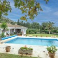 - Independent villa on a single floor, bathed in sunlight thanks to its south-facing orientation and surrounded by a spacious, well-kept flat garden with lush vegetation and a private pool. Upon entering the property, an elegant hallway divides the home into the sleeping area, with 3 bedrooms and 2 bathrooms (one of them en suite), and the day area, where you will enjoy a bright and spacious kitchen with direct access to a charming east-facing porch, perfect for enjoying a sunny breakfast. The large living-dining room, with its wide windows, opens onto a beautiful covered porch with privileged views of the garden and the pool, creating an ideal space to relax or share moments with the family. The property also includes a closed garage for one car and two private outdoor parking areas, one at the entrance and another at the back of the garden. Its location is unbeatable: within a comfortable walk from a small shopping centre and just a few minutes’ drive from the A-7, Benalmádena and the beach. A villa full of charm, comfort and privacy.