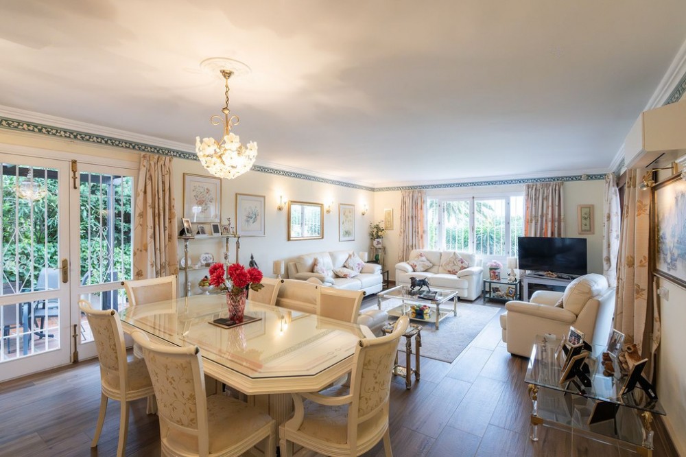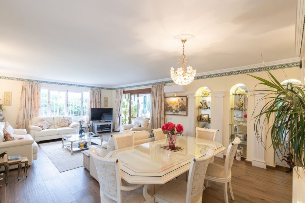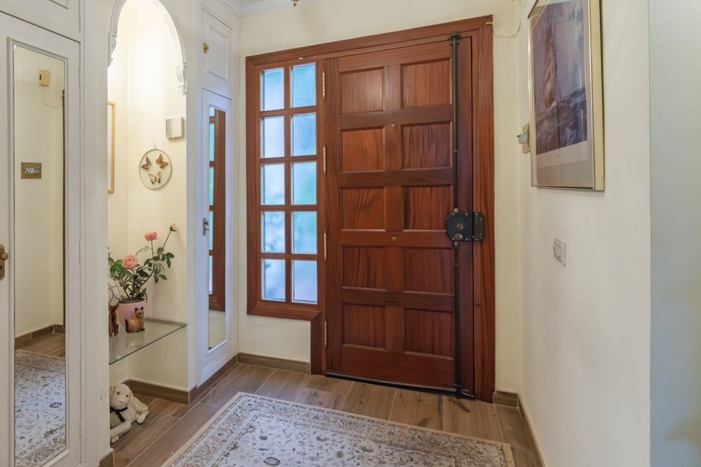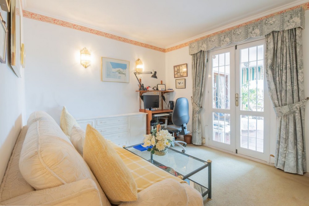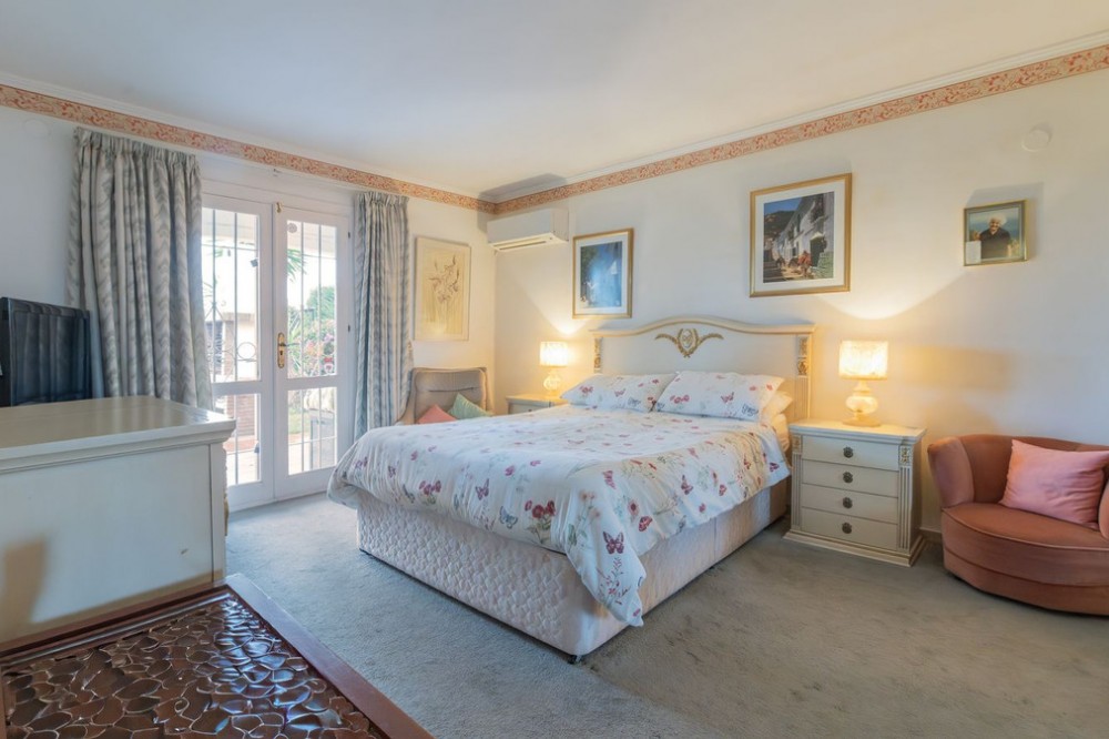 - Independent villa on a single floor, bathed in sunlight thanks to its south-facing orientation and surrounded by a spacious, well-kept flat garden with lush vegetation and a private pool. Upon entering the property, an elegant hallway divides the home into the sleeping area, with 3 bedrooms and 2 bathrooms (one of them en suite), and the day area, where you will enjoy a bright and spacious kitchen with direct access to a charming east-facing porch, perfect for enjoying a sunny breakfast. The large living-dining room, with its wide windows, opens onto a beautiful covered porch with privileged views of the garden and the pool, creating an ideal space to relax or share moments with the family. The property also includes a closed garage for one car and two private outdoor parking areas, one at the entrance and another at the back of the garden. Its location is unbeatable: within a comfortable walk from a small shopping centre and just a few minutes’ drive from the A-7, Benalmádena and the beach. A villa full of charm, comfort and privacy.