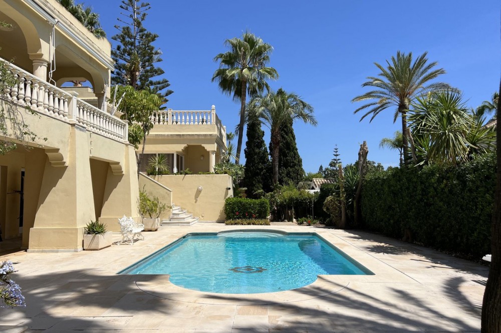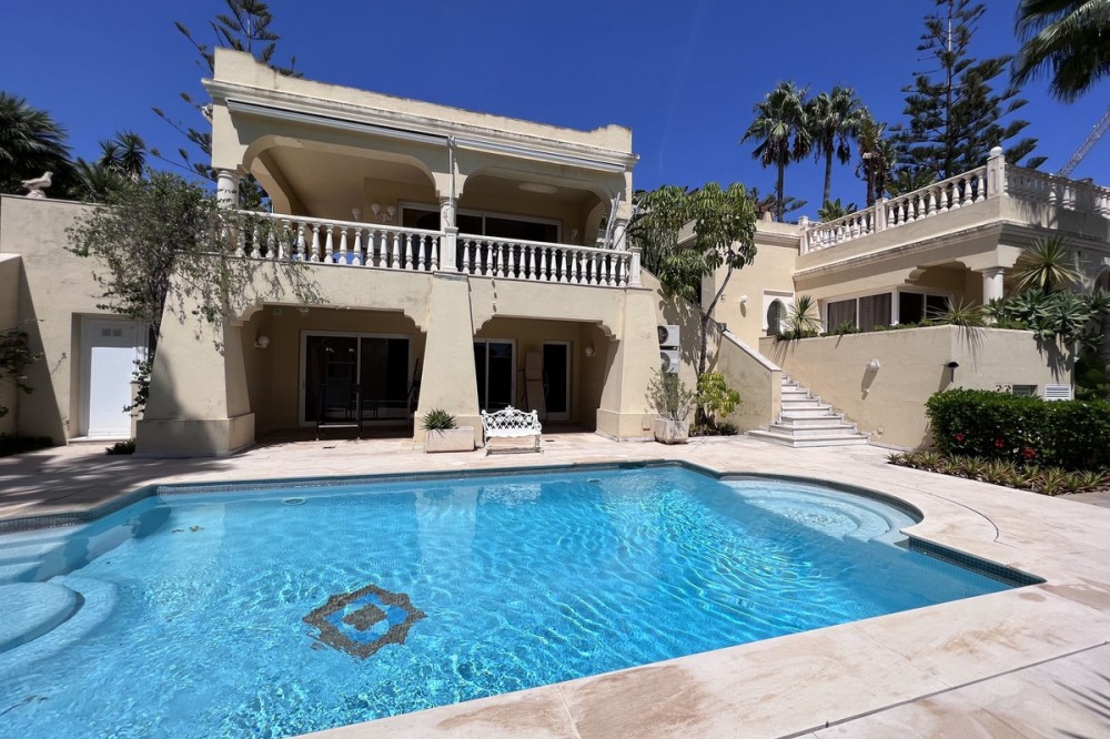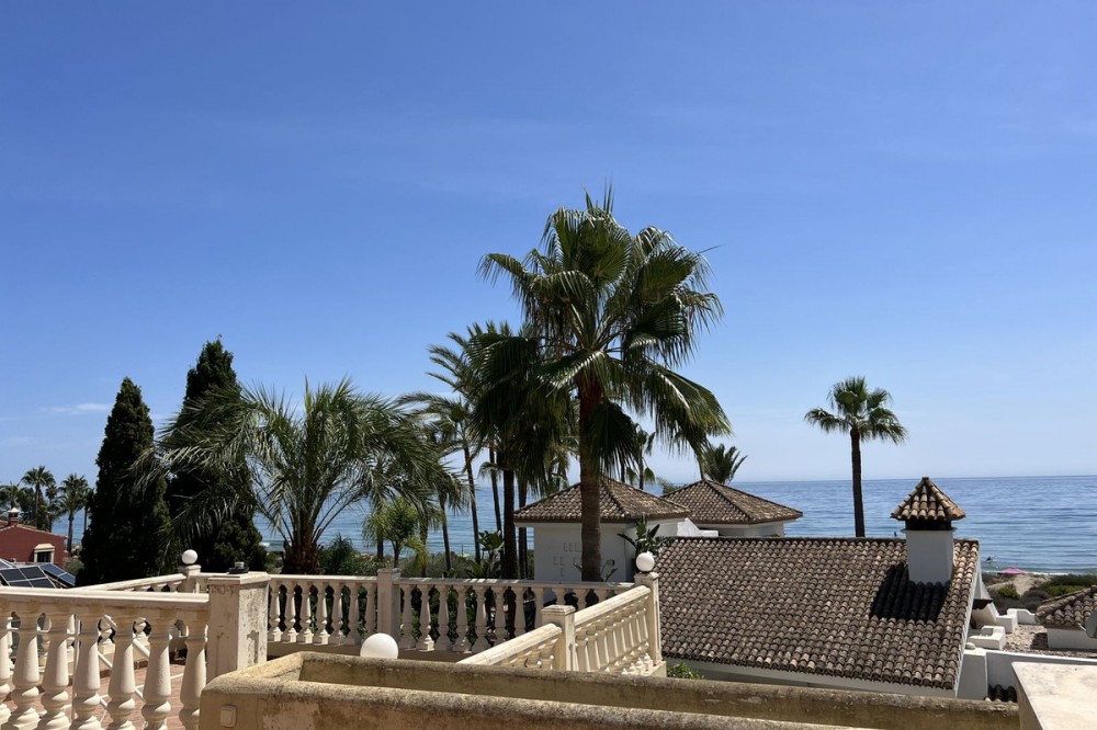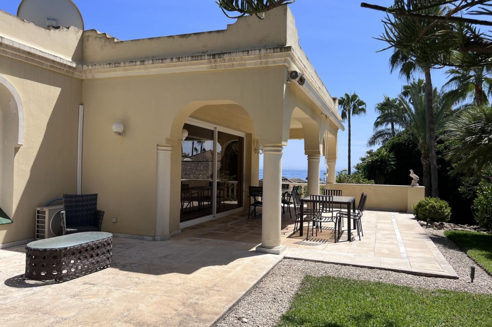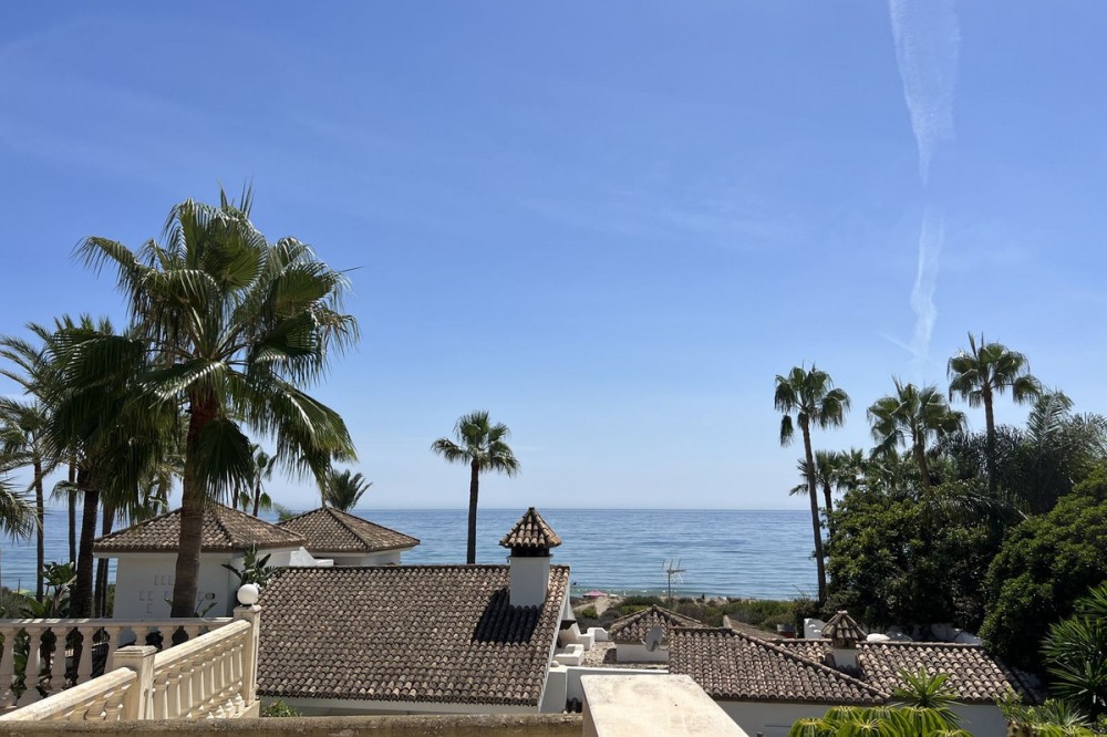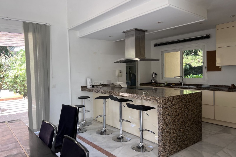 - GREAT SE VIEW PROPERTY ; 2nd line beach, Bahia de Marbella, 4 bedrooms/ 4 bathrooms ; renovation needed Very private property located just few steps from the sandy beach of Bahia de Marbella. Main floor : open plan kitchen with the separate laundry room/storage; dining room, salon with fire place zone; main bedroom with bathroom on suite. Top floor with independent entrance you will find guest apartment which can be perfect for the office space with incredible sea views. Pool level - ground floor - 2 bedrooms, games room, garage. Bahia de Marbella is just few minutes driving to Marbella, 30 minutes to airport.The urbanization is gated and has 24h security on site.