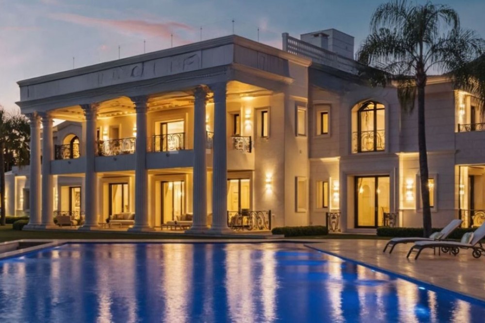 - A truly rare palatial residence on today’s market, this exceptional estate represents a premier investment opportunity in the heart of the prestigious Sierra Blanca, on Marbella’s renowned Golden Mile. Designed by award-winning Spanish architect Jesús del Valle Cardenete, the property was distinguished with the 2017 Premios Maceal Award for Best International Villa. Exuding classic sophistication and timeless elegance, the mansion occupies one of the most sought-after locations in Marbella. Its privileged south-facing orientation grants breathtaking views over the Mediterranean Sea, framed by the iconic La Concha mountain. Set on an expansive and level plot of 5.850 m², the impressive 4-level residence offers 2.442 m² of living space, comprising 10 bedrooms and 13 bathrooms. A grand neoclassical entrance with Corinthian columns leads to an opulent hall featuring a sweeping double staircase and lift access to all floors. The main level includes elegant living and dining rooms, two kitchens, an office, games room with bar, TV lounge, and three guest suites. All living spaces flow onto generous covered terraces and a superb BBQ area, ideal for outdoor entertaining. The landscaped gardens showcase an infinity pool, serene water features, and ample sunbathing areas. The magnificent Master suite offers dual bathrooms and dressing rooms, a private lounge, and a terrace with panoramic sea views. Additional family suites each include private terraces and lounges. The basement houses an eight-car garage, cinema, wine cellar, and a full SPA with indoor pool, Jacuzzi, sauna, steam bath, gym, and massage room, along with staff quarters. Finished to the highest standards, this extraordinary villa embodies Marbella’s most luxurious lifestyle.