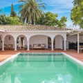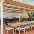 - This beautiful villa has undergone an extensive refurbishment, offering a very comfortable and luxurious home. Thanks to its west facing orientation this property offers the most beautiful panoramic views of the coastline and surrounding hills. The current owners took the property back to the bare bones and recreated a stunning one level Andalucían villa, complementing the beautiful traditional architecture with a highly modern interior and a no expense spared interior design. For clients looking for an investment opportunity or some supplementary income, this property is sold with a tourist licence and proven rental income. Being sold fully furnished, this home is key ready. However, should more bedrooms be required by the new owners the house is prepared for a second floor which would take the house from 3 bedrooms to a 6 bedroom property. Currently this home has 3 large double bedrooms, all offering full ensuite bathrooms while the master bathroom also has a bath tub. The beauty of this house is that all bedrooms are on the same level, perfect for families or those that do not want stairs. Two of the bedrooms have direct access to the pool area whilst the third does not, which is ideal for those with small children. There are indoor and outdoor dining areas, a fabulous kitchen with breakfast island and direct access to the gardens, hot and cold A/C throughout the property, as well as under floor heating and a fireplace for the winter. The pool area is absolutely stunning with beautiful wicker sunshades, large sunbeds and Balinese inspired daybeds for those wanting lazy summer siestas by the pool. The salt water pool itself has been cleverly designed with an extended shallow ledge and is heated for year round use, and has a handy solar panel cover ensuring economic usage. Next to the pool is the outdoor summer kitchen offering a true Andalucian way of al fresco cooking with BBQ and even a pizza oven. This shaded outdoor dining area seats up to 10 comfortably. The gardens that surround the house are absolutely beautiful boasting a flat grass lawn, petanque area and plenty of fruit trees, tropical plants and avocado trees. Parking: secure parking for 2 cars within the boundaries of the home. The villa is located in the exclusive urbanisation of Hacienda las Chapas, Marbella. This residential enclave is the best of both worlds: it is quiet and offers complete privacy, seclusion and 24-hr security while being close to schools, amenities and beaches. The urbanisation also has tennis courts for the exclusive use of the residents. In terms of beaches the nearby areas of Elviria, Cabo Pino and Las Chapas are known for their lovely sandy beaches and family friendly beach restaurants and bars plus the world-famous Nikki Beach is a few minutes drive away for those that want to party the days away. Furthermore, Cabo Pino port offers a variety of water sports so there is plenty of amusement for everyone and Marbella town is no more than 10 minutes away. Within a 5 minute drive are 3 golf courses, 3 supermarkets and a varied choice of restaurants and bars. Malaga airport is only 20 mins away.