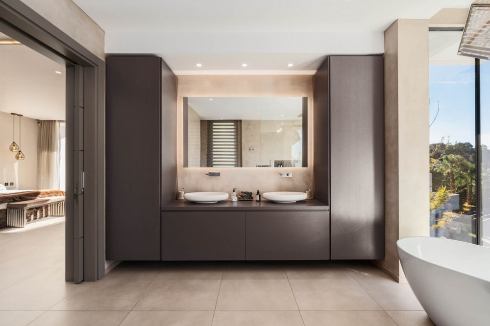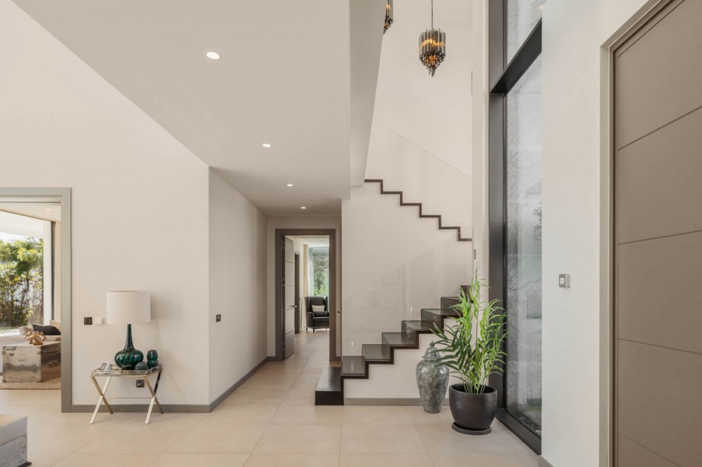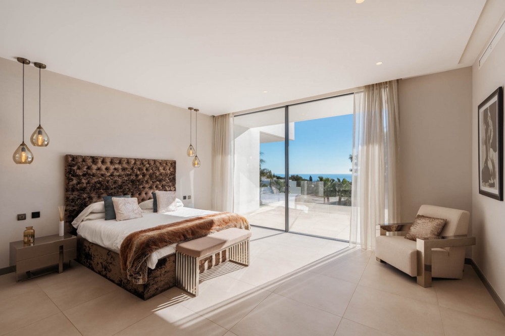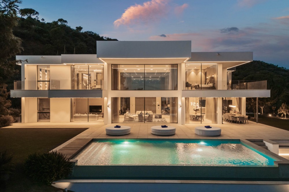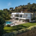 • Designed by a distinguished architect, this villa is spread over two levels with an impressive built area. It features five luxurious bedrooms, each with its ensuite bathroom, an additional guest toilet, and a guest apartment that matches the main villa's standards. The villa offers a south-facing orientation that maximizes stunning panoramic vistas, showcasing the sea, mountains, and an inviting pool. Throughout are modern touches like electric blinds, a state-of-the-art alarm system, and an automatic irrigation system. Every detail reflects understated elegance, with top-tier Gaggenau appliances providing a touch of convenience. El Madroñal, where the villa is located, is one of the jewels in the area of Benahavís. Known for its luxury real estate, this neighborhood offers privacy and natural beauty. Tucked away in the hills above San Pedro de Alcántara, the area promises exclusive living with a touch of tranquility. The villas here, often Mediterranean in architecture, exist in harmony, providing both traditional charm and modern comfort. Each space within this chic villa is carefully crafted, offering a lavish lifestyle to its residents. The interiors are fully furnished with contemporary elegance in mind. The outdoor terraces extend the living space, inviting residents to entertain or simply relax with the Costa del Sol as a backdrop. Beyond the villa's boundaries, El Madroñal's serene setting is enriched by its woodland surroundings, appealing to nature lovers. Proximity to the Sierra de las Nieves Natural Park further enhances the living experience with opportunities for hiking and bird watching. Amenities in and around El Madroñal add to the appeal. Renowned dining establishments such as "La Casita" and "El Coto" offer culinary delights, catering to refined tastes. For sports enthusiasts, the area is close to several top-tier golf courses, including the legendary Los Arqueros Golf & Country Club designed by Seve Ballesteros. Shopping options are just a short drive away in San Pedro de Alcántara, with Puerto Banús offering luxury boutiques and a lively marina. Families benefit from the proximity to quality educational institutions such as Aloha College and Marbella Montessori School. Though secluded, El Madroñal boasts easy transportation routes. The AP-7 motorway ensures excellent connectivity to nearby cities like Marbella and Estepona, though having a car enriches convenience. Public transportation options remain limited, underscoring the preference for private journeys. Safety and privacy are paramount, with double-gated entry and 24-hour security in El Madroñal, providing peace of mind to its residents. Living here means experiencing serene mornings warmed by the sunrise over the mountains and peaceful evenings with the Mediterranean's shimmer under the moonlight. Whether sought after as a long-term family home or a lavish holiday haven, it stands as a testament to luxury living at its best. In El Madroñal, you're part of a cosmopolitan community, harmonizing diverse cultures. Over the years, significant developments have enhanced this area, ensuring it's a prime real estate location. The villa is a prized gem within this neighborhood, provides a deserving homeowner with aesthetics, comfort, and security. Benahavis itself enriches the experience with its breathtaking environment and recreational opportunities. El Madroñal, with its exclusive feel and community spirit, offers more than just a residence. It embodies a lifestyle where every view inspires and each moment beckons comfort. This balance of luxurious living, natural beauty, and accessible amenities is ideal for those seeking both a peaceful retreat and a well-connected hub. Located just a 5-minute drive from essential services and 15 minutes from the coast, perfectly poised between seclusion and convenience. This property is more than just a house—it’s a place where memories are forged and cherished. It stands in one of Southern Spain's most beautiful enclaves and represents an unparalleled opportunity to embrace a harmonious balance between elite lifestyle and breathtaking natural surroundings.