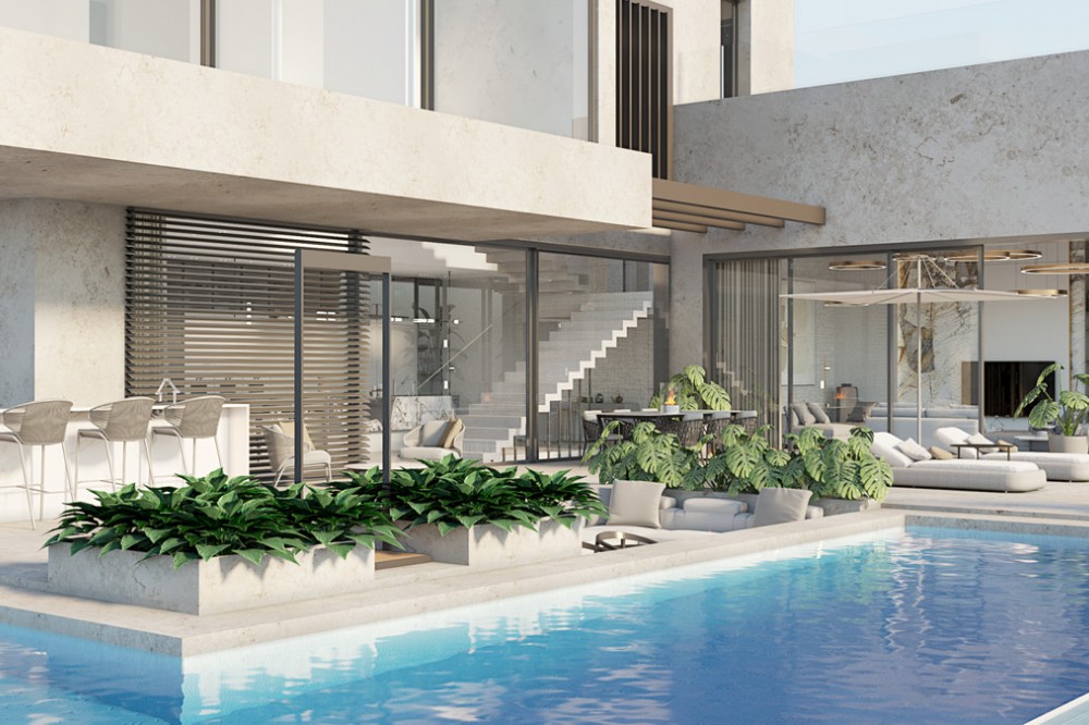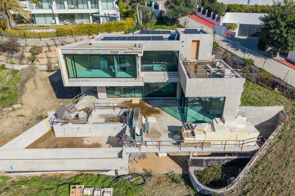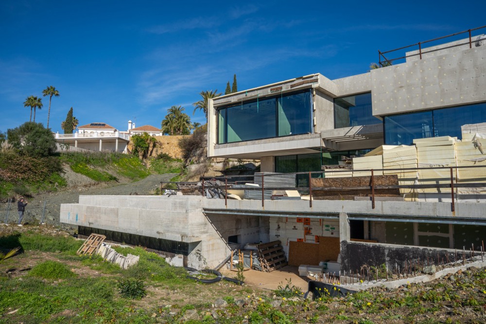 - Exceptional opportunity to acquire a luxury villa project, located on an elevated south-west facing plot in the prestigious residential area of La Alquería, Benahavís. The 1,350 m² plot enjoys a privileged raised position, offering open sea and golf views, excellent sunlight throughout the day and long-term value in one of the most sought-after villa zones on the Costa del Sol. The project comes with an approved building license for a contemporary 5-bedroom, 5-bathroom villa, distributed over three levels, designed with clean architectural lines and a strong focus on precision and quality: - 414 m² interior built area - 356.98 m² terraces - 81 m² private swimming pool - 200 m² panoramic rooftop terrace the property is already approximately 65% completed, executed with exceptional accuracy and craftsmanship. The concrete structure has been built extremely linear and precise, reflecting high construction standards from the very foundation. The villa features Sky-Frame floor-to-ceiling sliding doors, ensuring seamless indoor-outdoor living, maximum natural light and uninterrupted views. Located where Marbella, Estepona and Benahavís meet, La Alquería is one of the fastest-developing luxury residential areas, surrounded by golf courses, nature and exclusive villas. Just minutes from Puerto Banús, international schools, beaches and amenities, this property represents a rare turnkey-in-progress opportunity, ideal both as a dream home and a high-end investment. License. Construction in progress. Premium quality. Prime location. A truly outstanding opportunity in one of Marbella’s most promising luxury areas.