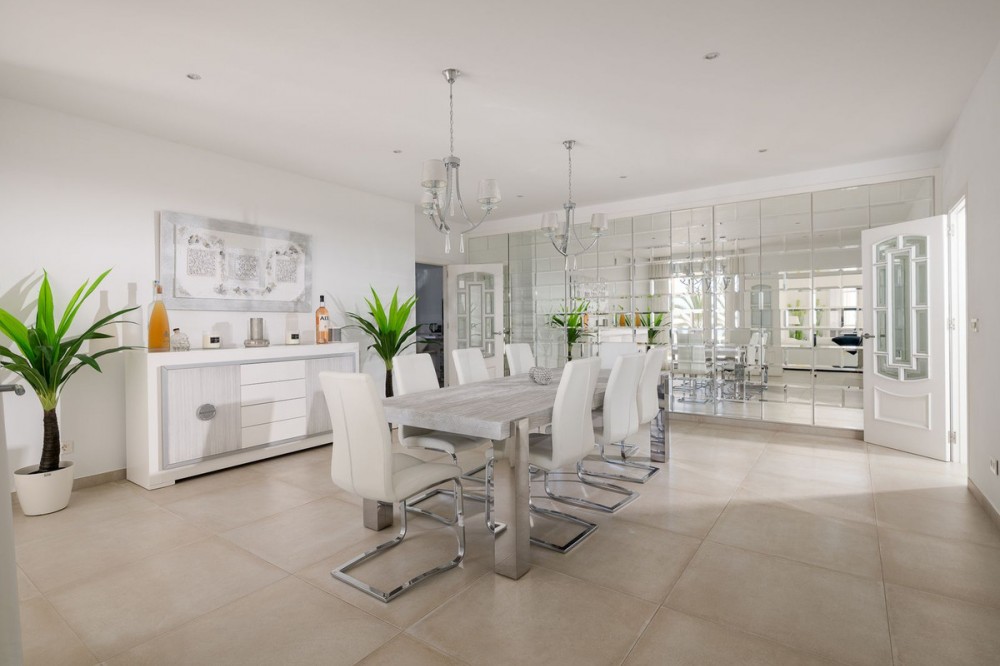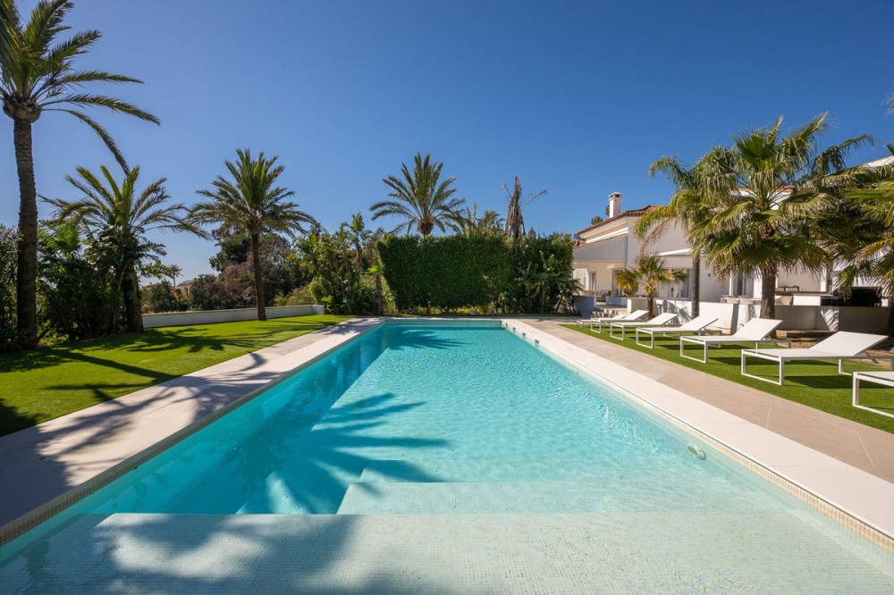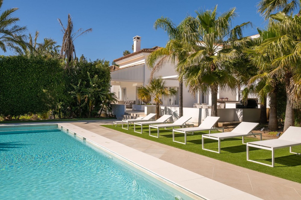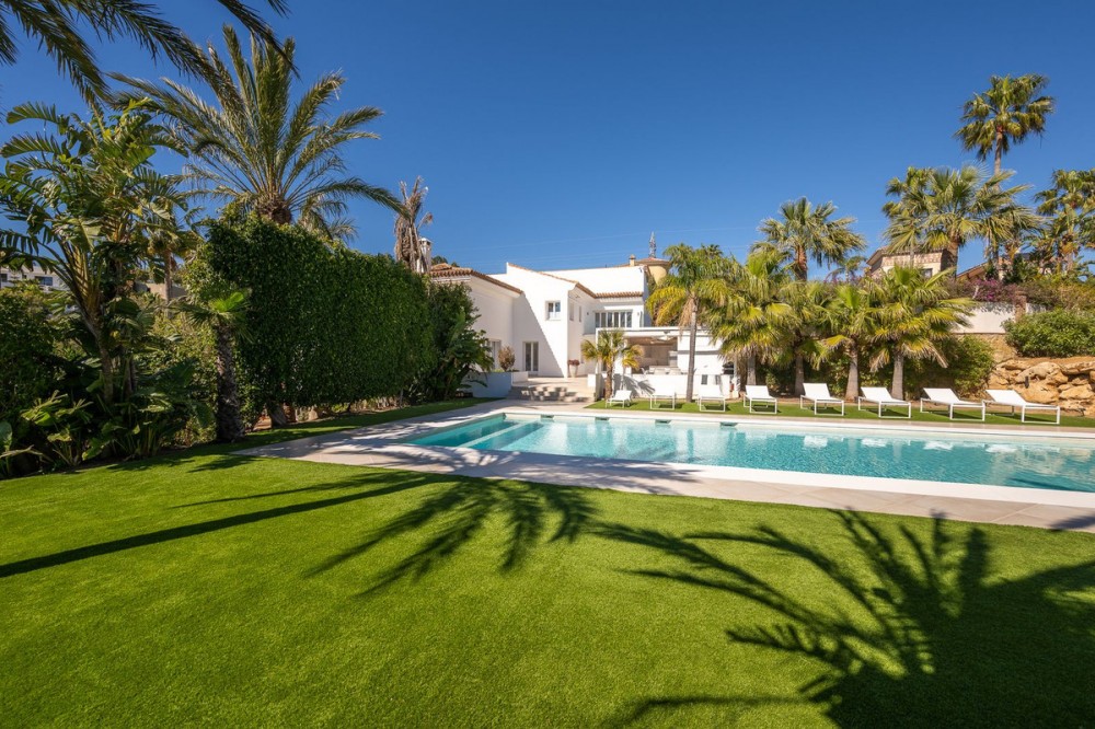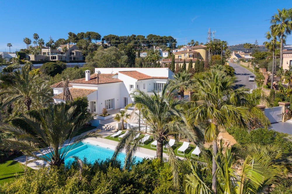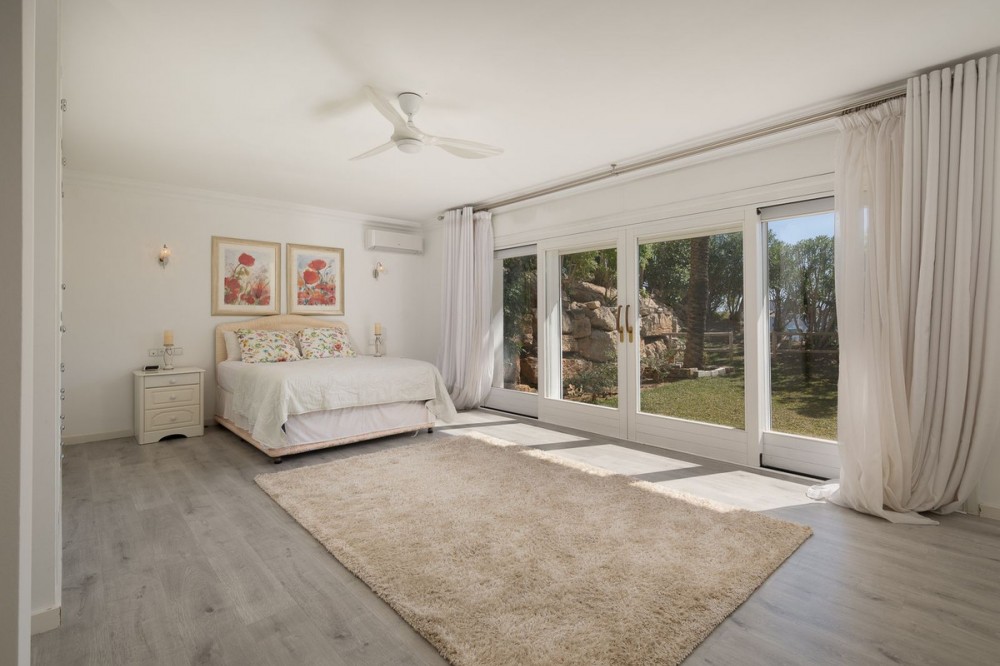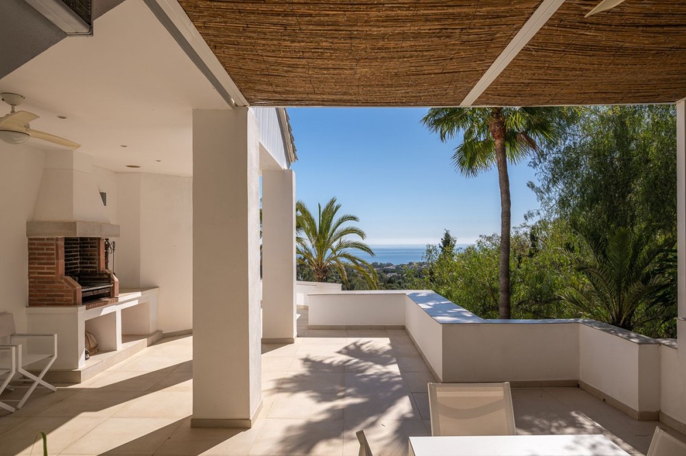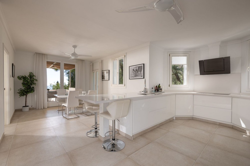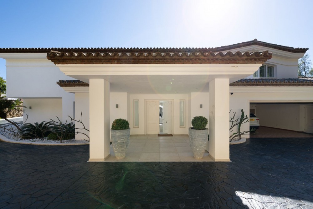 - Luxury Villa with Panoramic Sea Views in Marbella Spectacular south-facing villa located in an exclusive gated community with 24h security. Fully renovated in 2019, offering 1,100 sqm built on a 5,960 sqm plot. The property features 4 bedrooms and 4 bathrooms in the main house, plus 2 independent guest apartments. Highlights include spacious terraces with Mediterranean views, living room with fireplace, fully equipped modern kitchen, and two master suites with walk-in wardrobes and en-suite bathrooms. The lower level offers a complete wellness area with gym, sauna, indoor heated pool, jacuzzi, wine cellar and games room. Private pool, landscaped garden, underfloor heating, garage and absolute privacy. A unique opportunity to enjoy the finest Marbella lifestyle.