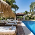 - This property resents a distinguished opportunity to own a luxury residence within the coveted gated community of El Madroñal in Benahavis. Blending timeless Madroñal charm with contemporary updates, this expansive villa offers 531 square meters of built space over two thoughtfully designed floors, perfectly tailored for those who value privacy, Panoramic views, and a harmonious blend of indoor and outdoor living. Completed with a significant renovation in 2024, this home is ready to offer an elevated standard of life in one of the Costa del Sol’s most secure and prestigious enclaves. The property stands out for its exceptional position, panoramic views, and timeless Andalusian character. Surrounded by more than fifty majestic palm trees, this private retreat embodies Mediterranean elegance, peace, and natural beauty. A rare opportunity to acquire ❖ A fantastic location within El Madroñal ❖ A Smart Investment, due to its large, unique plot with outstanding potential for future expansion or re-development. ❖ Guaranteed long-term value thanks to unchanging views and privacy, even as El Madroñal continues to evolve ❖ A private and secure retreat offering complete peace of mind. ❖ A beautiful and elegant house with Authentic Andalusian Charm ❖ Traditional architecture paired with spacious, open-plan interiors, with warm materials, high ceilings, and graceful arches create a timeless and welcoming ambiance. Views & lights ❖ Breathtaking panoramic sea views. ❖ Perfect south and southwest orientation for all-day sunshine and spectacular sunsets maximizing light and scenery. ❖ Along the property wall, twenty-five palm trees, offers a warm and elegant welcome. ❖ Set within mature Mediterranean gardens featuring jacarandas, lemon, orange and palm trees, creating an idyllic natural setting. Features & Comforts ❖ Underfloor heating throughout ❖ Hot and cold air conditioning ❖ Dedicated TV lounge ❖ Home cinema room (convertible into an additional bedroom if desired) ❖ Walk-in closet in the master bedroom ❖ Integrated surround sound system ❖ Automatic garden irrigation system
