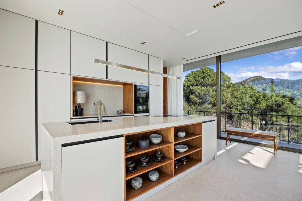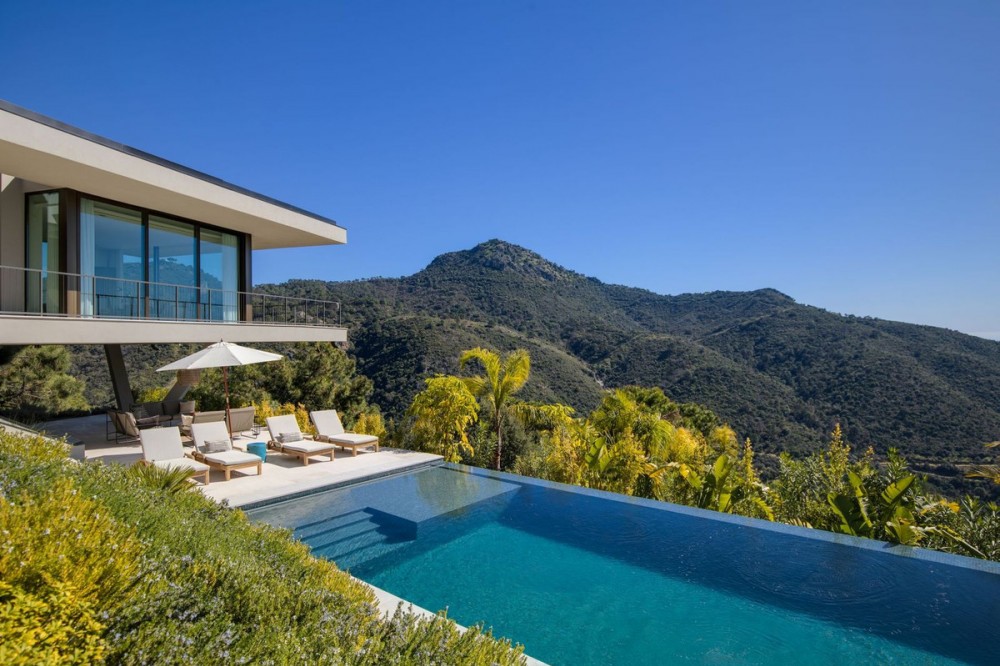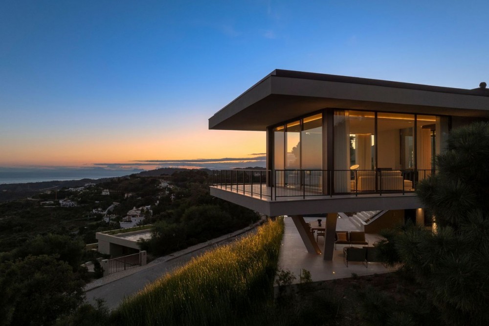 • Contemporary Luxury in Harmony with Nature Perched above the breathtaking Monte Mayor Valley, is a bespoke architectural statement that seamlessly blends cutting-edge design, energy efficiency, and a profound connection to its natural surroundings. Its distinctive boomerang-shaped layout, thoughtfully arranged on a single level, has been crafted to maximise natural light and sweeping views of the sea and mountains, while ensuring complete privacy and a constant dialogue with the landscape. An elegant summer kitchen, infinity pool, and expansive terraces extend the interior living spaces outdoors, creating a refined and fluid lifestyle experience. The property is composed of a main residence featuring three spacious en-suite bedrooms and a spectacular open-plan living area where the lounge, dining room, and kitchen coexist in effortless harmony, ideal for both sophisticated entertaining and relaxed family living. Independently positioned, the guest house offers its own living room, fully equipped kitchen, and two additional en-suite bedrooms, providing autonomy, comfort, and privacy for visitors. Designed with a philosophy of responsible luxury, the home incorporates an advanced aerothermal system, underfloor heating and high-efficiency climate control, complemented by solar panels, green roofs, and drought-tolerant landscaping. A dedicated electric vehicle charging station further reflects its alignment with a sustainable and forward-thinking lifestyle. Premium natural materials, top-tier specifications, and a private gym complete a residence where wellbeing, innovation, and environmental sensitivity coexist in perfect balance. Casa Miyabi is more than a villa, it is a lifestyle statement: exclusivity, architectural innovation, and ecological awareness in one of Southern Europe’s most privileged enclaves. For further information or to arrange a private viewing, please contact us, we would be delighted to assist you personally.