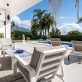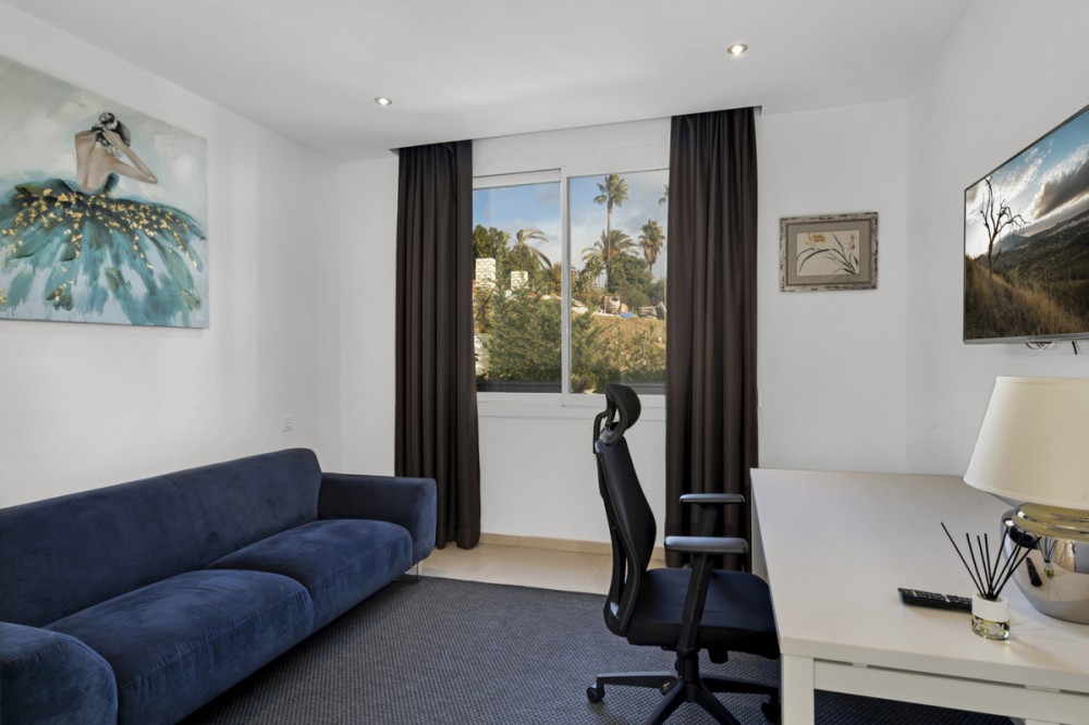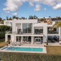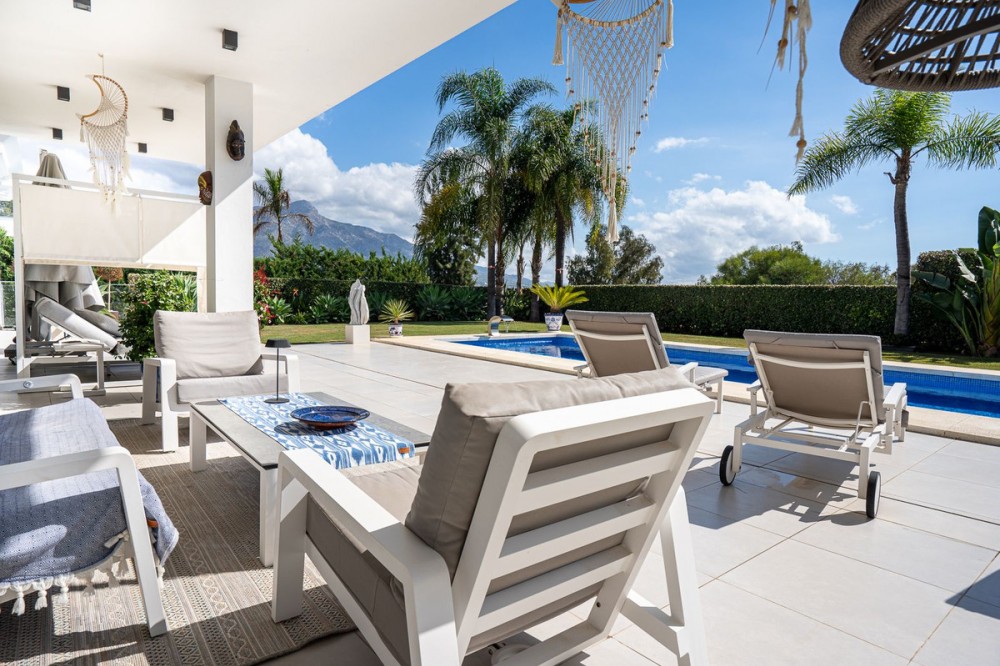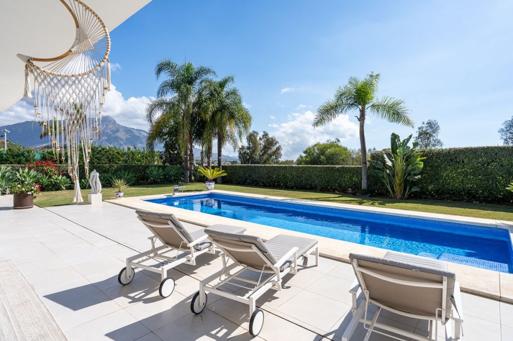 - Contemporary Villa with Panoramic Views in La Quinta This stunning modern villa offers open views over the Golf Valley, La Concha Mountain, and the Mediterranean Sea, perfectly positioned in a quiet and sought-after area of La Quinta, just a 3-minute walk from the prestigious Westin La Quinta Hotel. The villa combines elegant architecture with functionality and comfort, featuring bright, spacious interiors and beautifully designed outdoor spaces. Property Layout Ground Floor: An impressive entrance hall with double-height ceilings welcomes you into the home, leading to a modern fully fitted kitchen equipped with premium appliances, a bright living area with fireplace, and a guest bedroom with an en-suite bathroom. Expansive terraces surround the entire house, seamlessly connecting indoor and outdoor living. First Floor: Two elegant bedrooms, each with its own en-suite bathroom and direct access to a private terrace, offering wonderful views and plenty of natural light. Lower Level (-1): An additional bedroom with bathroom, a large utility area with laundry and storage room, plus a spacious multipurpose room ideal for a home cinema, gym, office, or wellness area. This level also features a garage for 3–4 cars, with ample space for bicycles or motorbikes. The villa is tastefully decorated and filled with natural light throughout. The double-height ceilings in the entrance hall and dining area create an enhanced sense of space and elegance. A spectacular rooftop terrace offers breathtaking panoramic views—perfect for relaxation or entertaining. The outdoor areas are beautifully designed and include generous terraces, a swimming pool, and a spacious landscaped garden, providing the perfect balance between comfort, privacy, and style. Ideally located just a few minutes’ drive from Puerto Banús, this exceptional property enjoys proximity to five renowned golf courses, fine restaurants, and boutique shops, making it the perfect choice for those seeking a luxurious Mediterranean lifestyle. Airport in Malaga just 35 min drive, center of Marbella 15 min drive.