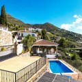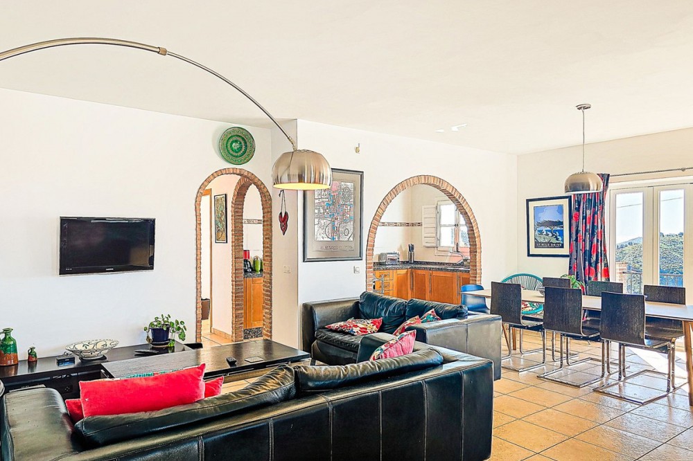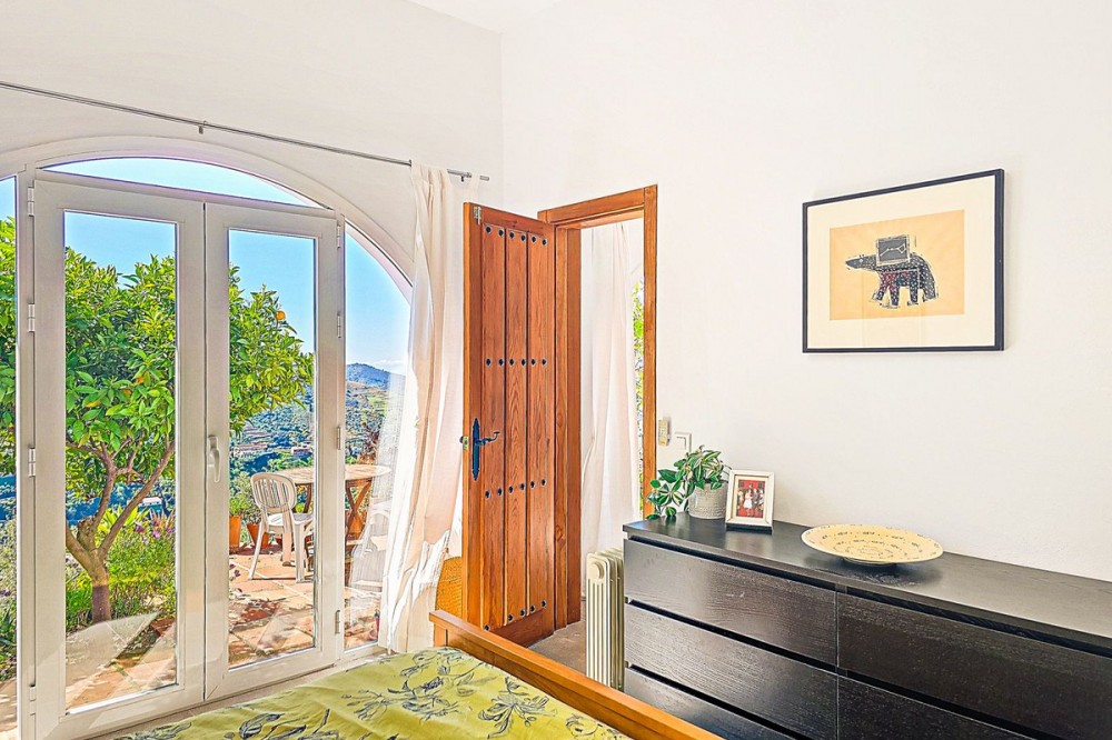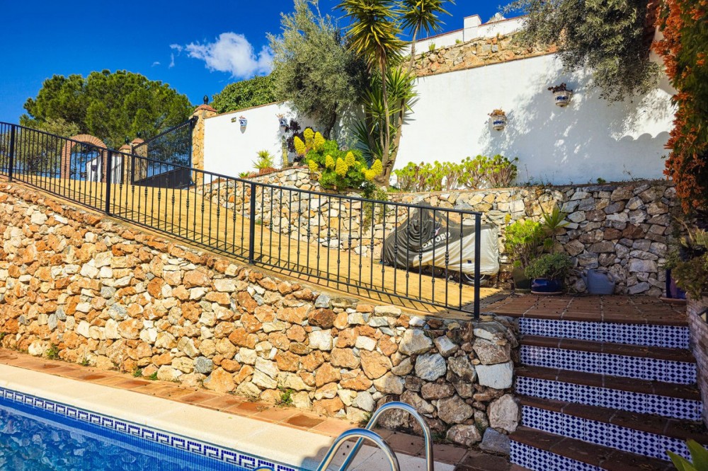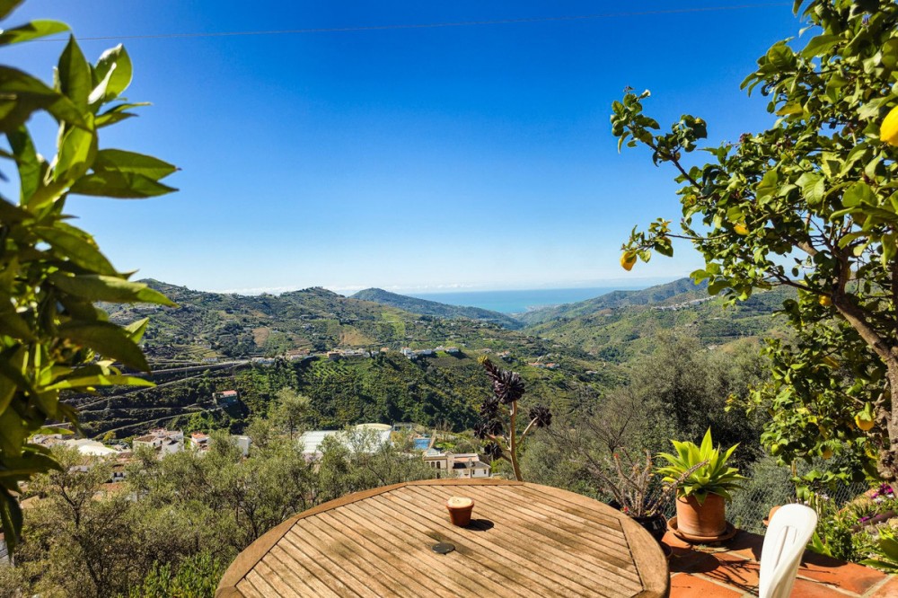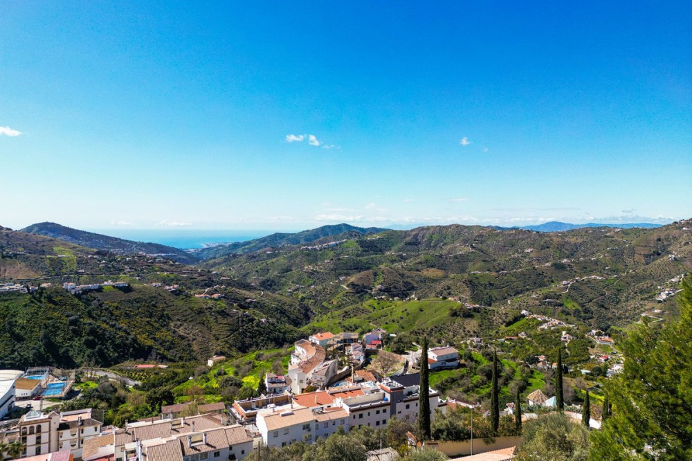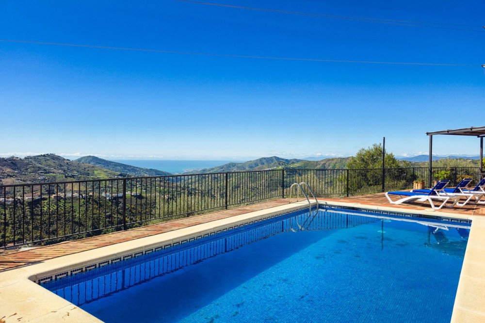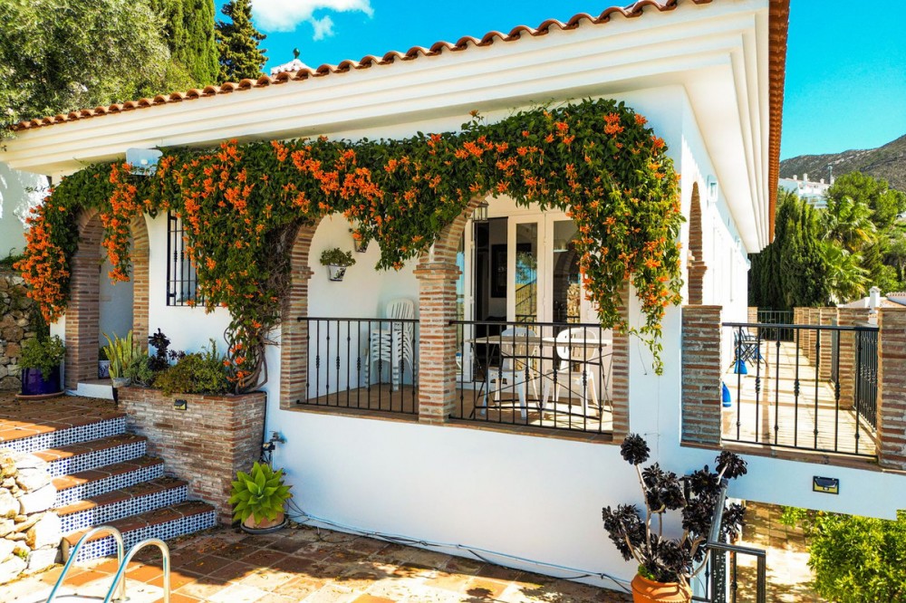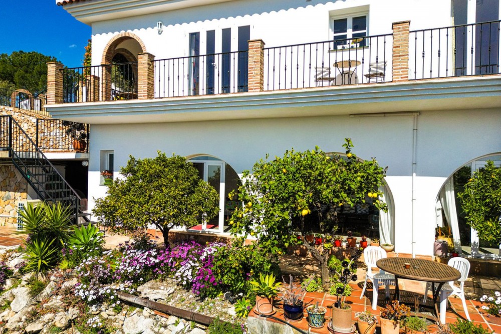 - This beautiful modern villa with 5 bedrooms and 3 bathrooms enjoys an enviable elevated position above the charming white village of Cómpeta, offering sweeping views of the Mediterranean Sea, rolling countryside, and the village rooftops below. Stylish, spacious, and impeccably presented, it is a home ready to move into and immediately enjoy. Access is easy and convenient via fully tarmac roads — no dirt tracks — leading to electrically operated gates that open onto a private driveway with secure off-road parking. From the moment you arrive, the setting and the views create a lasting impression. A welcoming covered terrace sits at the entrance to the villa, while an additional terrace runs the full length of the property, providing generous space to unwind, entertain, or simply soak in the panoramic surroundings. The heated swimming pool is perfectly positioned to take full advantage of the breathtaking views and allows for year-round enjoyment. Spacious sun terraces surround the pool, offering plenty of room for loungers and relaxed gatherings with family and friends. A shaded dining area provides the ideal spot for long, leisurely al fresco meals during the summer months. The pool and terrace areas are wonderfully private, creating a peaceful outdoor haven. The entire plot is fully fenced, ensuring both privacy and security for children and pets. Inside, the villa opens into a bright and inviting open-plan lounge and dining area. Large bi-fold patio doors frame the views beautifully and flood the space with natural light, seamlessly connecting indoor and outdoor living. Air conditioning and a free-standing log burner ensure comfort throughout the year. The fully fitted kitchen, accessed through a charming brick archway, is both practical and stylish. A further archway leads to the hallway and a separate utility room complete with washing machine, dryer, and additional storage space. The accommodation in the main villa includes a spacious master bedroom (4.4m x 4.4m) with bi-fold patio doors, fitted wardrobes, air conditioning, and an en-suite shower room (2.6m x 1.3m). Bedroom 2 (3.7m x 3.4m) also features bi-fold doors, fitted wardrobes, and air conditioning. Bedrooms 3 (3.1m x 2.4m) and 4 (3.0m x 3.0m), both currently arranged as twin rooms, are fitted with air conditioning. A well-appointed family shower room (2.6m x 1.8m) completes the main living space. The separate guest apartment, accessed via steps from the pool terrace, offers privacy and flexibility for visiting family, friends, or rental opportunities. Its full-length terrace, bordered by mature citrus trees and Mediterranean planting, enjoys the same spectacular sea and village views. Inside, the apartment features an open-plan kitchen and dining area with a lounge subtly divided by a bookcase (3.5m x 6.5m). Glazed patio doors and a large floor-to-ceiling window fill the space with natural light. There is also a double bedroom (2.8m x 3.2m) with patio doors opening onto the terrace, and a shower room (1.9m x 1.5m). Whether you are searching for a comfortable permanent residence, a stylish holiday escape, or a ready-to-go rental investment, this exceptional villa offers space, privacy, and breathtaking views in one of the most desirable locations above Cómpeta.