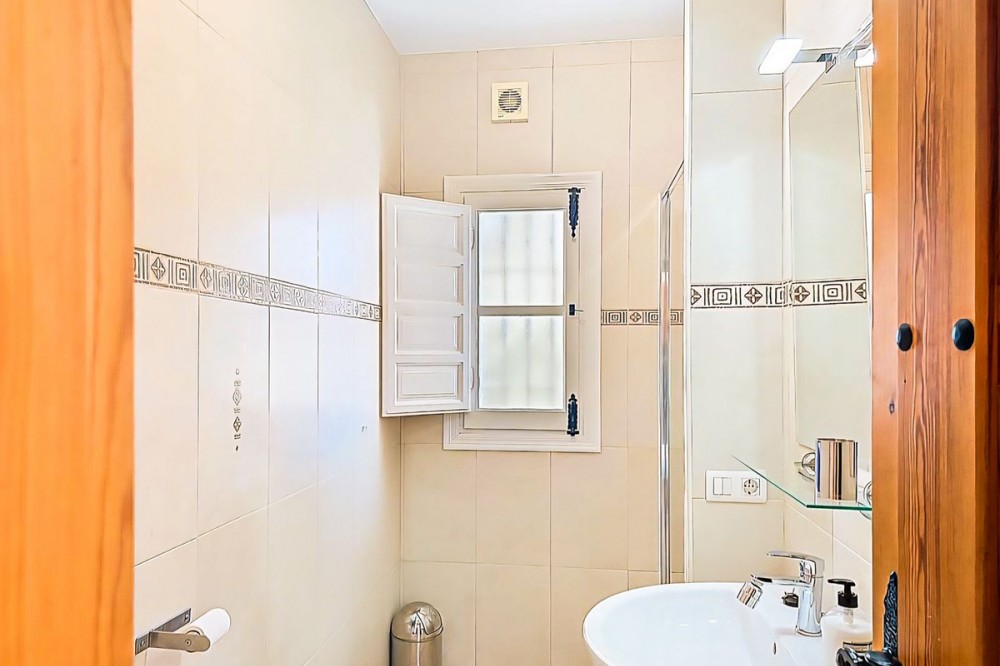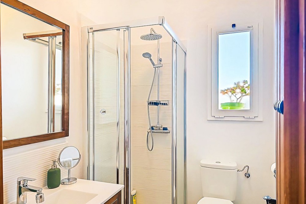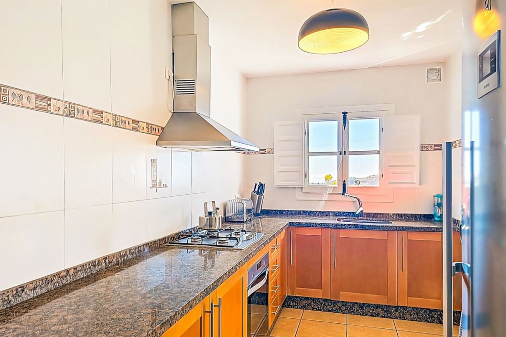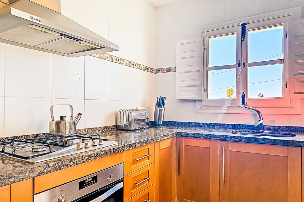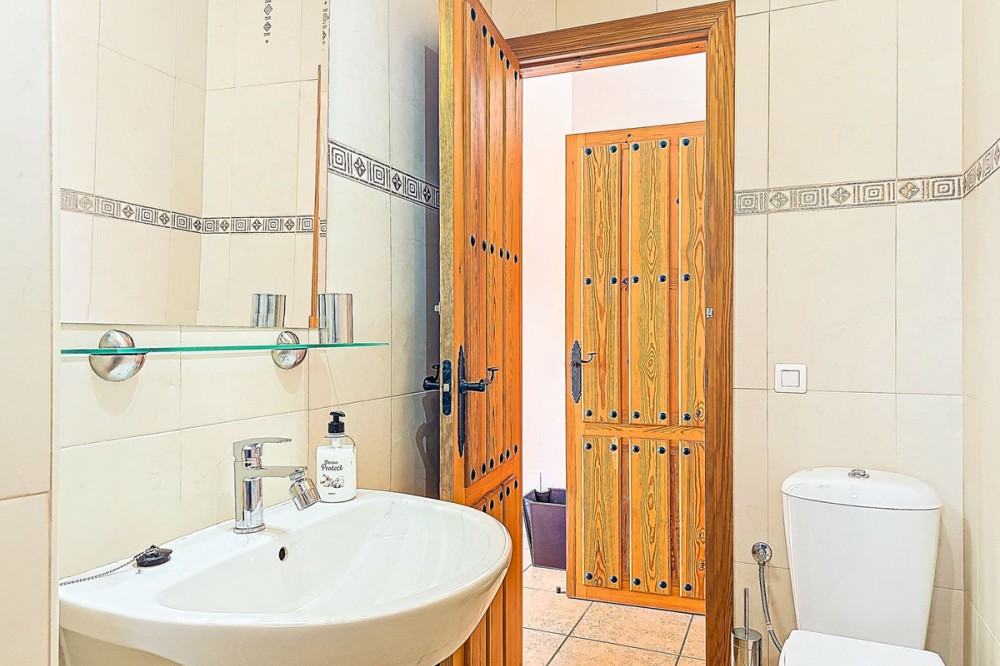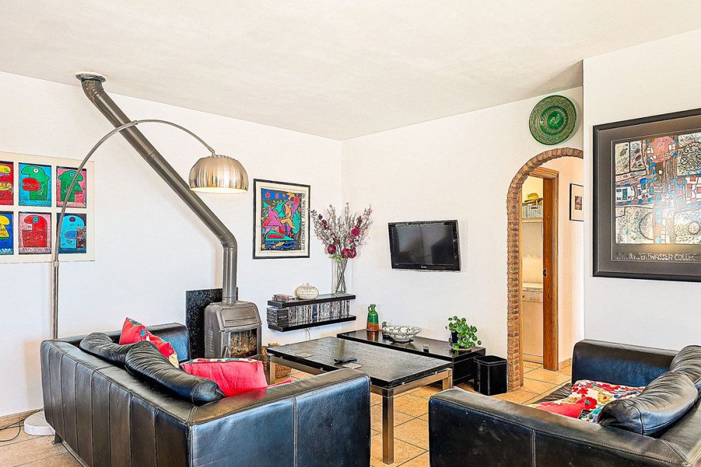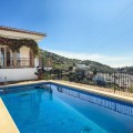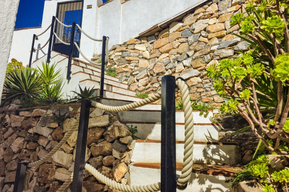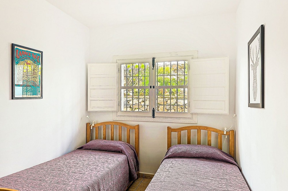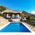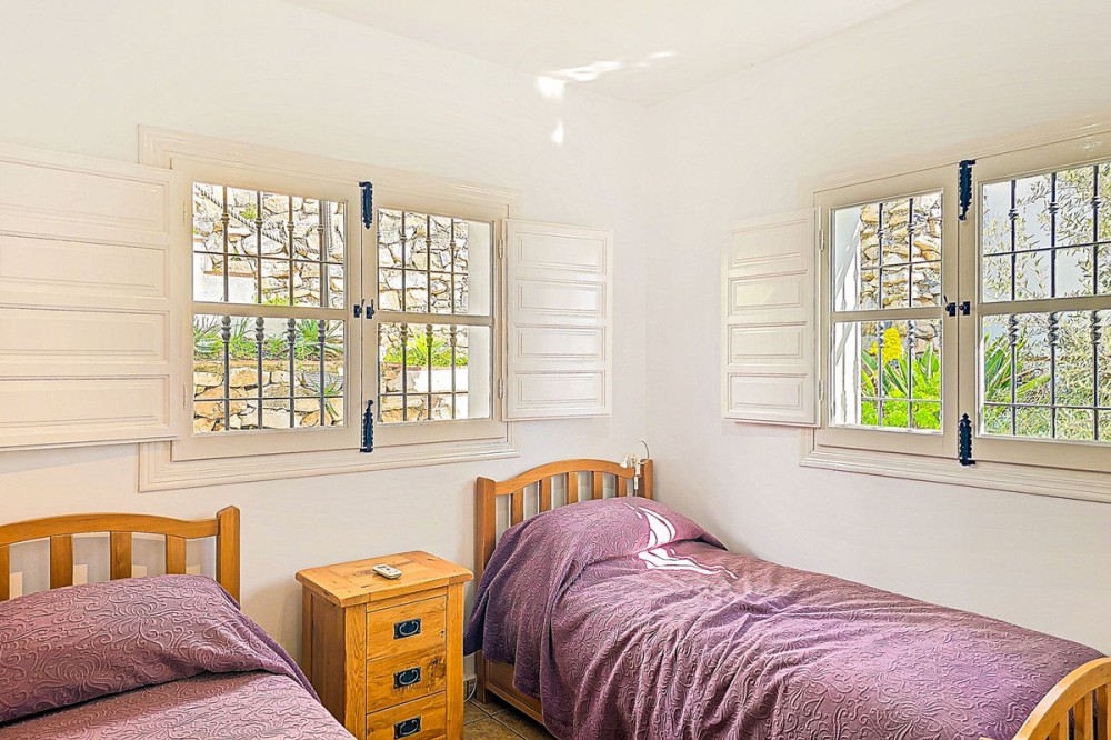- This beautiful modern villa with 5 bedrooms and 3 bathrooms enjoys an enviable elevated position above the charming white village of Cómpeta, offering sweeping views of the Mediterranean Sea, rolling countryside, and the village rooftops below. Stylish, spacious, and impeccably presented, it is a home ready to move into and immediately enjoy. Access is easy and convenient via fully tarmac roads — no dirt tracks — leading to electrically operated gates that open onto a private driveway with secure off-road parking. From the moment you arrive, the setting and the views create a lasting impression. A welcoming covered terrace sits at the entrance to the villa, while an additional terrace runs the full length of the property, providing generous space to unwind, entertain, or simply soak in the panoramic surroundings. The heated swimming pool is perfectly positioned to take full advantage of the breathtaking views and allows for year-round enjoyment. Spacious sun terraces surround the pool, offering plenty of room for loungers and relaxed gatherings with family and friends. A shaded dining area provides the ideal spot for long, leisurely al fresco meals during the summer months. The pool and terrace areas are wonderfully private, creating a peaceful outdoor haven. The entire plot is fully fenced, ensuring both privacy and security for children and pets. Inside, the villa opens into a bright and inviting open-plan lounge and dining area. Large bi-fold patio doors frame the views beautifully and flood the space with natural light, seamlessly connecting indoor and outdoor living. Air conditioning and a free-standing log burner ensure comfort throughout the year. The fully fitted kitchen, accessed through a charming brick archway, is both practical and stylish. A further archway leads to the hallway and a separate utility room complete with washing machine, dryer, and additional storage space. The accommodation in the main villa includes a spacious master bedroom (4.4m x 4.4m) with bi-fold patio doors, fitted wardrobes, air conditioning, and an en-suite shower room (2.6m x 1.3m). Bedroom 2 (3.7m x 3.4m) also features bi-fold doors, fitted wardrobes, and air conditioning. Bedrooms 3 (3.1m x 2.4m) and 4 (3.0m x 3.0m), both currently arranged as twin rooms, are fitted with air conditioning. A well-appointed family shower room (2.6m x 1.8m) completes the main living space. The separate guest apartment, accessed via steps from the pool terrace, offers privacy and flexibility for visiting family, friends, or rental opportunities. Its full-length terrace, bordered by mature citrus trees and Mediterranean planting, enjoys the same spectacular sea and village views. Inside, the apartment features an open-plan kitchen and dining area with a lounge subtly divided by a bookcase (3.5m x 6.5m). Glazed patio doors and a large floor-to-ceiling window fill the space with natural light. There is also a double bedroom (2.8m x 3.2m) with patio doors opening onto the terrace, and a shower room (1.9m x 1.5m). Whether you are searching for a comfortable permanent residence, a stylish holiday escape, or a ready-to-go rental investment, this exceptional villa offers space, privacy, and breathtaking views in one of the most desirable locations above Cómpeta.