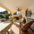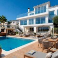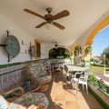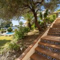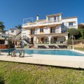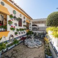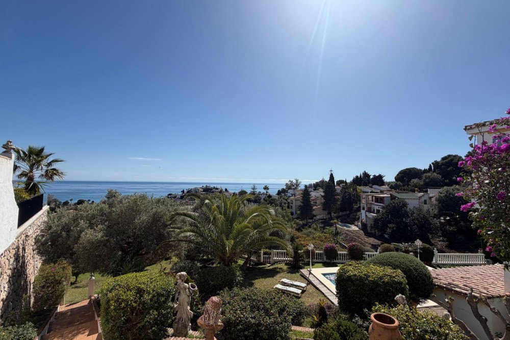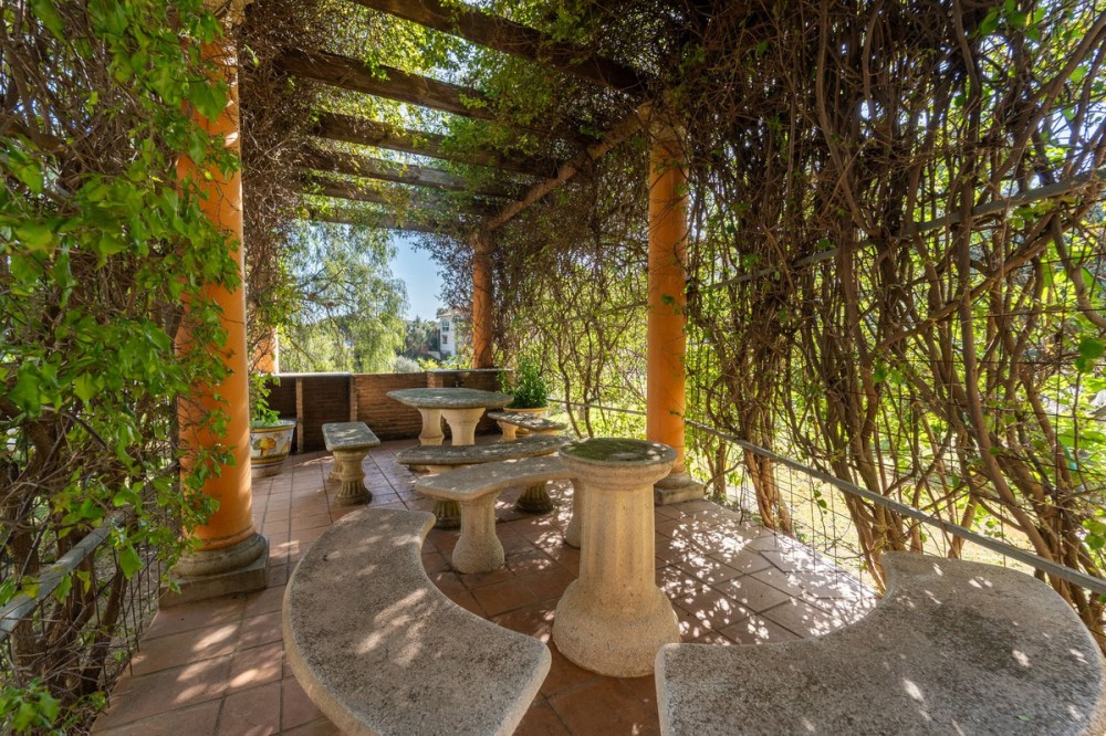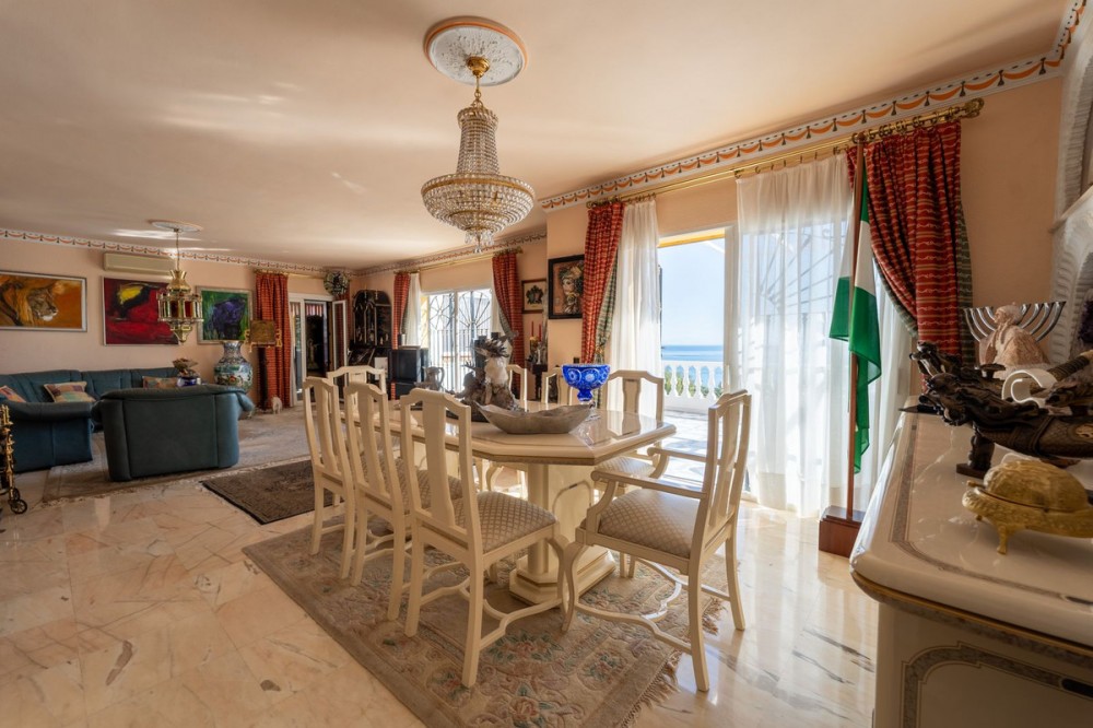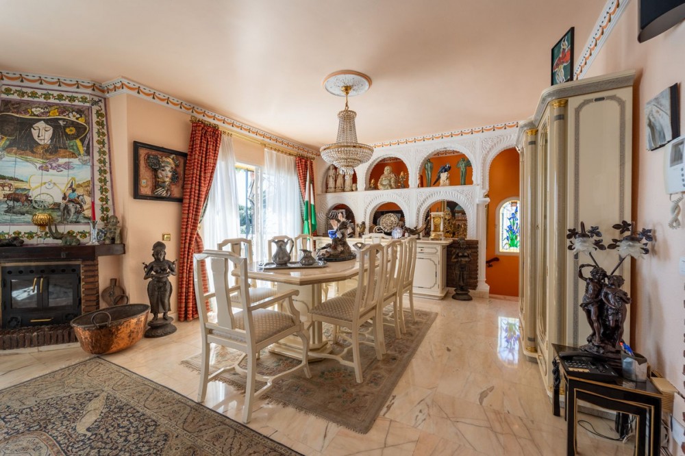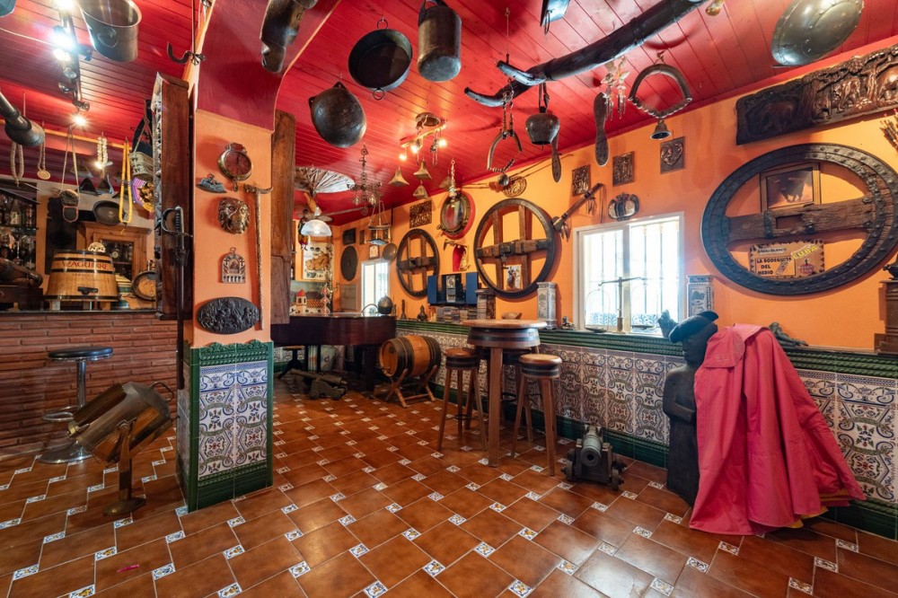 - Exclusive Andalusian-Style Villa with Panoramic Sea Views in Torremuelle Imagine waking up every morning in a magnificent Andalusian-style villa where timeless architecture blends seamlessly with the natural beauty of the Mediterranean surroundings. Set on an expansive plot of approximately 1,500 m², this remarkable property offers an exceptional lifestyle, with breathtaking sea views that can be enjoyed from almost every corner of the home. Upon arrival, the main entrance is framed by two spacious garages and leads to a charming private terrace designed in the style of a traditional Andalusian courtyard. Surrounded by colourful flower pots and authentic Granada ceramics, this peaceful space invites you to relax and enjoy the tranquil atmosphere that defines this unique residence. A welcoming porch supported by elegant columns leads you inside, revealing the character and charm of the villa. The entrance hall, reflecting classic Andalusian design, opens into the main living room — a bright and inviting space that connects directly to a large terrace. Here, you can imagine enjoying family breakfasts while admiring the spectacular sea views. Featuring marble floors, a fireplace, and air conditioning, this living area becomes the heart of the home and the perfect setting for unforgettable moments. The kitchen is equally impressive, highlighted by a beautiful Mudejar-style arched skylight that fills the room with natural light and vibrant colours. Adjacent to the living area, you will find a bedroom with sea views as well as an independent study, ideal as a home office or guest accommodation. The level offers three additional bedrooms, all fitted with generous built-in wardrobes. The master suite with an en-suite bathroom and a walk-in wardrobe. This level also features a large living room with a library and a dining area that comfortably accommodates your guests around a solid wood dining table, making it perfect for hosting memorable gatherings. From here, you can access a beautiful private wine cellar, an ideal feature for wine enthusiasts. The villa continues to surprise with a charming traditional Andalusian-style bar and entertainment area, complete with a spacious lounge and bar — the perfect setting for unforgettable celebrations with family and friends. There is also a large bathroom on this floor. The exterior spaces are equally impressive. A lush garden surrounds the swimming pool and jacuzzi, while a fully equipped terrace and a covered barbecue area create the ideal setting for outdoor dining and entertaining. A newly installed outdoor Finnish sauna adds an extra touch of luxury and wellness to everyday living. The garden also features fruit trees and a charming greenhouse, making it a dream for gardening enthusiasts, all framed by elegant stone pillars and enhanced by breathtaking sea views. Located in Torremuelle, one of the most exclusive residential areas of the Costa del Sol, this villa is ideally positioned close to international schools and just five minutes from the beach, shops, and restaurants, offering both privacy and convenience.