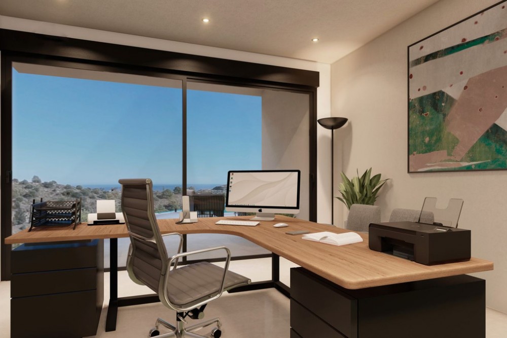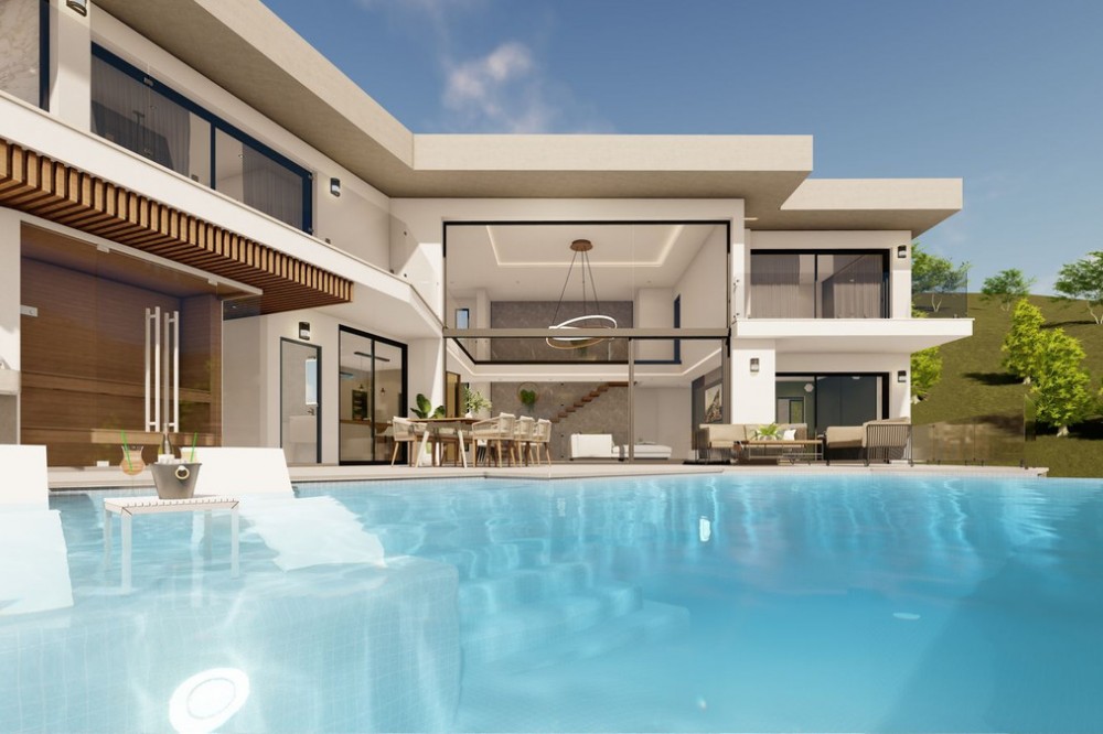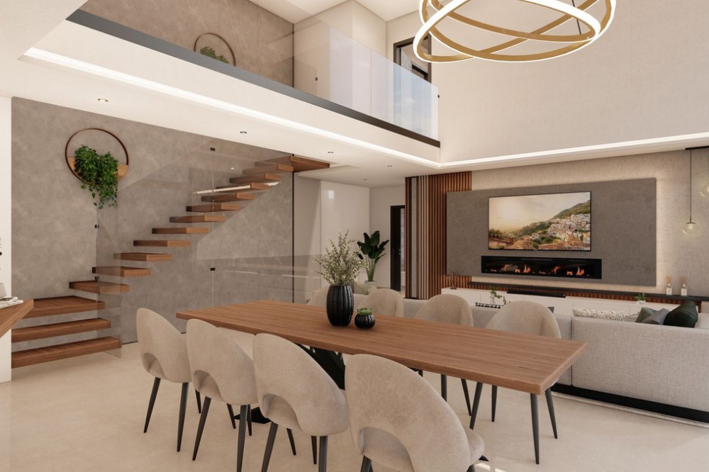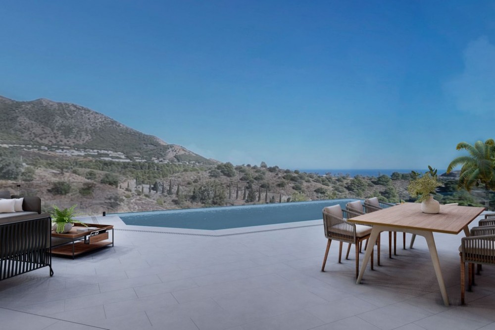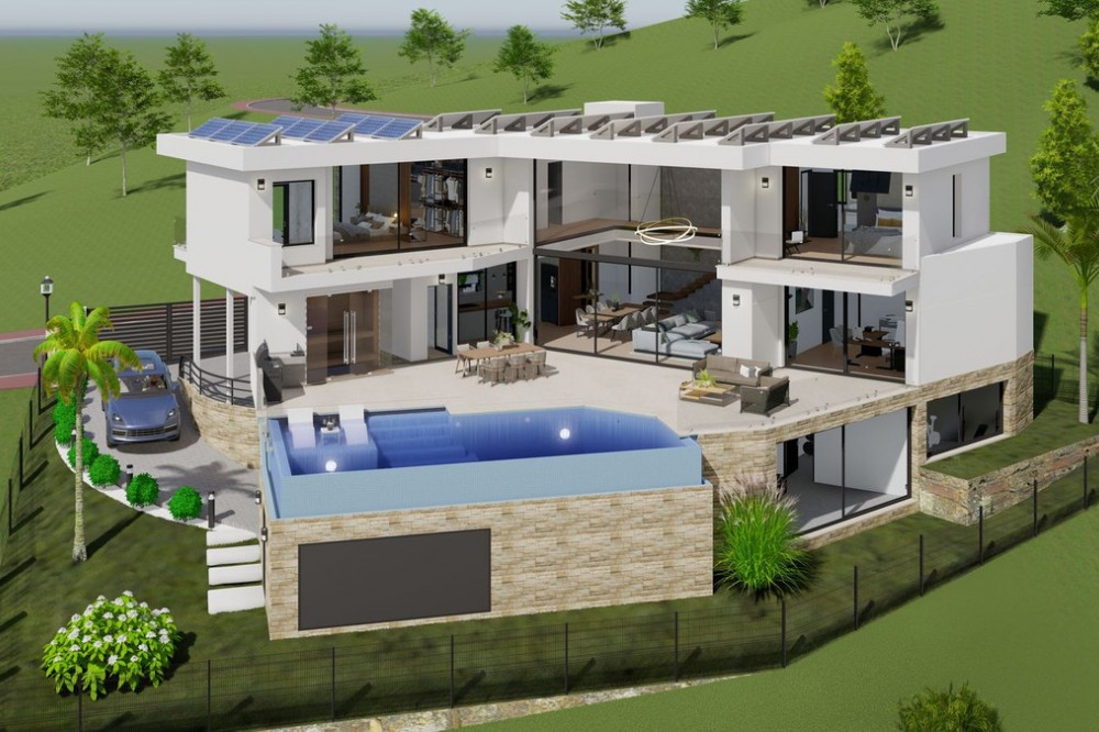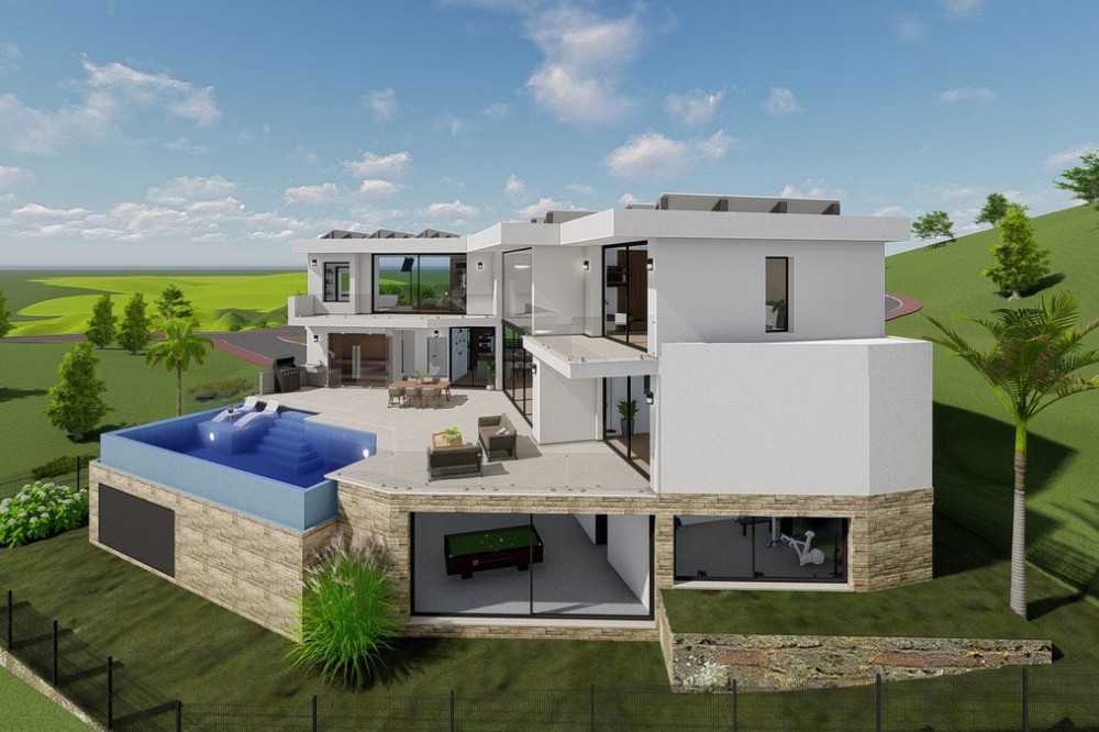 - Discover this charming luxury villa in Mijas, a modern gem with panoramic sea and mountain views, designed to offer an unparalleled experience in the captivating setting and spectacular climate of the Costa del Sol. READY TO MOVE IN 6 MONTHS Featuring a 36 m² outdoor infinity pool, this villa invites you to enjoy sunny days and unforgettable moments with breathtaking views. The property offers a total built area of 268.79 m², with a carefully planned layout: 127.46 m² on the upper floor, 141.33 m² on the ground floor, and a 213.38 m² basement, which includes storage areas and underground technical rooms, as well as 42.58 m² of porches. On the main floor, you will find an open-plan American-style kitchen seamlessly integrated with a spacious double-height living room, offering spectacular views and direct access to the pool. There is also a room that can be used as an office, if desired, along with a bathroom. The home is flooded with natural light, creating a warm and bright atmosphere throughout. For added convenience, there is an outdoor bathroom in the pool area. The upper floor features three bedrooms, each with its own en-suite bathroom, ensuring privacy and comfort for all residents. The villa also boasts state-of-the-art energy-efficient features, including underfloor heating and aerothermal technology, as well as solar panels for maximum energy savings. With a barbecue area with a fully equipped kitchen, this villa offers a versatile space that can be adapted to your preferences. The spacious entrance allows parking for up to five cars, or the option to convert part of the space into a private gym. In addition, there is the possibility of incorporating up to five or six bathrooms, tailored to the individual needs of each owner. Located just a 15-minute drive from Fuengirola and close to 12 golf courses, this villa enjoys a privileged location, only 7 minutes from Mijas Pueblo. Discover the perfect balance between modern luxury and coastal serenity in this stunning property. Get ready for your new home. Schedule a viewing and discover your ideal future space. OPTIONAL (Not included in the price): Elevator Kitchen + Laundry Room Heated Swimming Pool + Polycarbonate Cover Sauna Photovoltaic Panels + Hybrid Inverter In the Basement: Home Theater and Game Room with Bar, Gym, Apartment