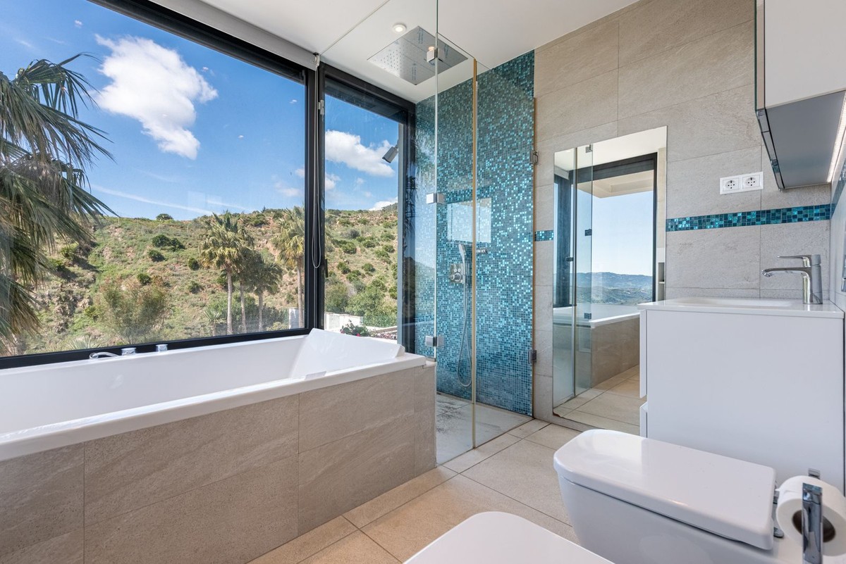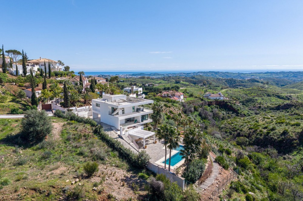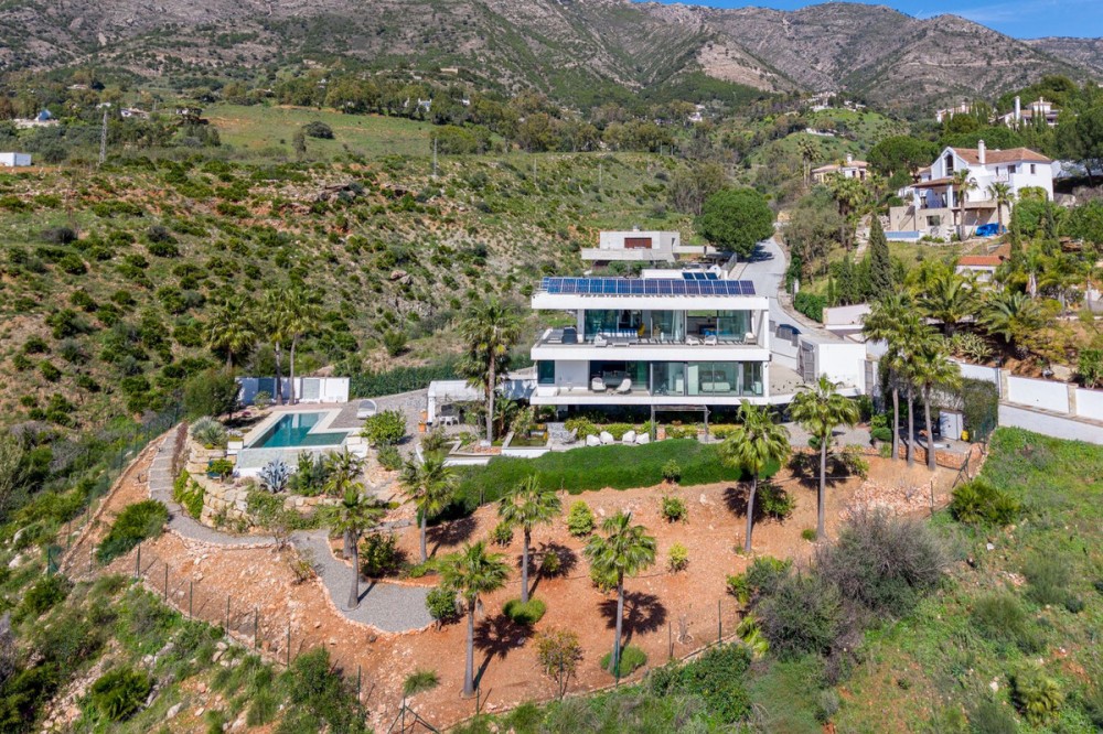 - Detached Villa in Prestigious Valtocado, Mijas – with Panoramic Views of the Mountains and the Mediterranean Discover this unique villa in the highly sought-after residential area of Valtocado – just minutes from the charming whitewashed village of Mijas Pueblo and the renowned golf courses of Alhaurín el Grande. This is a home that perfectly blends elegance, comfort, and an exceptional lifestyle. Set on a generous 1,718 m² plot, the villa welcomes you with a sense of harmony and exclusivity. A lush Japanese garden with a serene pond provides complete privacy and a peaceful retreat. Thanks to its privileged southwest orientation, the property enjoys spectacular sunsets and breathtaking views of both the mountains and the Mediterranean Sea. The outdoor area is designed for relaxation as well as entertaining, featuring a refreshing swimming pool, spacious terraces, a pergola, a fully equipped outdoor kitchen with barbecue, and a cozy lounge area. A charming wine cellar adds the perfect touch for memorable evenings with family and friends. On the entrance level, you will find 4 spacious bedrooms, all offering wonderful views of the surrounding landscape. Three of the bedrooms have direct access to the terrace, and there are 3 elegant bathrooms with underfloor heating, one of which is shared between two bedrooms. This level also includes a practical utility room with laundry facilities and access to the parking area, as well as a convenient lift connecting to the upper floor. The top floor is the heart of the villa, designed to maximize light and panoramic views. Here you are greeted by an impressive living room with soaring ceilings and an abundance of natural light, a modern open-plan kitchen that flows seamlessly into the dining area, and a large terrace from which to enjoy unforgettable sunsets. This level also features a guest bathroom and a staircase leading to the rooftop terrace, where the solar panels are located. The driveway offers a covered parking space for two cars, while an electric gate ensures both security and a grand entrance into the private grounds. Built with high-quality materials and carefully considered details, the villa provides both style and comfort. It is the perfect choice whether you are looking for a permanent residence or a luxurious holiday retreat. A truly exclusive home in a peaceful and natural setting – with close proximity to village life, golf courses, the mountains, and the coast. Contact us today for more information or to arrange your private viewing!