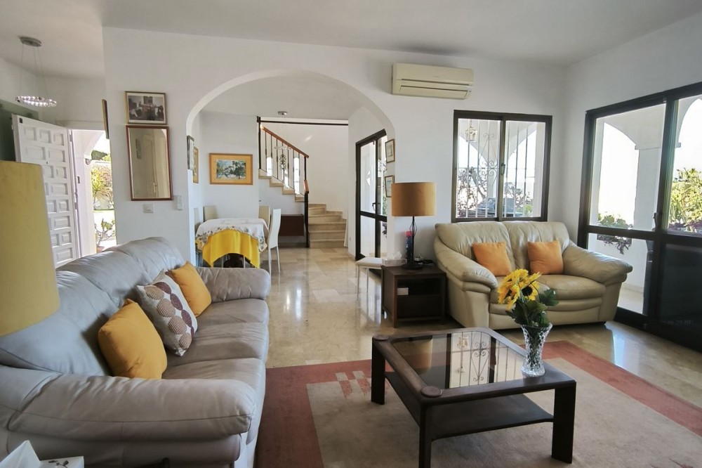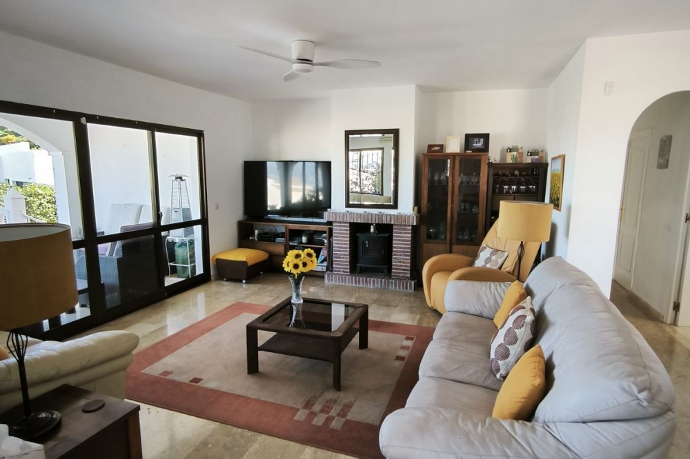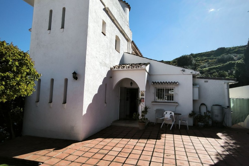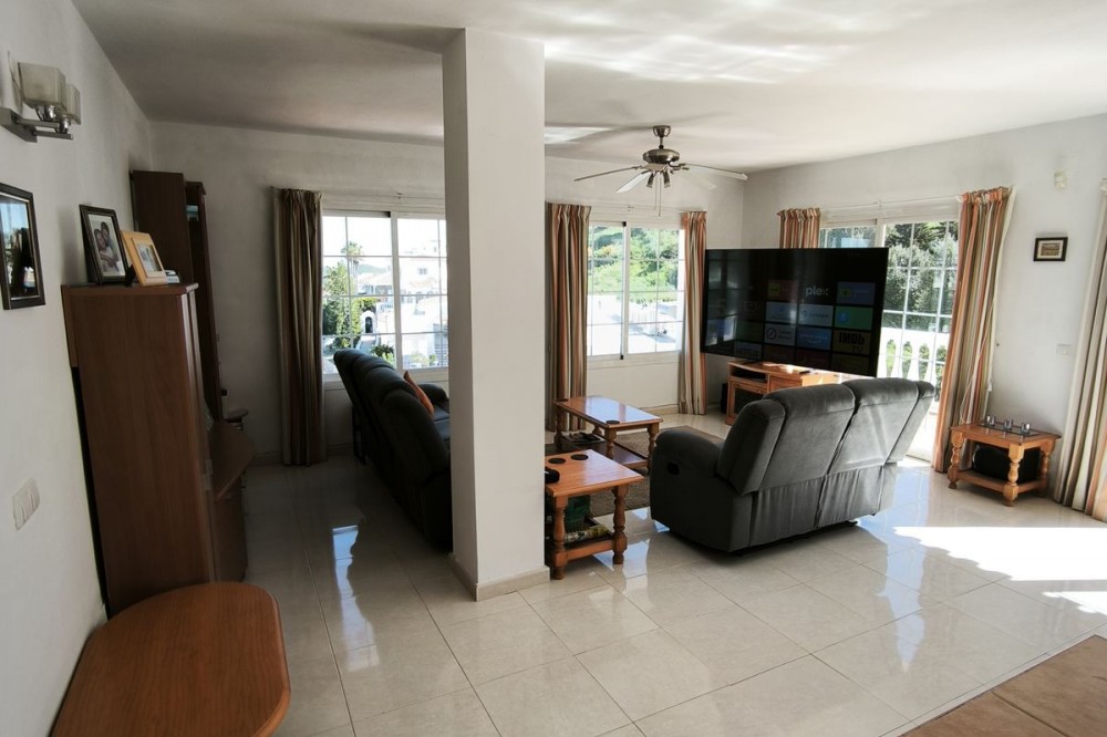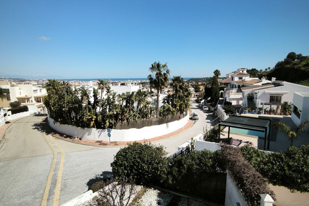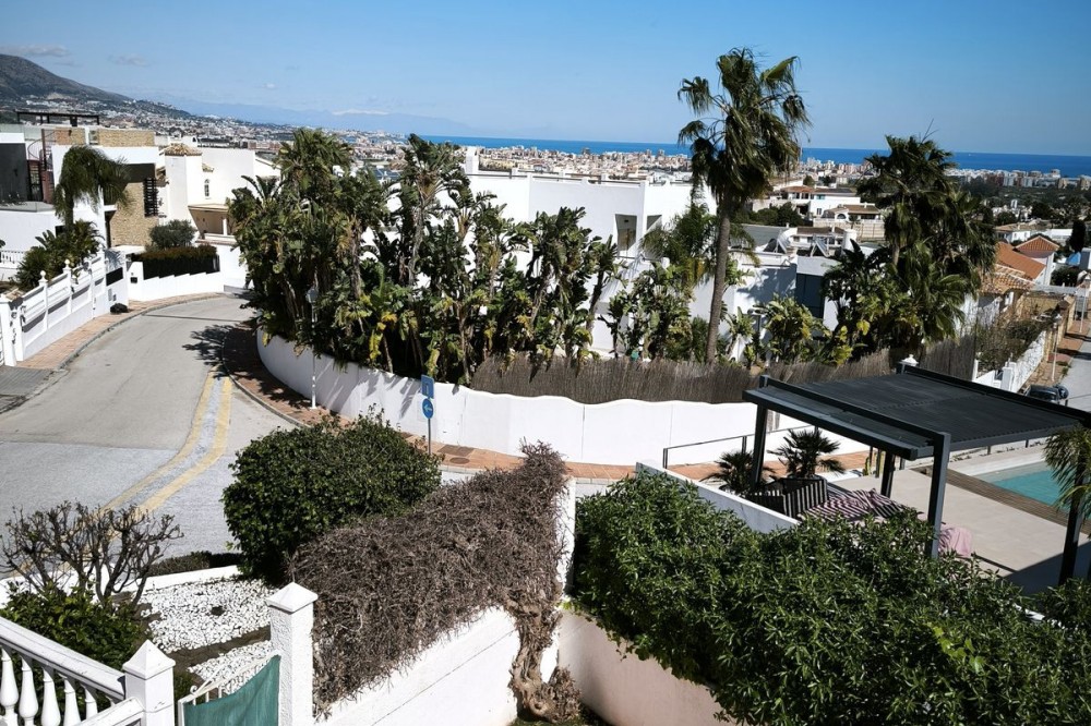 - Elegant Villa with Panoramic Sea, Mountain and Countryside Views in Cerros del Águila Set in the sought-after urbanisation of Cerros del Águila, this impressive villa combines space, privacy and stunning surroundings, with beautiful panoramic views of the Mediterranean Sea, the mountains and the open countryside. The property offers 5 generously sized bedrooms, with 3 bedrooms on the ground floor and 2 on the upper level, making it an ideal home for families or for those seeking generous guest accommodation. There are 3 well-appointed bathrooms, including 1 en-suite. On the main level, the villa features a modern kitchen that flows into a bright and spacious living room with direct access to a large terrace. This is the perfect setting for al fresco dining, entertaining guests, or simply relaxing while enjoying the breathtaking sea views. Upstairs, you will find a second expansive living area, currently used as a TV lounge and bar, offering a wonderful additional space for leisure and socialising. From here, there is access to a private terrace overlooking the beautiful garden and swimming pool, creating a tranquil and intimate retreat. The outdoor areas are equally impressive, with a large terrace surrounding the swimming pool, ideal for enjoying the Mediterranean lifestyle, whether sunbathing, dining outdoors or spending quality time with family and friends. The location is excellent, just 10 minutes from the beaches of Fuengirola and only 5 minutes from the newly opened Gran Parque de Mijas, a fantastic recreational area offering a wide variety of leisure activities for all ages. This is a wonderful opportunity to acquire a spacious and beautifully positioned villa in one of the area’s most desirable residential locations.