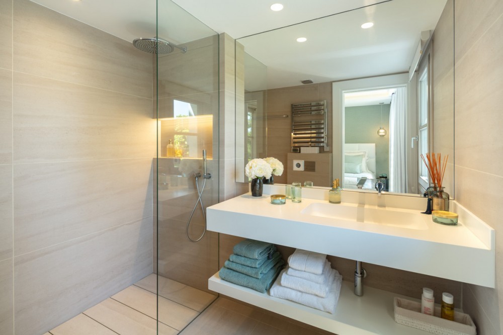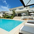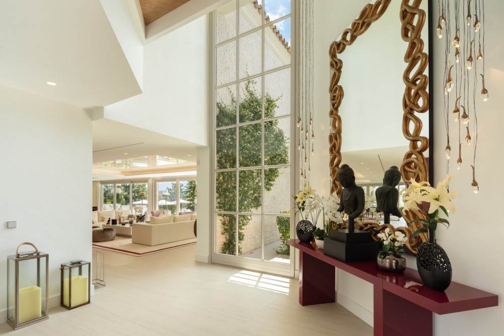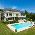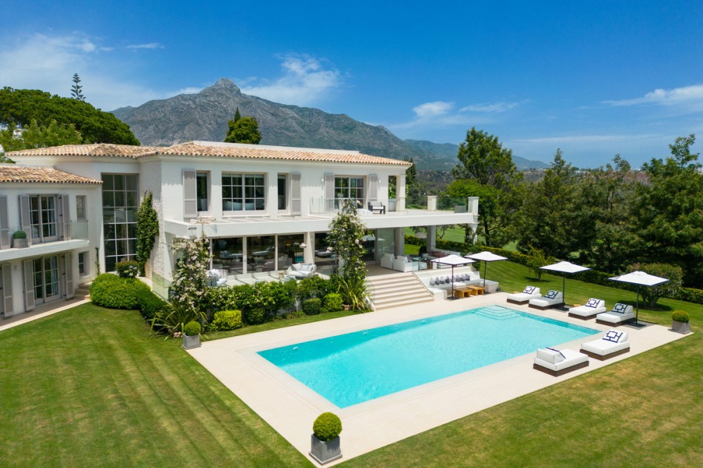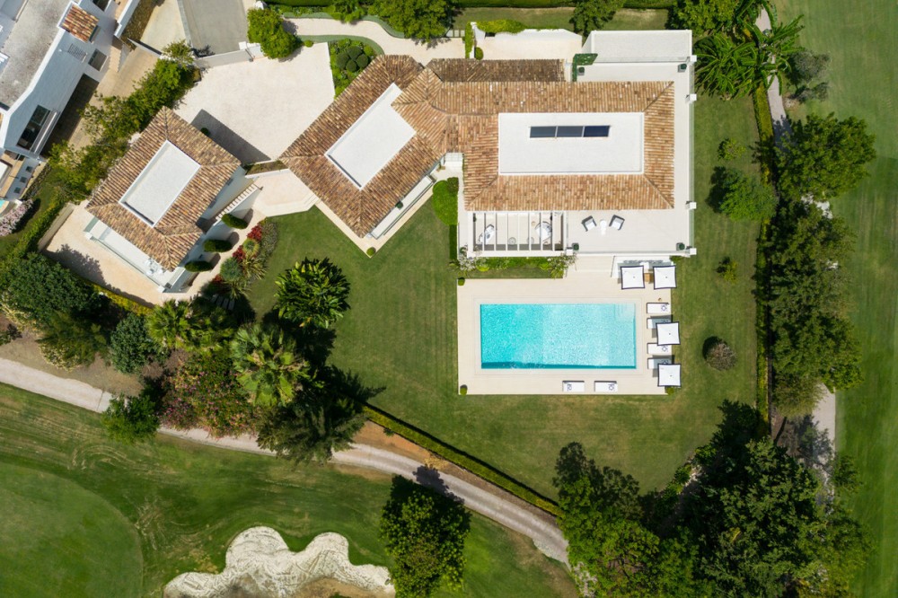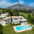 - Beautiful villa located in a private oasis in the luxurious Aloha area of Marbella's Golf Valley. This magnificent property sits in a prestigious gated community and boasts an enviable front-line position overlooking Aloha Golf Course. The villa comprises a main residence with five generously sized bedrooms, including a luxurious master suite with a dressing room. The bedrooms exude individuality with their distinct touches, yet their cohesiveness is a testament to the clever design decisions. There is a separate one bedroom guest house, perfect for accommodating staff or visitors. The allure of this villa lies in its enchanting outdoor areas, where a lush green garden and spacious terraces offer the ideal setting for enjoying Marbella's perfect climate throughout the year. The verdant surroundings of the main house are adorned with greenery, which seamlessly blends with the other green areas of the property. This unique villa boasts spectacular views and luxurious amenities.