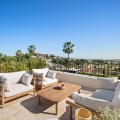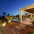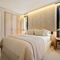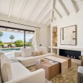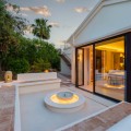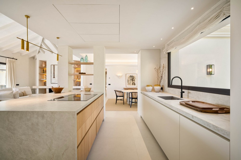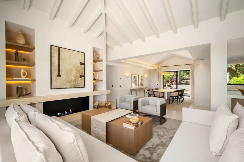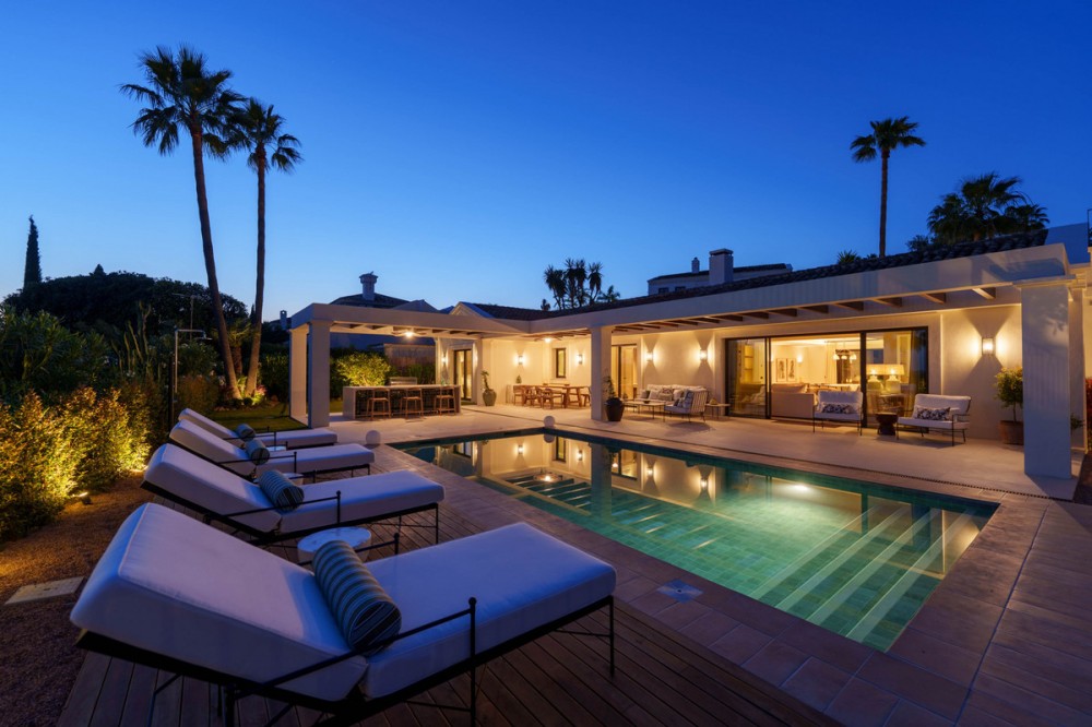 - Beautifully reimagined single-level villa nestled in the heart of Nueva Andalucía, just minutes from the prestigious Los Naranjos Golf Course. Designed and developed by Casas Fintech, this exquisite four bedroom residence blends Mediterranean elegance with modern comfort and design. Positioned on a lush, elevated plot, it offers a private, tranquil setting with breathtaking views stretching across the valley to the sea, all within easy reach of Marbella’s finest golf, dining, and beach destinations. Step inside to discover a soothing palette of natural tones, soaring vaulted ceilings, and an open-plan layout that seamlessly connects the living area with a sleek, modern kitchen and dining space. Every detail has been thoughtfully considered—from the high-spec appliances and custom furnishings to the ambient lighting and refined finishes. Expansive floor-to-ceiling glass doors flood the interiors with natural light and open onto a spacious terrace featuring a sunken lounge, outdoor kitchen, and a dramatic infinity-edge pool that appears to float above the landscape. The exterior spaces are equally impressive, with manicured gardens and multiple alfresco living areas ideal for entertaining or relaxing in complete privacy. A rooftop terrace provides panoramic views, while a tranquil courtyard with a water feature offers a peaceful escape. Inside, four generous bedrooms—including a serene master suite with direct garden access—are complemented by luxurious amenities throughout, creating a perfect balance of sophisticated living and laid-back coastal charm in one of Marbella’s most coveted neighbourhoods.
