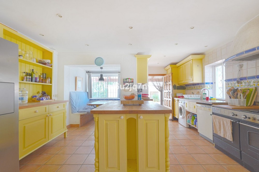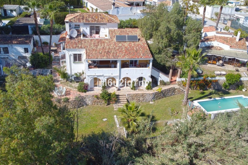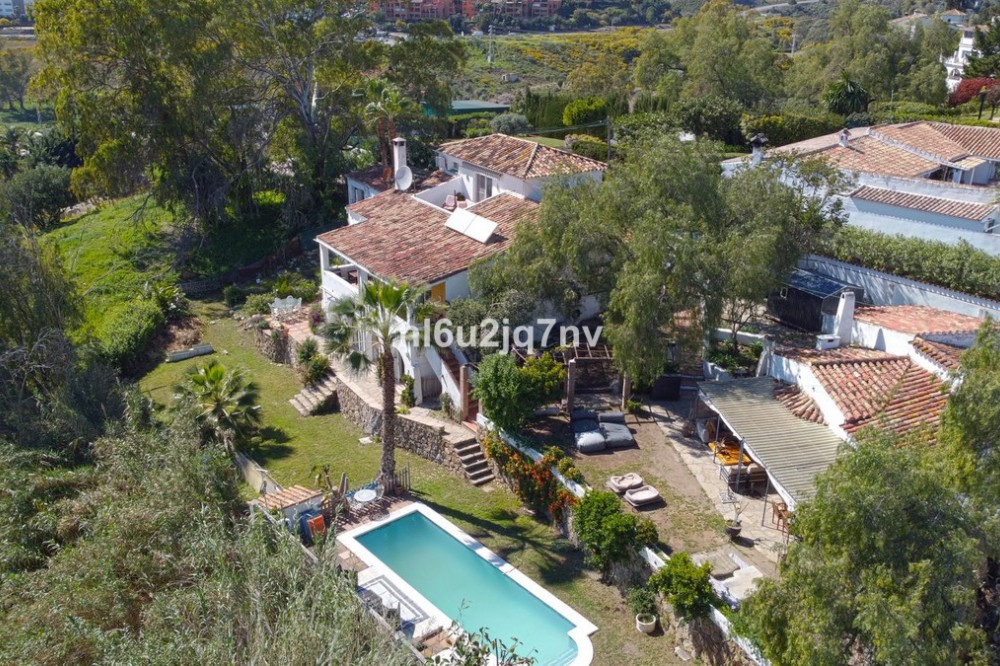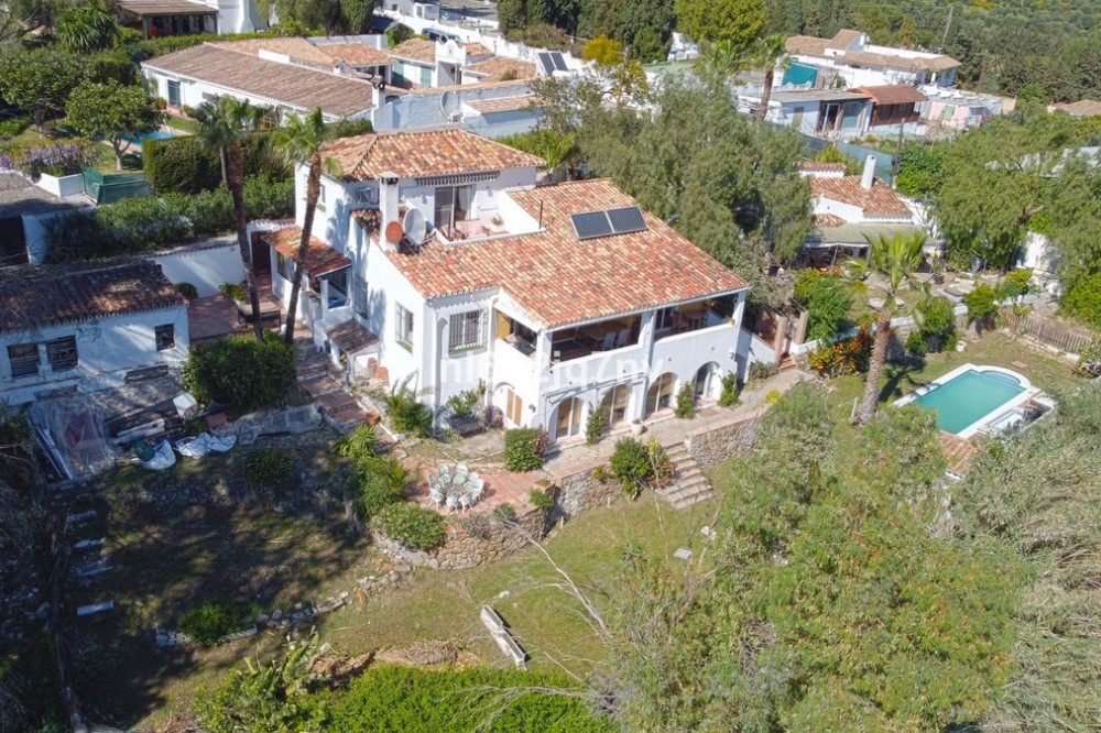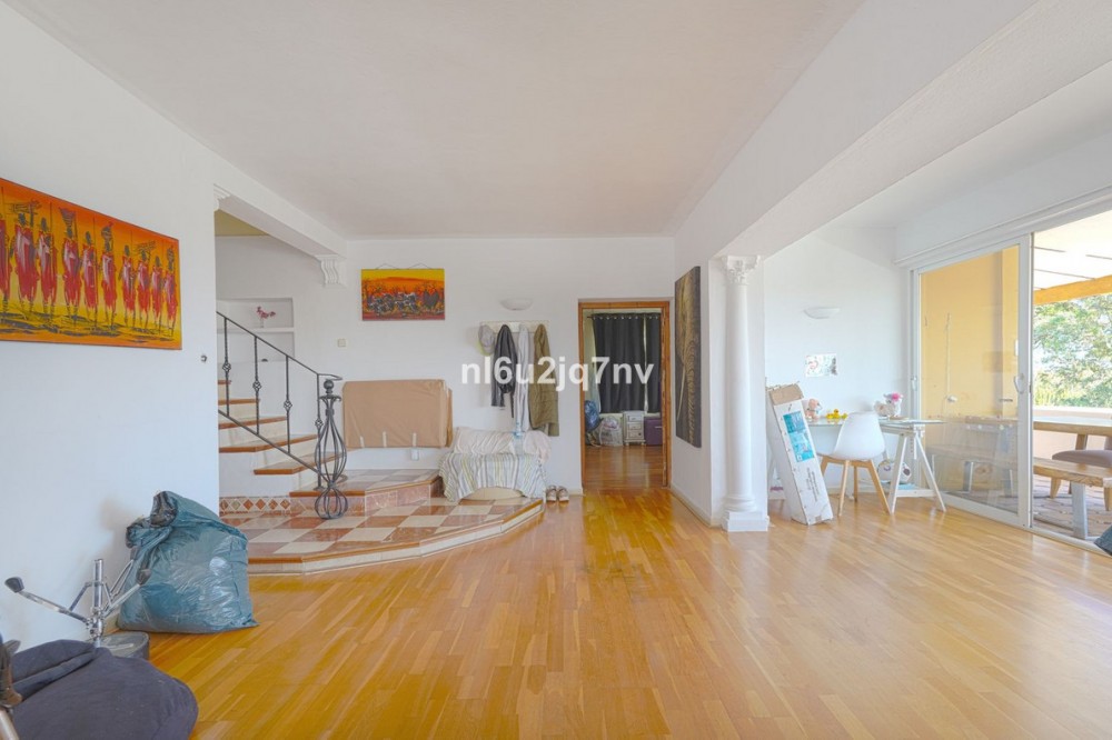 - This is a fantastic opportunity to acquire what could become an absolutely magnificent property, ideally located in an up-and-coming area next to the highly sought-after Guadalmina Alta. The property offers peace, privacy, and tranquillity, along with lovely open views across the surrounding countryside, with the Mediterranean visible in the distance. The main house is distributed over multiple levels. On the main floor, there are two bedrooms, while the principal suite is located on the upper level, featuring a well-proportioned en-suite bathroom and a private terrace from which to enjoy the beautiful views. Also on the main level is a bright and airy living and dining area, which leads out onto a covered terrace with stairs descending to the garden and pool area. There is a spacious kitchen with a breakfast area that could easily be opened up and incorporated into the living space, creating a large, modern open-plan layout. The lower level of the main house is currently configured as a separate one-bedroom apartment, complete with a living area, bathroom, and small kitchen—ideal for guests or staff. In addition, there is a completely independent guest house comprising a living room, kitchen, two double bedrooms, and a bathroom. A covered terrace sits in front of the guest house, along with a private garden area that also leads down to the pool. Furthermore, the property benefits from a separate two-car garage. The clubhouse of the 36-hole Guadalmina Golf is just a four-minute drive away, while the well-known Guadalmina commercial centre—with its selection of popular restaurants, bars, supermarkets, and pharmacies—is only a further two minutes away. The town centre of San Pedro de Alcántara can be reached in approximately six minutes by car.