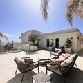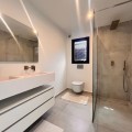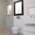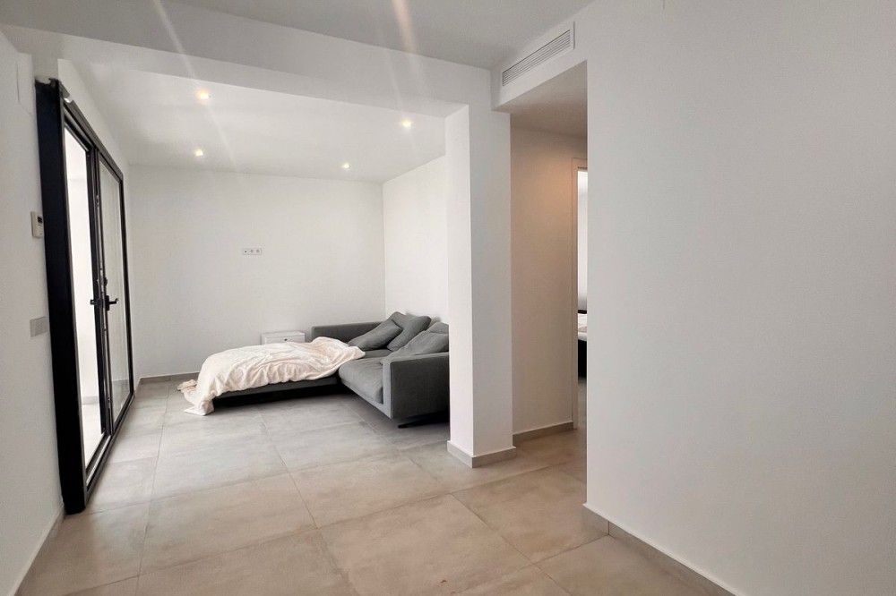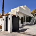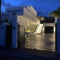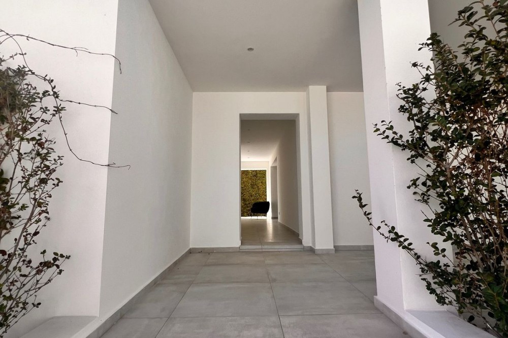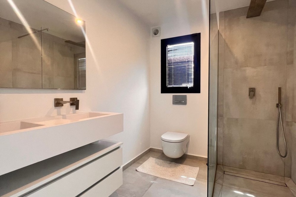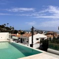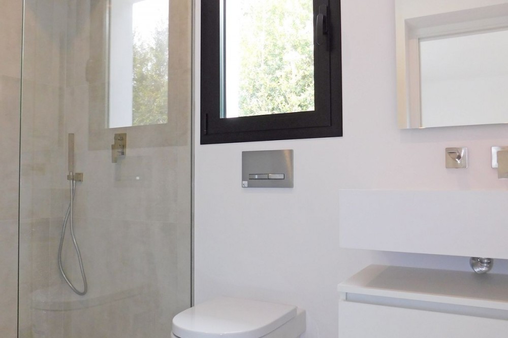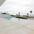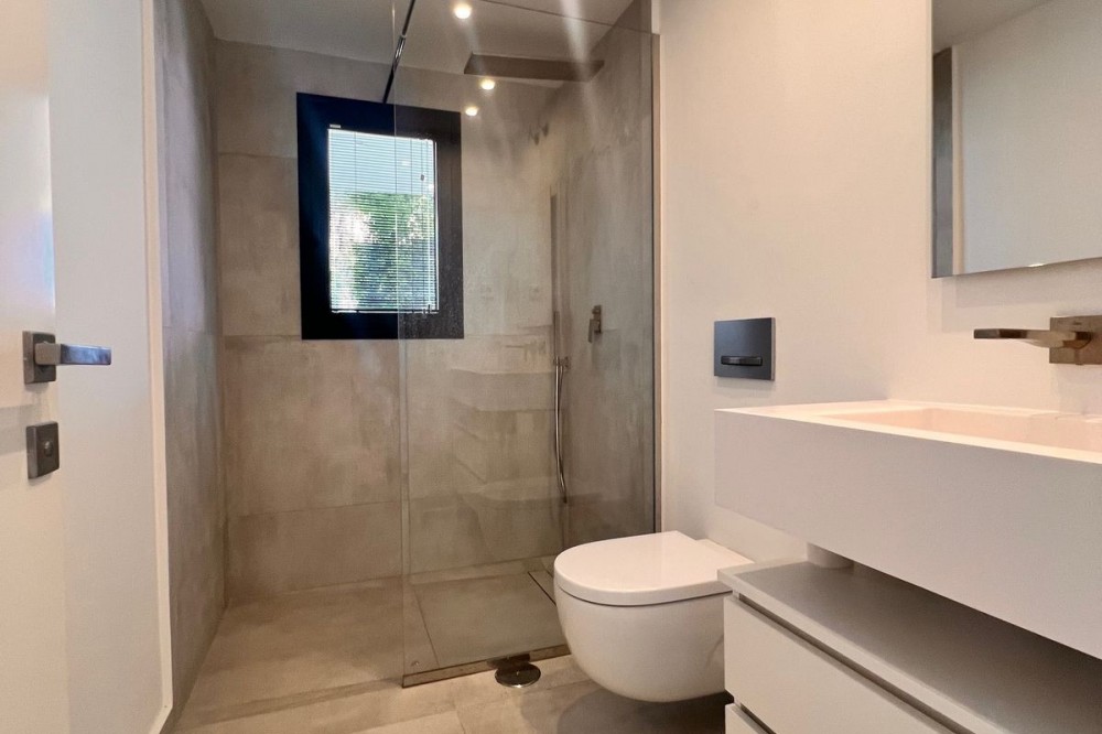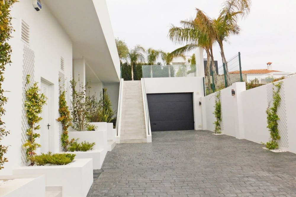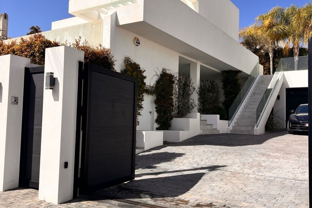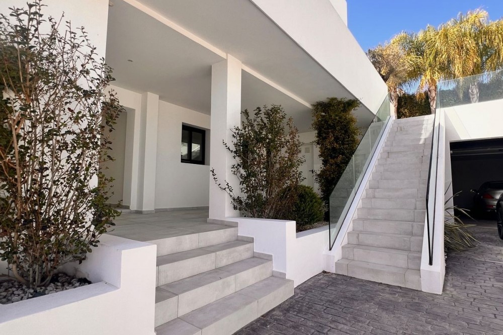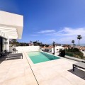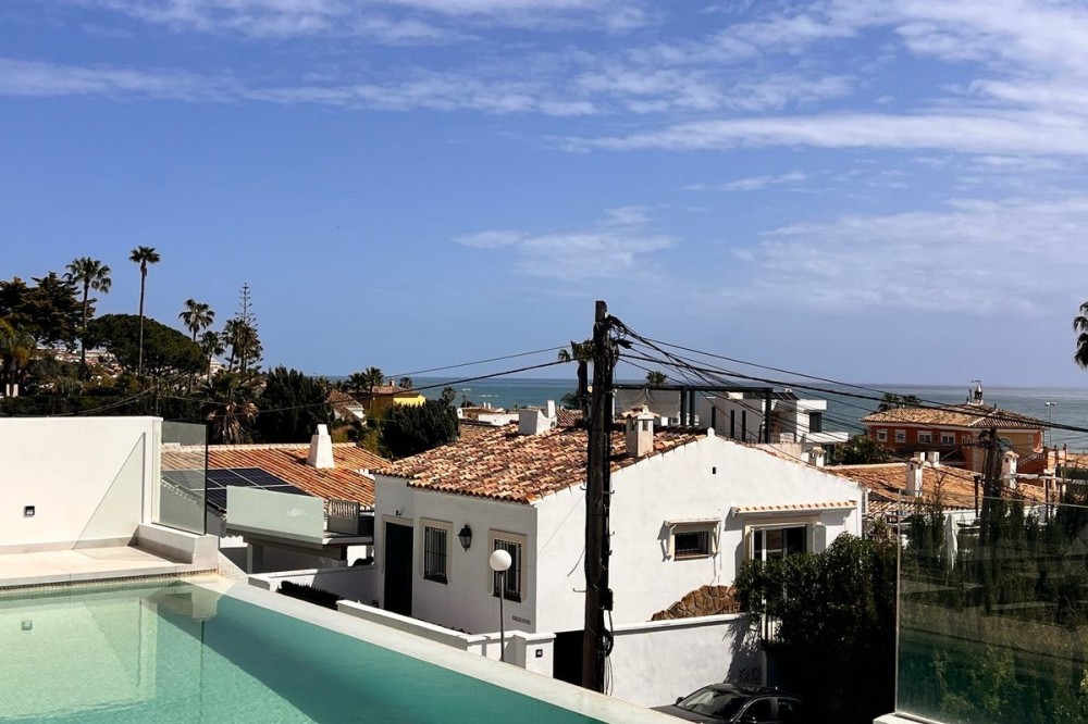 - In an exceptional location, just 280 metres from the sea and the new El Chaparral promenade, you will find this impressive modern villa with truly fantastic panoramic sea views – a rarity at such a short distance from the coast. This stylish property, built to high-quality standards, combines luxury, comfort and an excellent location. The upper floor welcomes you with a light-filled open-plan living area where the modern kitchen and elegant living room flow seamlessly onto the terrace and the beautiful infinity pool, all facing the spectacular views over the Mediterranean Sea. Here, you can enjoy an unrivalled living experience every day. This floor also features the spacious master bedroom with an en-suite bathroom and two further bedrooms that share a stylish guest shower room. All rooms are fitted with built-in wardrobes and individual air conditioning. A separate laundry room provides additional practical convenience. The ground floor offers a fully self-contained apartment with a living room, the option to install a kitchen, two bedrooms and a bathroom – ideal for guests, family or as an investment with rental potential. In addition, the villa features a spacious garage with space for 3 to 4 cars. The location is simply perfect: within walking distance of the beach and just a 15-minute walk from La Cala de Mijas. Málaga Airport can be reached in around 20 minutes. This villa is a unique opportunity for anyone looking for a modern, low-maintenance home with exceptional sea views in a prime location. An absolute must-see!