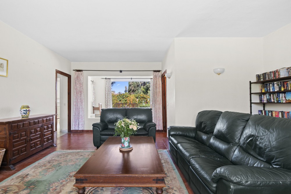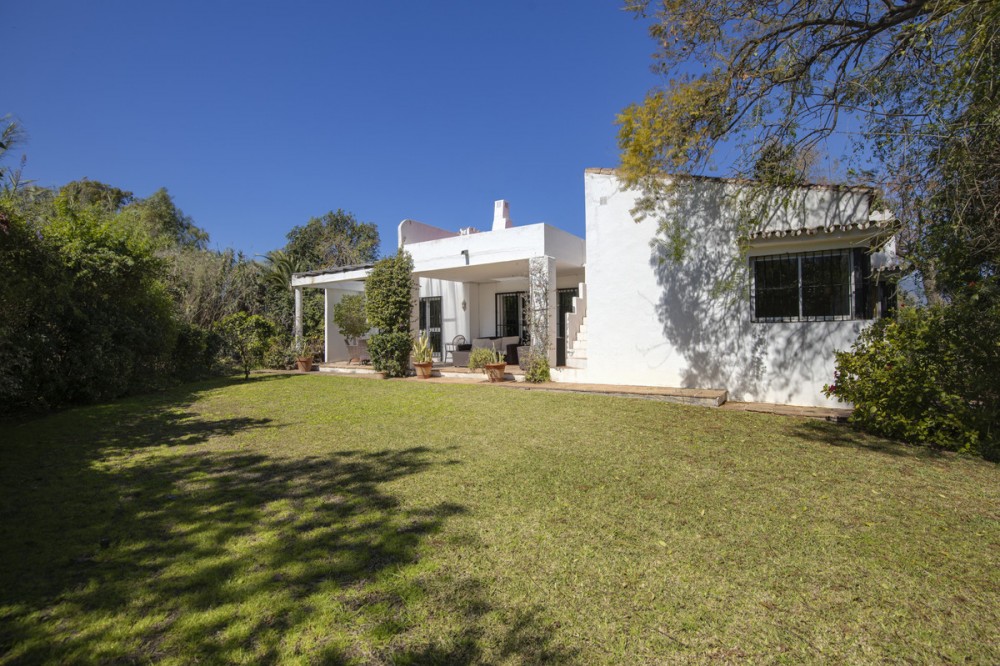 - This charming single-storey villa presents a rare opportunity to create a truly special home in one of the most prestigious areas of Guadalmina Baja. Set on a generous 813m² plot, the property enjoys a unique and tranquil position as one of just four houses, bordered by the river Guadalmansa and the southern golf course of Real Club de Golf Guadalmina. The villa offers a cosy, family-friendly layout with a warm and intimate atmosphere. Its southeast orientation and serene surroundings provide an excellent opportunity for thoughtful refurbishment and enhancement. The property features three bedrooms and two bathrooms, with the dining room enjoying picture perfect views over the golf course through an impressive bay window. Two covered terraces create inviting outdoor living spaces, ideal for relaxing or entertaining in complete privacy. A private garage accommodates one car, while the surrounding lush, mature gardens further enhance the sense of seclusion and charm. Perfectly positioned frontline to the golf course and just a short distance from the beach and local amenities, this property combines convenience with exclusivity. In need of some refurbishment, this villa represents an outstanding investment opportunity to modernise and personalise a home in a highly sought-after location in the heart of Guadalmina Baja.