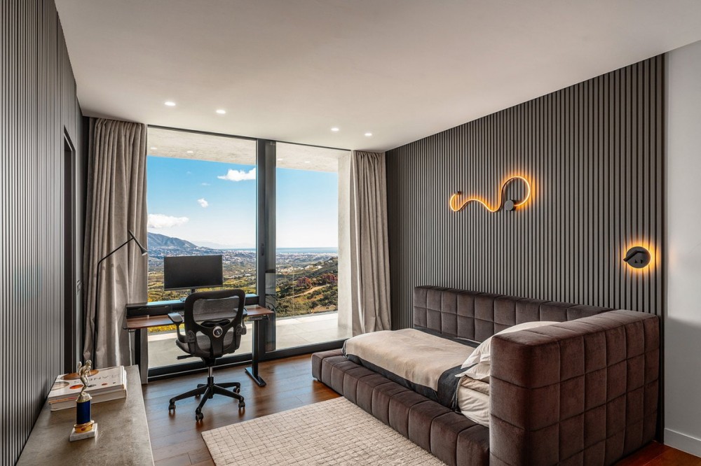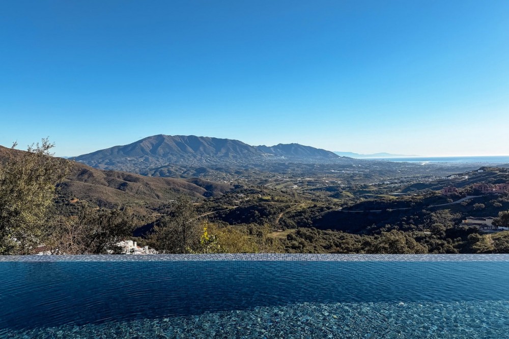 • Set in the elevated natural surroundings of La Mairena, which is set minutes from Elveria, East Marbella, this exceptional contemporary villa combines panoramic Mediterranean views with a rare level of convenience — just a short walk to the German International School, minutes from Marbella’s leading international schools, and only 10 minutes from the beaches, golf courses and beach clubs of Elviria. Recently rebuilt under the supervision of the award-winning design and construction studio Roomzly, the villa offers approximately 640 m² of refined living space designed around light, openness and modern family living. Floor-to-ceiling windows frame sweeping sea and mountain views, while expansive interior and exterior areas create a seamless connection between architecture and nature. At its heart, a bright open-plan living area combines lounge, dining space and a custom-designed kitchen equipped with Gaggenau appliances, ideal for both daily living and entertaining. The property features six spacious bedrooms, all with en-suite bathrooms, ensuring comfort and privacy. The master suite stands out as a private retreat, complete with a walk-in wardrobe and a spa-inspired bathroom including sauna, steam room and hydrotherapy bathtub. This villa offers a rare blend of design, lifestyle and practicality in one of Marbella East’s most sought-after locations. Strategically Positioned for Family Living & Marbella Lifestyle One of the key advantages of this property is its unique combination of privacy and accessibility — offering a peaceful natural setting while remaining close to Marbella’s most important lifestyle and family infrastructure. • Walking distance to the German International School • 10 minutes to the beaches, beach clubs and golf courses of Elviria • 15 minutes to Marbella centre • 20 minutes to Puente Romano and Puerto Banus • 15 minutes to La Cañada shopping centre • 30 minutes to Málaga International Airport