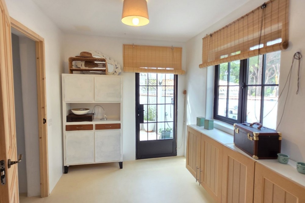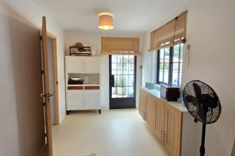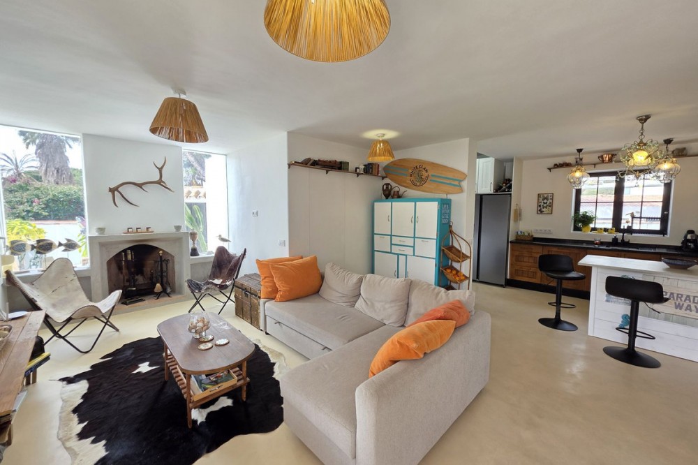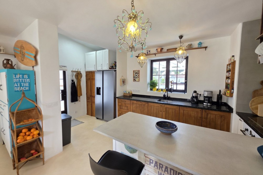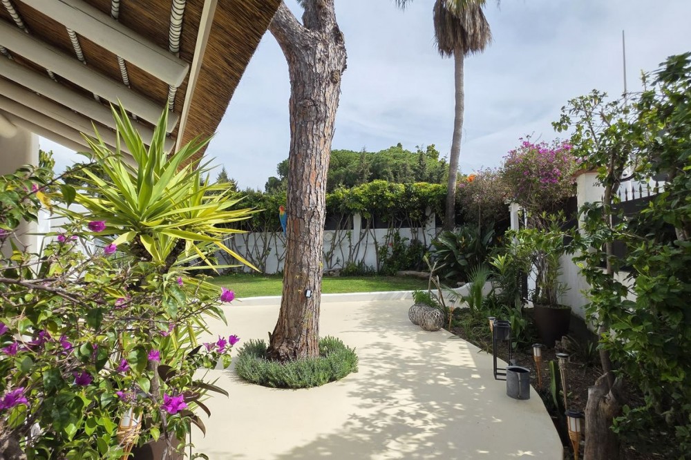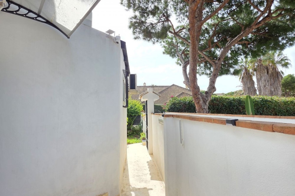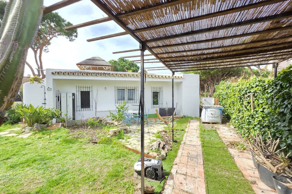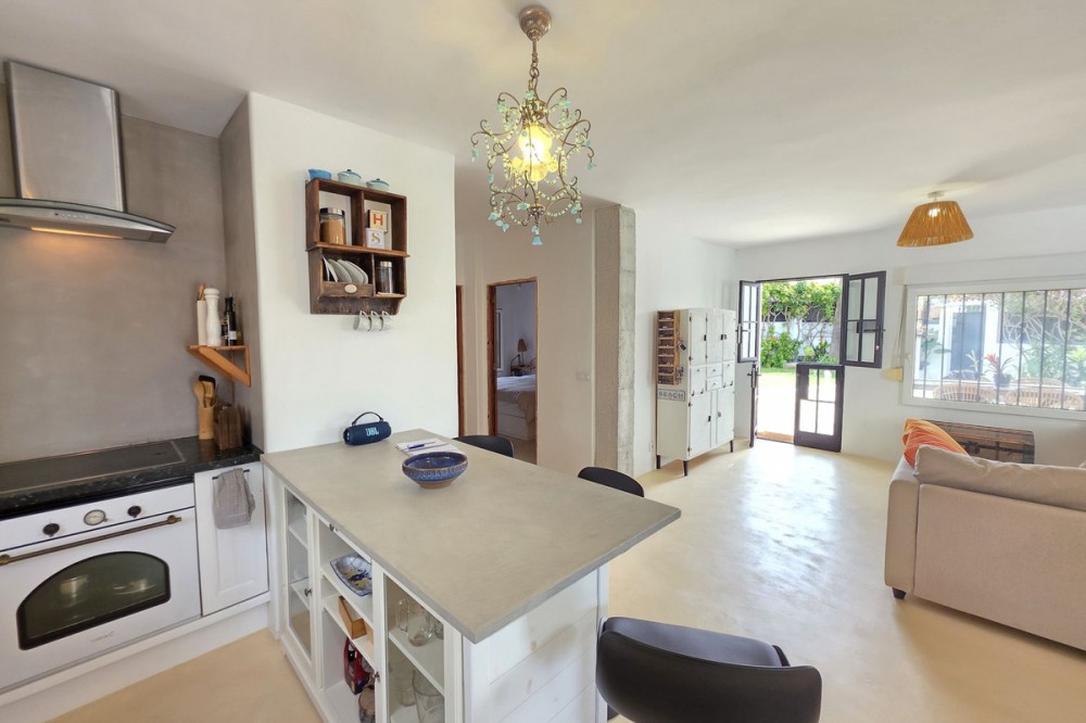 - Live the Andalusian Dream with Ibizan Flair by the Sea! We are pleased to present this exclusive detached corner villa, an architectural gem that has been fully refurbished in an exquisite Ibizan style, combining Mediterranean warmth with the most modern comforts. Located in a privileged setting, just 500 metres from the sea, this property offers a unique lifestyle where design and functionality come together on a single floor, with no stairs. The house has undergone a complete renovation, with every detail carefully considered to create bright, open and welcoming spaces. It sits on a generous private plot of almost 500 m², offering exceptional outdoor space to enjoy the area’s excellent climate in total privacy. Main features: Design & Layout: 3 spacious bedrooms and 2 full luxury bathrooms, finished with high‑quality materials and a contemporary, Ibizan‑inspired aesthetic. The entire property is arranged on a single level, ensuring easy access and a smooth flow between rooms. Private On‑Plot Parking: The property has its own parking area within the plot, with capacity for 2 cars and equipped with an electric gate to ensure maximum security and convenience. Outdoor Oasis: Private plot of almost 500 m² with garden and terrace areas, ideal for creating your own outdoor paradise. Functionality: Includes a utility room and pantry, cleverly integrated for optimal home organisation. Exclusivity & Surroundings: The property is part of a gated and very select community of only 13 villas, guaranteeing a quiet and secure residential environment. In addition, you can enjoy excellent communal areas: – Communal swimming pool open all year round – Social club for events and moments of relaxation – Multi‑sports court for fitness and outdoor activities This house is not just a property; it is a peaceful retreat with the character of Ibizan style and the advantage of a brand‑new, full refurbishment in an unbeatable location. Come and discover your new home by the Mediterranean!