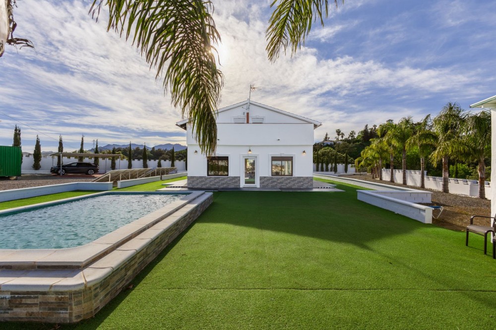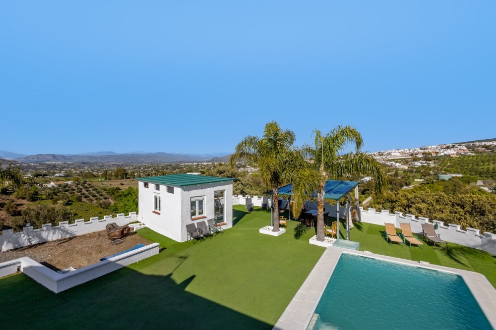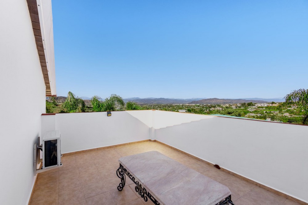 - A Spectacular, Substantial and Recently Built Country Villa with Panoramic Views This stunning, country property is well built, sizeable and situated a short drive from the centre of Alhaurín El Grande and Coin. The sole owners specified a full, ground-up build to exacting standards using quality materials. Without hesitation this unique and special villa provides the next owner with an exceptional opportunity. For those seeking a truly unique, generously proportioned residence that is private, well located and with far reaching 360degree views, this could be the one. The property benefits from numerous modern-day conveniences and is now offered for sale in a move-in ready, turn-key condition. Situated within the protected area of Las Lomas, very close to Alhaurín, the location and setting of this perfectly sized country estate is quite simply, exceptional. This spacious six-bedroom, five-bathroom villa is distributed over two floors and provides a varied and wide range of dining, lounge, seating and living areas most of which overlook the swimming pool and terraced areas with near infinity and beyond views. The property is accessed by a concrete driveway and there is sufficient hard standing for 10 plus cars. The solar panels are located away from the property, close to the hard standing, car parking area. On entering the villa, you will find a generous and well-crafted open plan lounge-kitchen-dining area that leads to the lower floor bedrooms, and what could become an office, and study or playroom. On this floor there is a separate shower room and a utility room. A feature staircase leads to the upper floor where there are four generous and well-planned bedrooms, each with its own en-suite and separate sun terrace. Externally, the views and privacy are simply unmatched and boast a centrally located swimming pool, several sunbathing and dining terraces, a BBQ dining cabana and entertainment area enjoying far reaching, mountain, valley and castle views. There is a low maintenance plot where the property sits and a separate, easily accessed, near 9,000m2 country garden stocked with fruit, olive trees and cactus plants. The entire property is heated and cooled with air conditioning throughout, providing comfort to all rooms, all year round, powered at low cost by the Solar Panels. Additionally, water is provided by the local authorities and by a separate well – perfect for irrigation. In addition, there is a car port for two cars, a 40-foot storage container, a brick-built storeroom and water deposit. Both plots are fenced and or walled, and the property is accessed via electric gates. The villa is well placed for Alhaurin El Grande, Mijas, La Cala, Fuengirola, Malaga Airport, Marbella and beyond. There are endless beaches and numerous golf courses within 10-25 mins and the pièce de résistance of the area, the extensive and wide variety of high-quality restaurants in the local vicinity. A leisurely 5-10-minute drive takes you to the local towns of Alhaurin and Coin, Malaga airport and Marbella are just 30 mins away. We recommend that potential buyers looking for such a property to act swiftly. This country residence will suit those looking for a fabulous permanent living, family home, for an investment, long or short-term rental income, or as a lock-up and leave holiday home. Please make contact for further details and to register your interest.