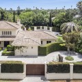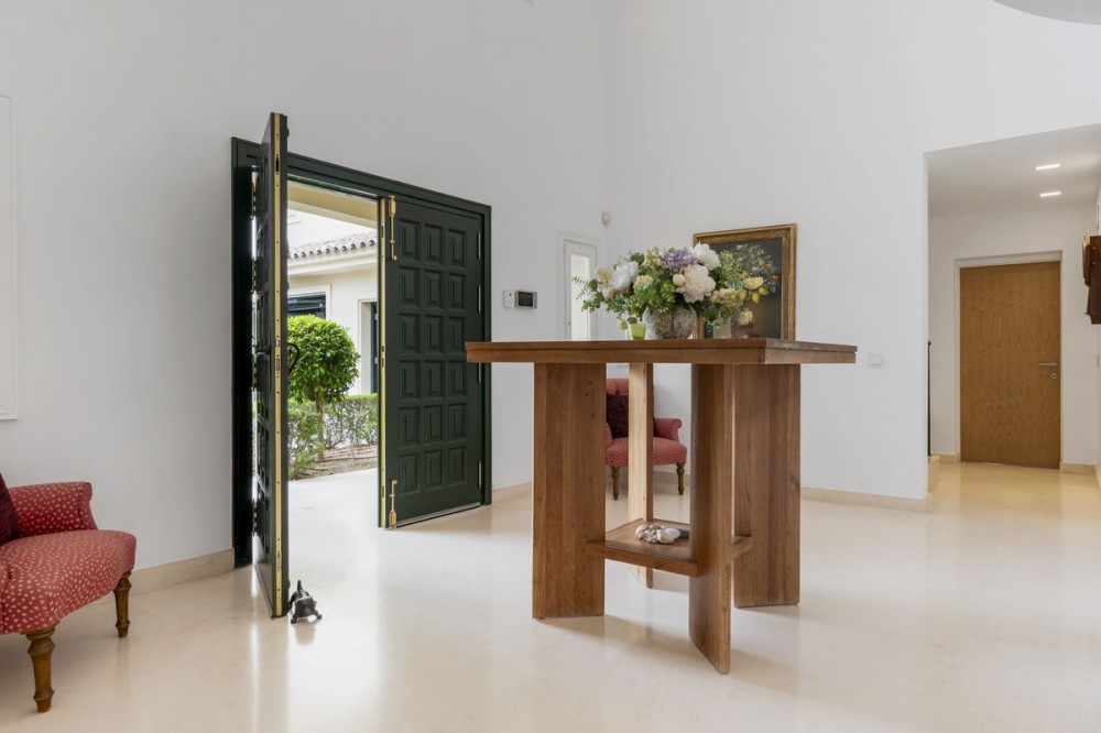 - Modern Andalucian Villa in the Prestigious Kings and Queens, Sotogrande Costa Welcome to this exquisite Modern Andalucian Villa, situated in the prestigious Kings and Queens area of the highly sought-after Sotogrande Costa location. This exceptional property offers a perfect blend of contemporary luxury and traditional charm, set on a generous south-facing plot with mature gardens and versatile entertainment spaces. The villa features a large swimming pool surrounded by natural flagstones and decking, providing the perfect environment for relaxation and social gatherings. Upon entering, you are greeted by a double volume entrance hall that leads to a spacious open plan kitchen and formal lounge, both of which open onto a covered patio with access to the gardens and pool. The ground floor also includes a formal dining room, a separate laundry area, a service bathroom, and ample storage spaces. In the right wing, there is a very large master bedroom with a walk-in wardrobe, en-suite bathroom, and direct access to the gardens and pool, a private study, as well as an additional private suite with a bedroom and en-suite bathroom. The upper level boasts two large bedrooms with en-suite bathrooms, both leading onto a spacious terrace overlooking the gardens and pool. Additionally, there are two more bedrooms sharing a bathroom, along with a separate informal lounge/TV room. The property also includes a large parking area, a private garage, and elegant fountains at the entrance. This villa epitomizes luxury living, offering ample space, modern amenities, and beautiful surroundings, making it the ideal setting for a serene retreat or entertaining guests.
