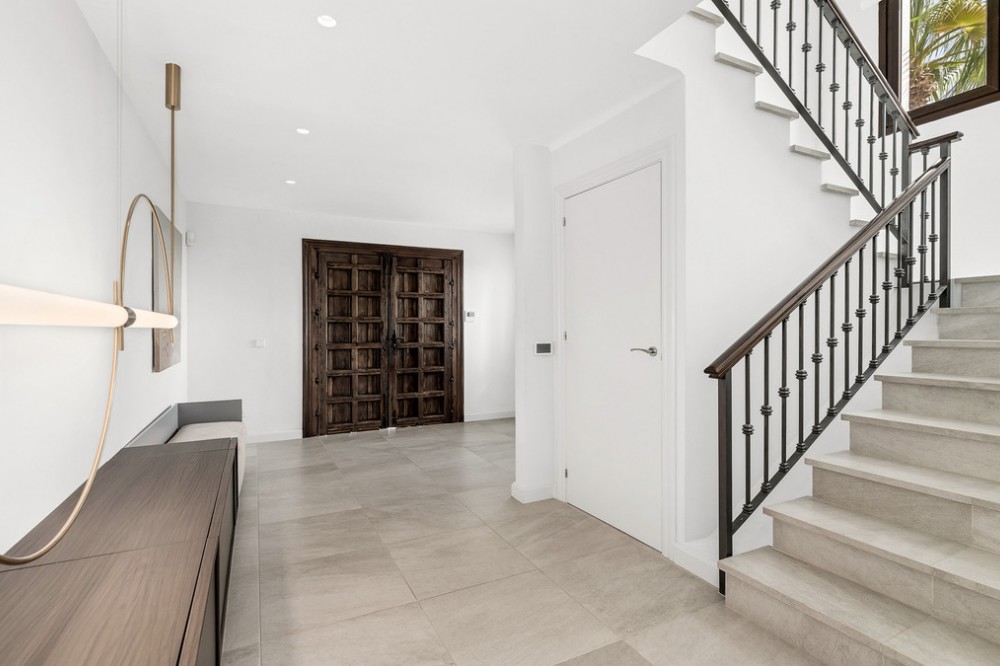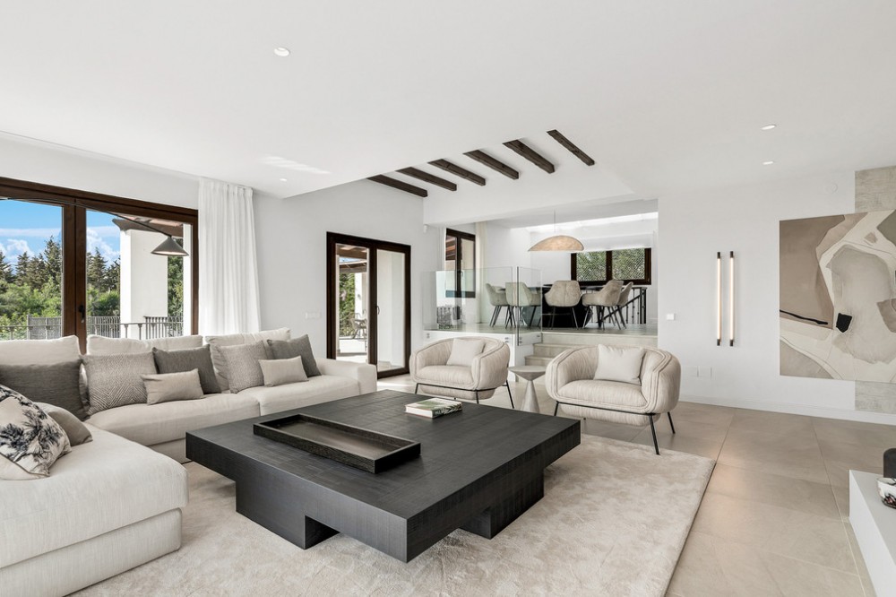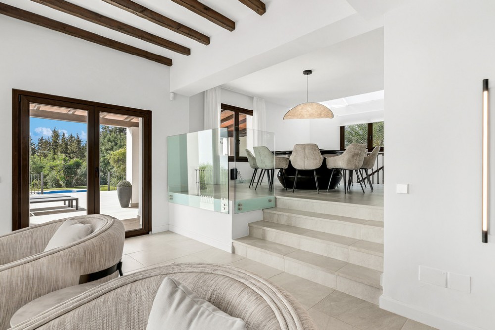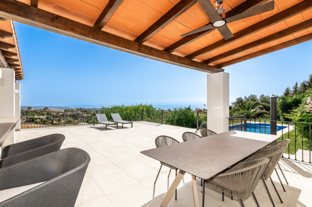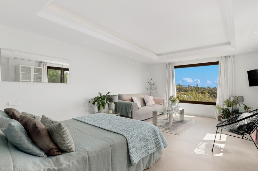 - Modern Andalusian Treasure with Breathtaking Sea and Mountain Views We are delighted to offer this exquisite modern Andalusian residence, boasting sweeping views of the sea and surrounding mountains. Set above one of Europe’s largest Safari Parks, this home blends elegance and serenity with contemporary luxury and design. Entering through grand wooden doors, you’re welcomed into a warm hallway that leads to a stylish office space, offering incredible views over the lake and coastline—an ideal work-from-home setting. The hallway flows into a spacious open-plan lounge and elevated dining area that comfortably seats 12, both enjoying panoramic vistas. The modern kitchen is fully open-plan with a generous island and plenty of seating—perfect for entertaining. Also on this floor is a charming double guest bedroom with its own ensuite, ideal for visitors or staff. Step outside onto a vast 120 m² terrace featuring an outdoor bar, fully equipped kitchen, and BBQ area, all surrounded by lush mature gardens and a private pool—again, with stunning mountain, sea, and lake views. Upstairs are two generous double bedrooms and a large family bathroom. A few steps further lead to the expansive master suite occupying nearly 120 m², complete with a luxurious bathroom, walk-in wardrobe, spacious bedroom with dual aspect views, Juliet balcony, and private sun terrace. The lower level offers a self-contained guest apartment with kitchen, bathroom, and beautiful views. Adjacent is a versatile leisure space, perfect for a home cinema, gym, spa, or creative studio. A private double garage with separate access makes it easy for guests to come and go freely. Located near a new American international school, just 15 minutes from Puerto Banús, 5 minutes from Estepona, and close to beaches and golf. This is a rare opportunity to enjoy nature, privacy, and modern luxury in one exceptional Andalusian home.