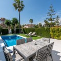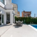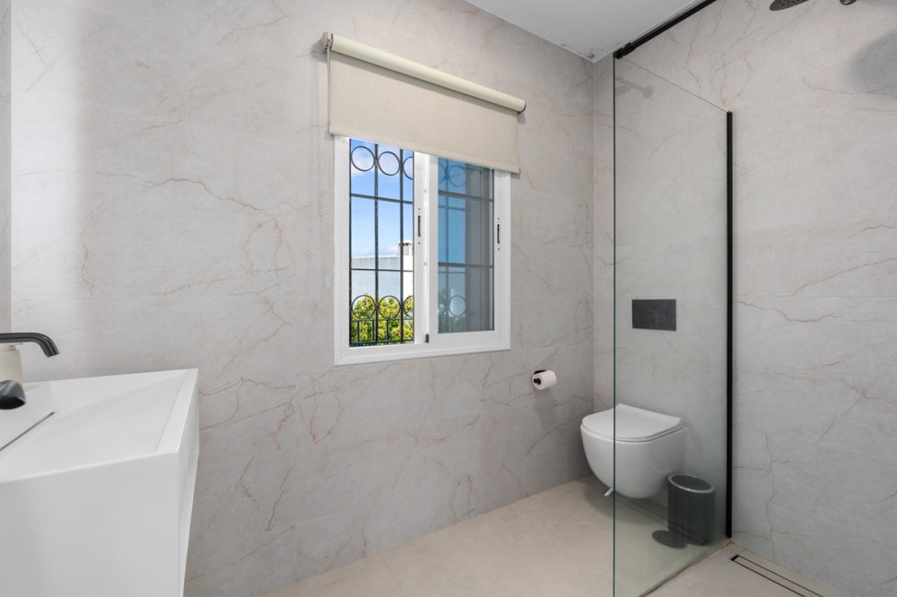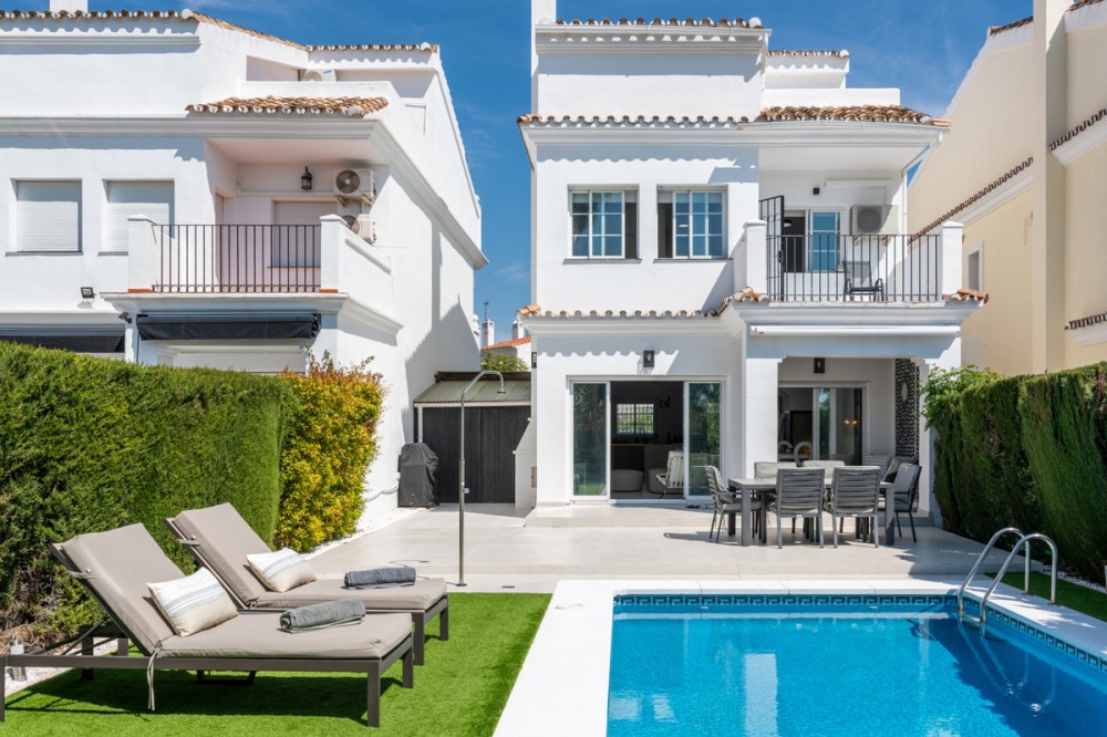 - Stunning Fully Refurbished 4-Bedroom, 3-Bathroom Villa in Bel Air Cancelada This exceptional villa has been completely renovated in 2024 and is presented to an outstanding standard, offering a seamless layout across three thoughtfully designed levels. The ground floor features an elegant entrance hall, guest cloakroom, and a charming wine bodega. A spacious, fully fitted open-plan kitchen flows effortlessly into a bright and expansive living and dining area, with double doors opening onto a generous terrace. This leads to a beautifully landscaped garden with a private swimming pool, ideal for outdoor living and entertaining. On the first floor, the property offers a luxurious master suite with en-suite bathroom, fitted wardrobes, and direct access to a private terrace. Two additional double bedrooms, both with fitted wardrobes, share a well-appointed family bathroom. The top floor hosts a further large bedroom with fitted wardrobes, an en-suite bathroom, and access to two private terraces, perfectly positioned to enjoy both morning and afternoon sun. Multiple terraces throughout the home enjoy stunning mountain views, enhancing the sense of space and tranquillity. Set within an exclusive gated community of just 13 residences, the property benefits from two private parking spaces at the front, as well as a side driveway with potential to be converted into a carport. This is an ideal opportunity for a luxurious holiday home or a stylish permanent residence. Keys are held for convenient viewings.