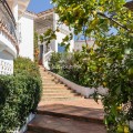 - This spacious and unique home offers breathtaking panoramic sea views and a west-facing garden where you can enjoy sunshine and spectacular sunsets by your private swimming pool. The bright and open living room connects seamlessly to a large terrace and a modern open-plan kitchen, creating the perfect space for relaxing and entertaining. The villa features four bedrooms, offering plenty of space for family living as well as hosting guests. One of the property’s most charming features is the cozy and distinctive tower room, which can be used as a hobby space, office, or a peaceful retreat. The garden brings Mediterranean charm right to your doorstep, with avocado, lemon and orange trees. The property also includes a private sauna area and a separate building currently used as a gym, which could easily be converted into a studio apartment for guests or rental use. The large plot offers privacy and plenty of space for outdoor living. The property also includes two covered parking spaces and solar panels, providing improved energy efficiency and lower running costs. The location is excellent – just a few minutes’ drive from the beach, restaurants and local services. This villa beautifully combines space, views and the Mediterranean lifestyle. Welcome to visit – this home truly needs to be experienced in person!