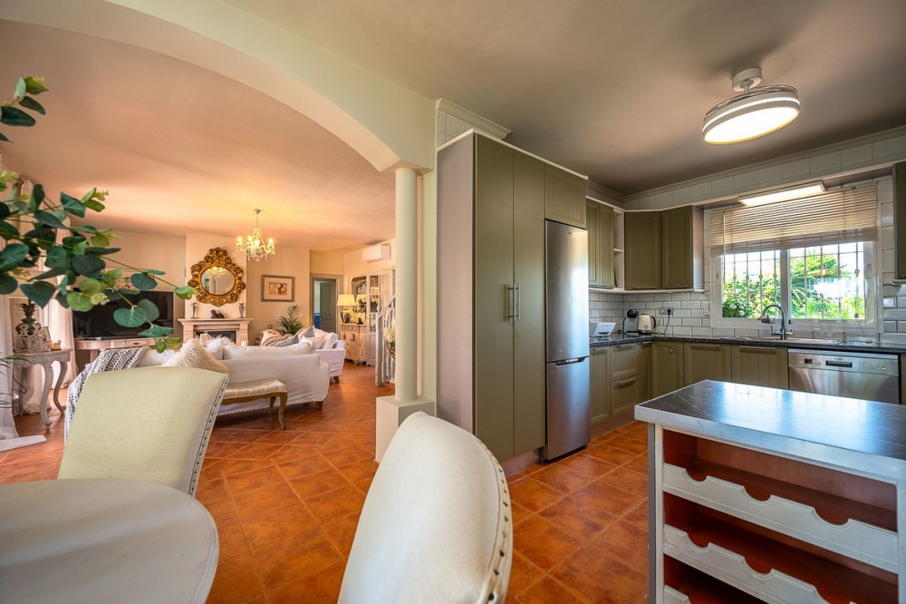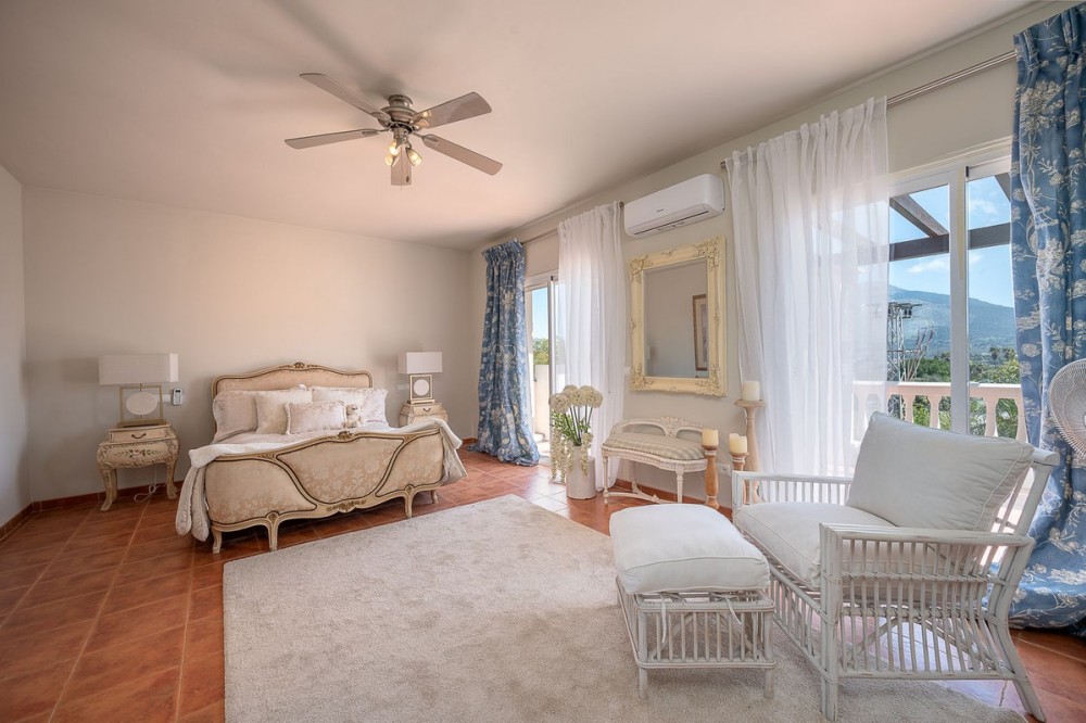 - Beautiful detached villa in the outskirts of Coín set on a generous plot with a private pool and landscaped gardens, perfect for enjoying the Mediterranean lifestyle. Originally designed with 3 bedrooms, the property now offers 2 spacious bedrooms: one on the ground floor and an impressive master suite upstairs with a private terrace boasting stunning open views towards Mijas and Alhaurín El Grande. The home also features a guest toilet, a bright living room with working fireplace, dining area and open-plan kitchen, creating a warm and inviting atmosphere. From the living room, you access a large terrace with covered seating area, ideal for outdoor dining, BBQs and relaxing while enjoying the views. Additional features include new air conditioning, a covered parking bay and an independent laundry room with private access, perfect as an office or studio. Located in a quiet and private area, just 5 minutes from Coin town and 25 minutes from the beach and La Cala de Mijas. Ideal as a permanent residence or investment opportunity. Book your viewing now and discover your new home!