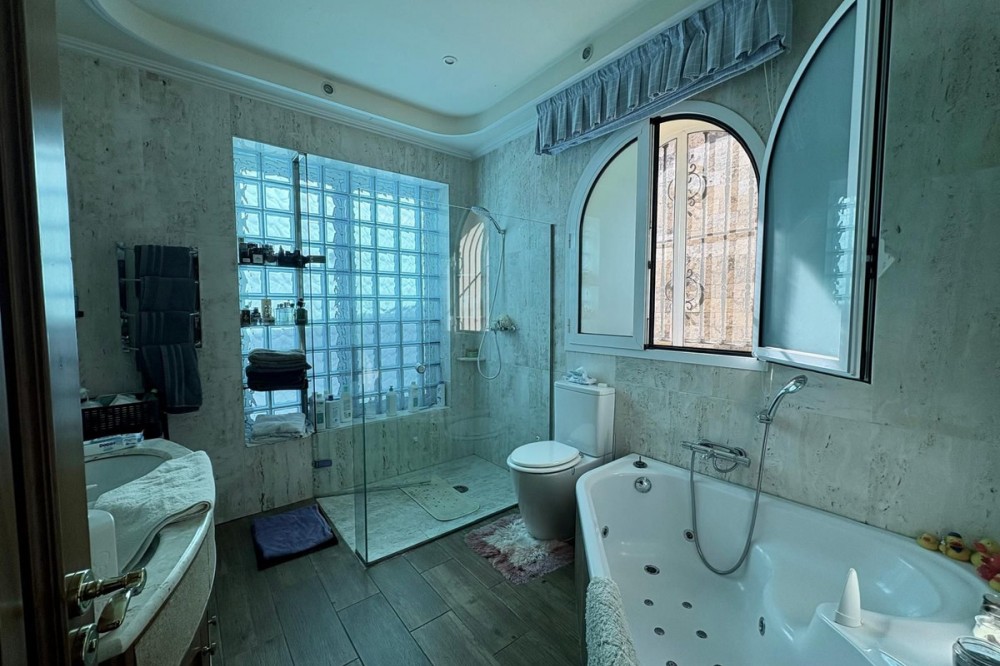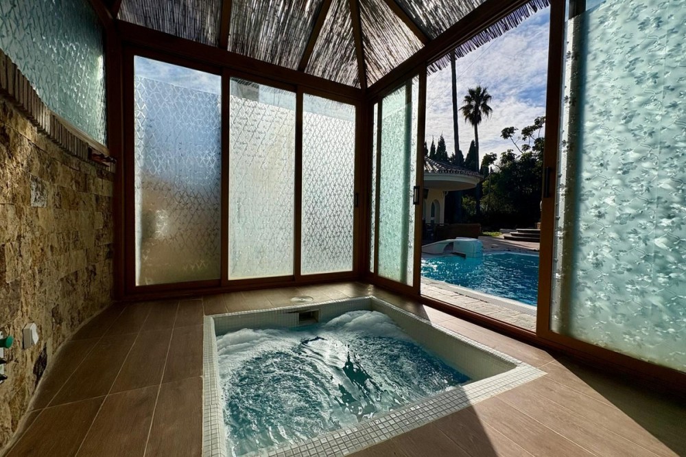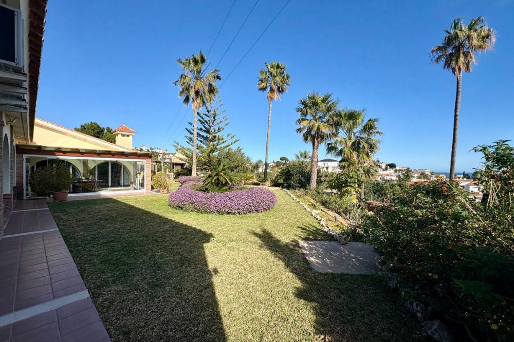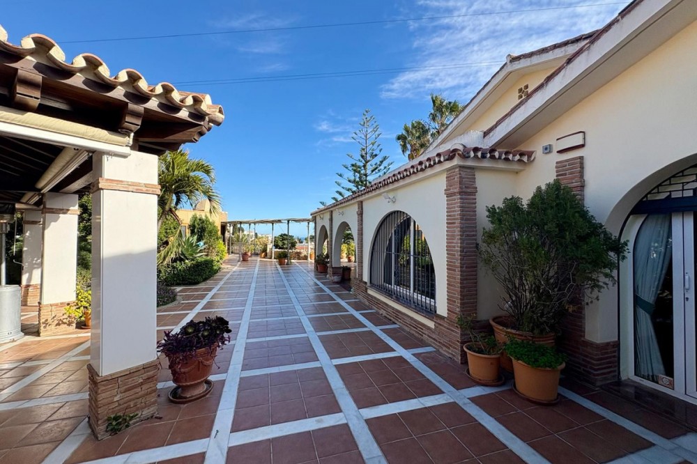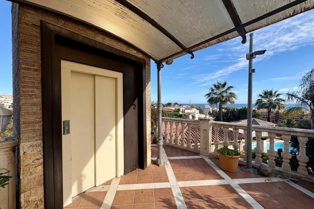 - This is a one‑of‑a‑kind villa in Torreblanca, Fuengirola, offering a rare level of privacy and space within walking distance of the sea. Designed for comfortable everyday living as much as for hosting, it combines generous interiors with large, open gardens and wide sea views. The main house is set all on one level, with 5 bedrooms and 4 bathrooms arranged to give each room privacy while keeping a practical layout. The living areas open to the terraces and garden, so it is easy to move between inside and outside. Large windows bring in natural light and provide views of the garden and the sea. For relaxation and wellness at home, the property includes its own private pool, jacuzzi, sauna and gym, offering a complete spa‑like experience without leaving the house. The garden is extensive and largely flat, with multiple areas for sun, shade, and outdoor dining, all set against the backdrop of the coastline. A separate guest house with its own private kitchen allows friends or family to stay with full independence and comfort. There is also a substantial garage with capacity for more than six cars, ideal for car enthusiasts or anyone needing secure, covered parking on a larger scale. A private elevator connects the different levels of the property, making daily life easier and more accessible. Altogether, this villa stands out not just for its features, but for the feeling of seclusion and exclusivity it offers so close to the sea. It is a property created for those who value space, privacy, and the ability to enjoy a complete lifestyle at home.