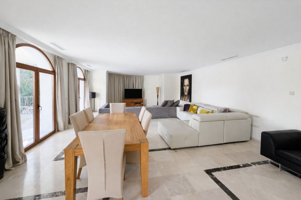 - EXCLUSIVE LISTING! SUPER OFFER! THE BANK ESTIMATES THE VILLA HAS A VALUE OF €4,600, 000, THE OWNER WANTS TO SELL IT QUICKLY AND THEREFORE THE LAST MINUTE OFFER IS ONLY €3,495, 000 This villa is located in the El Paraiso urbanization, approximately 18 km west of Marbella, near the El Paraiso Golf Club. On the ground floor, upon entering, you will find a staircase leading to the first floor and another leading to the semi-basement. On this floor there are 4 bedrooms, two of which share a bathroom and terrace. On the first floor there is another bedroom with a window, and on the other side of the hallway is the master suite with its private south-facing terrace, with sea views. The semi-basement is the main living area, located at garden level, with French doors on the left leading outside. Next to it is the dining kitchen, as well as a separate space that could be used as staff accommodation. This space can also be accessed from the semi-basement, which has its own independent entrance. The electrical room is also on this floor. The semi-basement has parking for at least three large cars, as well as the machine room and water tanks. This property is undergoing a major renovation and there are plans to change the layout of the 4-level house.