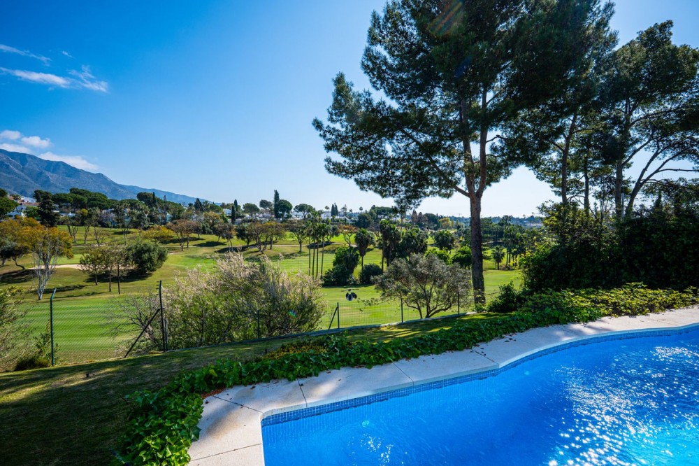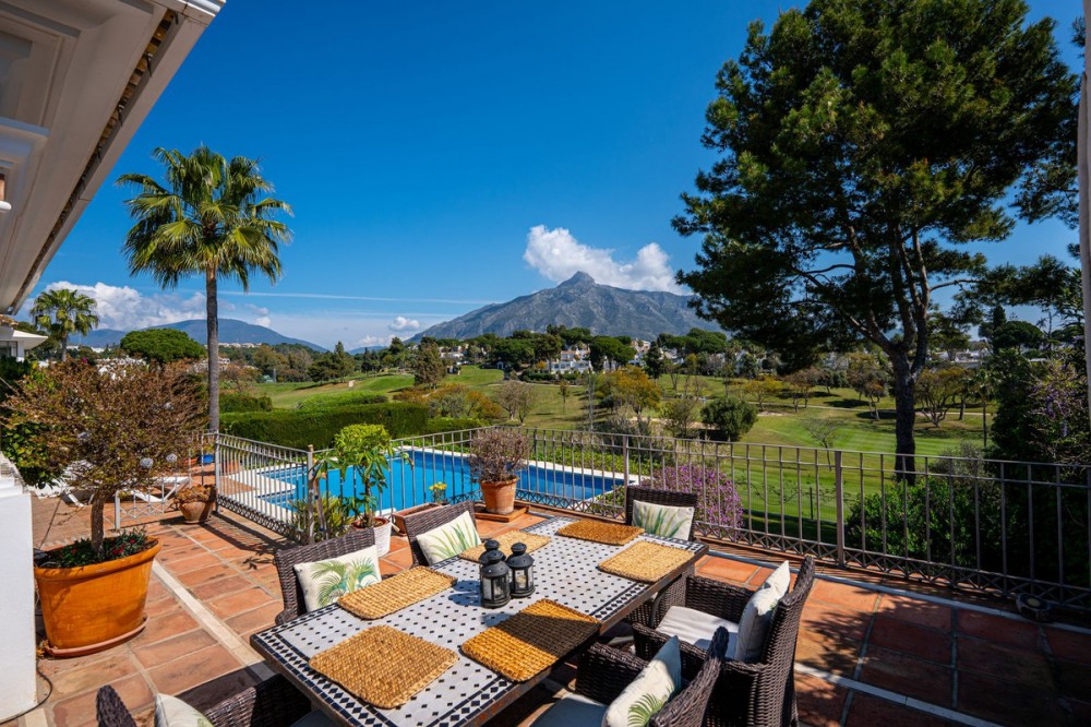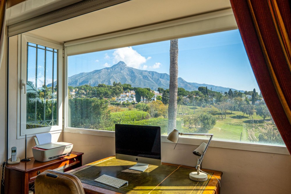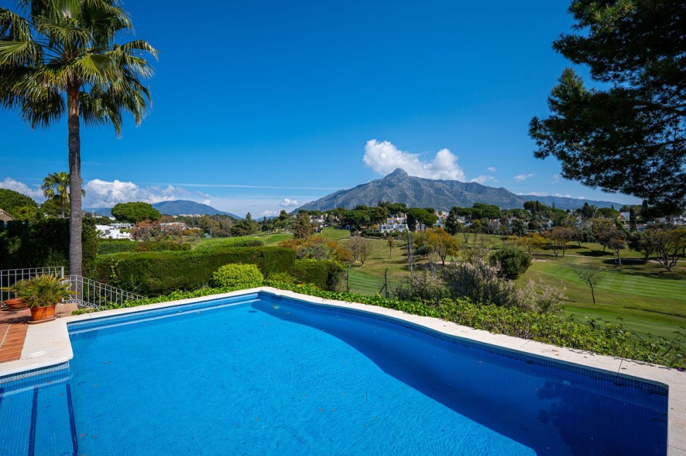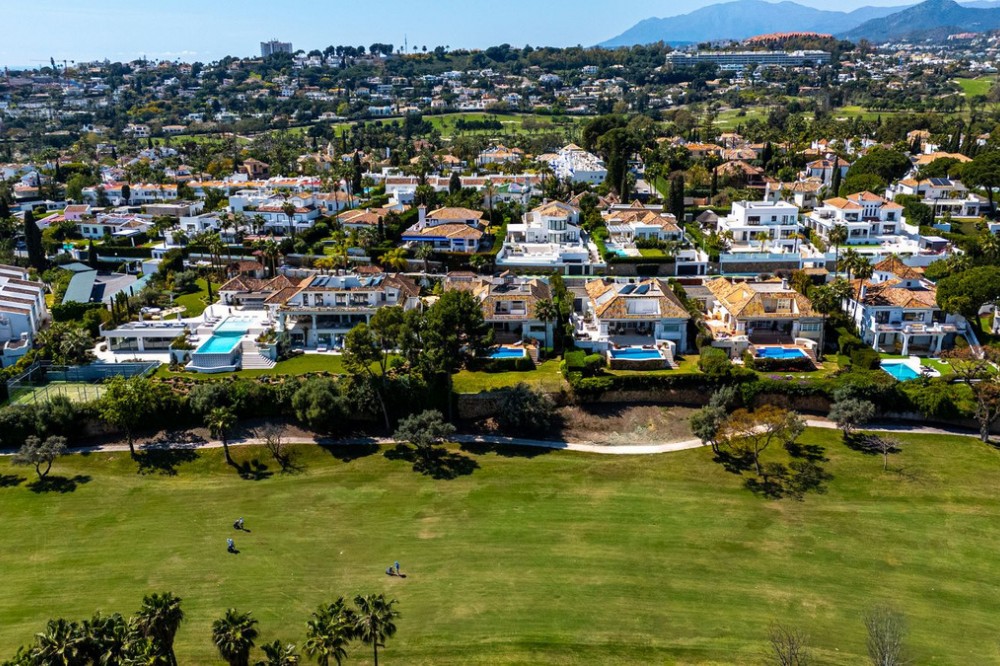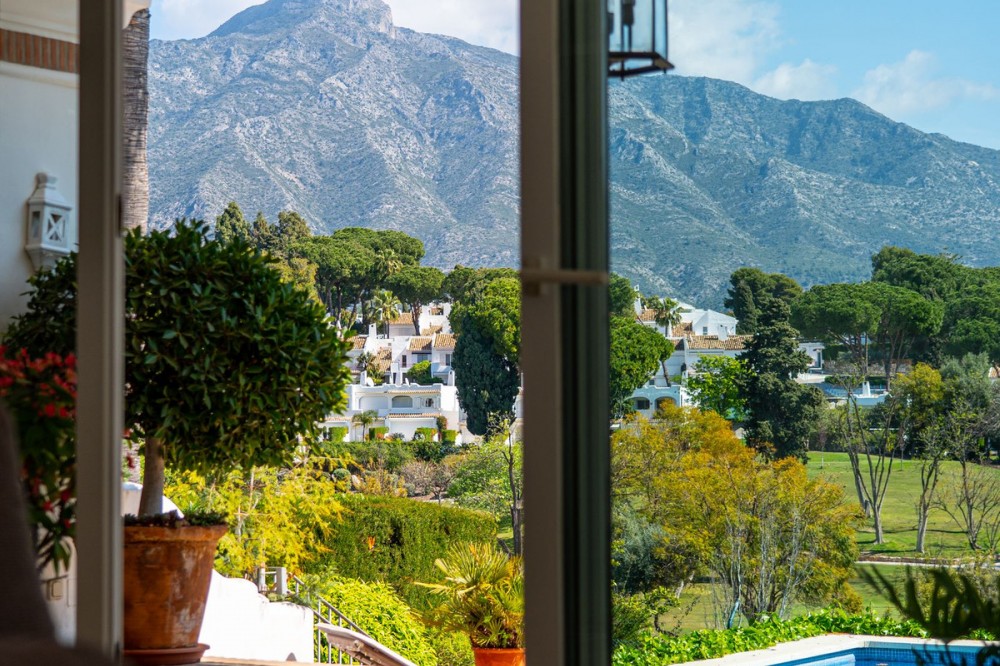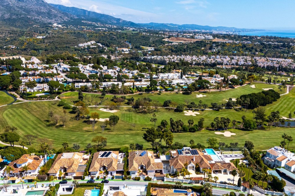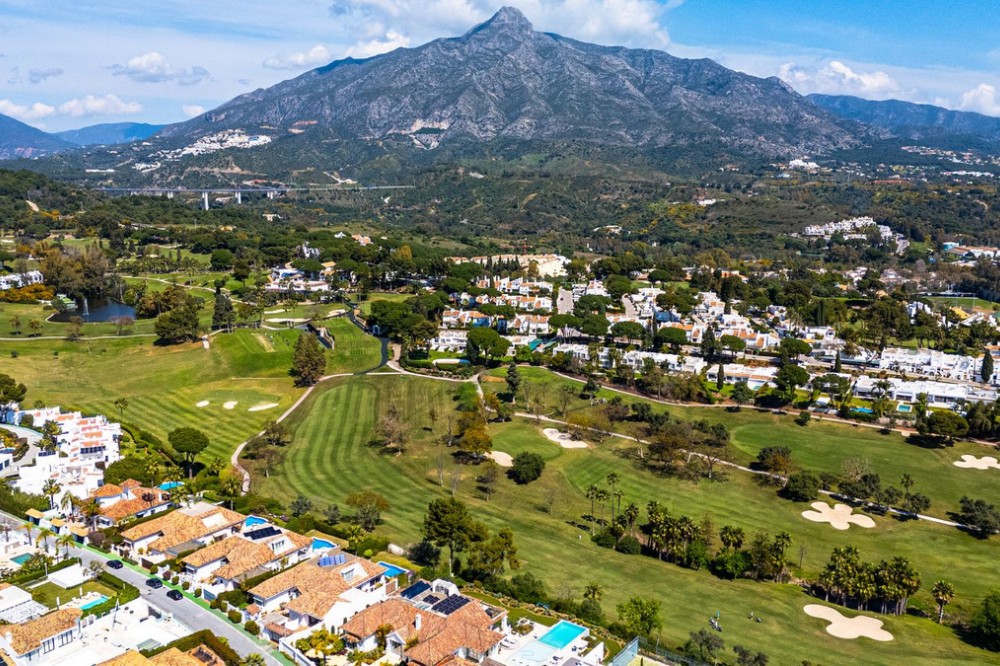 - Elegant 7-Bedroom Frontline Golf Villa with Iconic Mountain Views – Nueva Andalucía Introducing an exceptional Andalusian villa set in a prime frontline position overlooking Aloha Golf Club, where breathtaking panoramic views extend across the fairways to the iconic La Concha. Tucked away in a peaceful cul-de-sac in Nueva Andalucía, this remarkable residence offers the perfect balance of privacy and convenience, just minutes from the vibrant marina of Puerto Banús and the lifestyle amenities of Aloha Gardens. ⸻ A Home Designed for Effortless Living The villa’s layout has been thoughtfully designed to maximise comfort, natural light, and flow. The main living spaces—kitchen, dining area, and lounge—are seamlessly interconnected, each opening directly onto expansive terraces and outdoor entertaining areas. Large openings flood the interiors with sunlight, creating a bright and inviting atmosphere throughout. ⸻ Interior Highlights • Seven spacious en-suite bedrooms, each offering comfort and privacy • Lower-level bedrooms with direct access to the garden and swimming pool • Timeless Andalusian architecture combined with high-quality finishes • Open-plan living ideal for both everyday life and entertaining • Bright, airy interiors with abundant natural light ⸻ Outdoor Living at Its Finest Set within beautifully landscaped gardens, the villa’s exterior spaces are designed for the ultimate Mediterranean lifestyle: • Expansive sun-drenched terraces • Multiple outdoor lounging and entertaining areas • Private swimming pool with panoramic golf and mountain views ⸻ Why This Property Stands Out • Prime frontline golf position in Marbella’s prestigious Golf Valley • Stunning panoramic views of both the golf course and mountains • Exceptional layout ideal for families or hosting guests • Perfect as a full-time residence or luxury holiday home ⸻ This is a rare opportunity to acquire a standout home in one of Marbella’s most sought-after locations, where elegance, privacy, and lifestyle come together effortlessly.