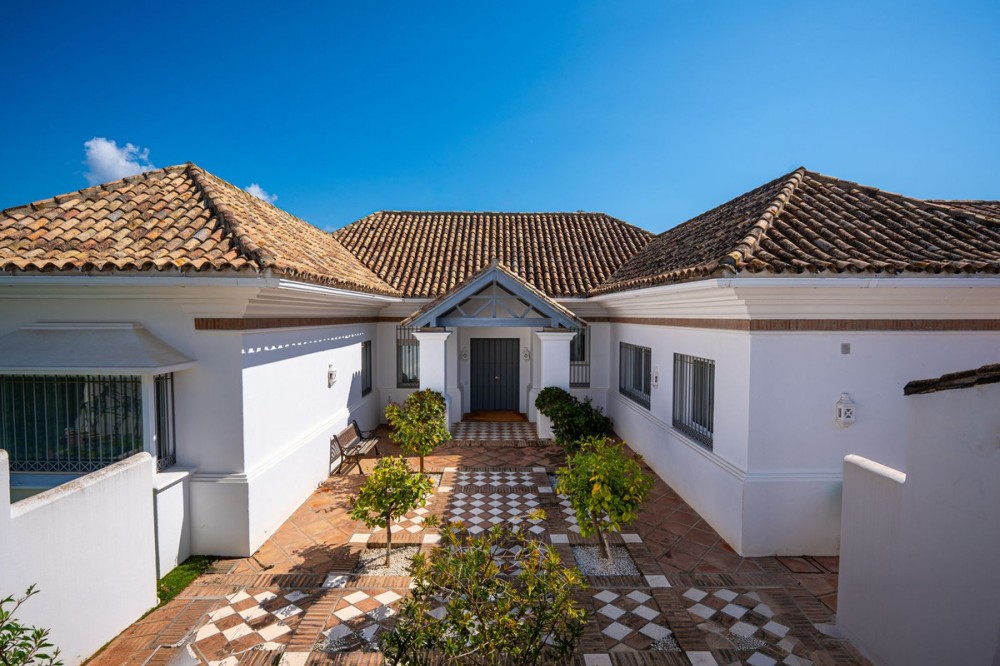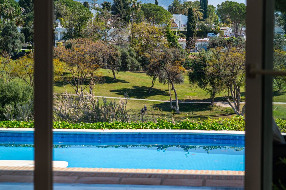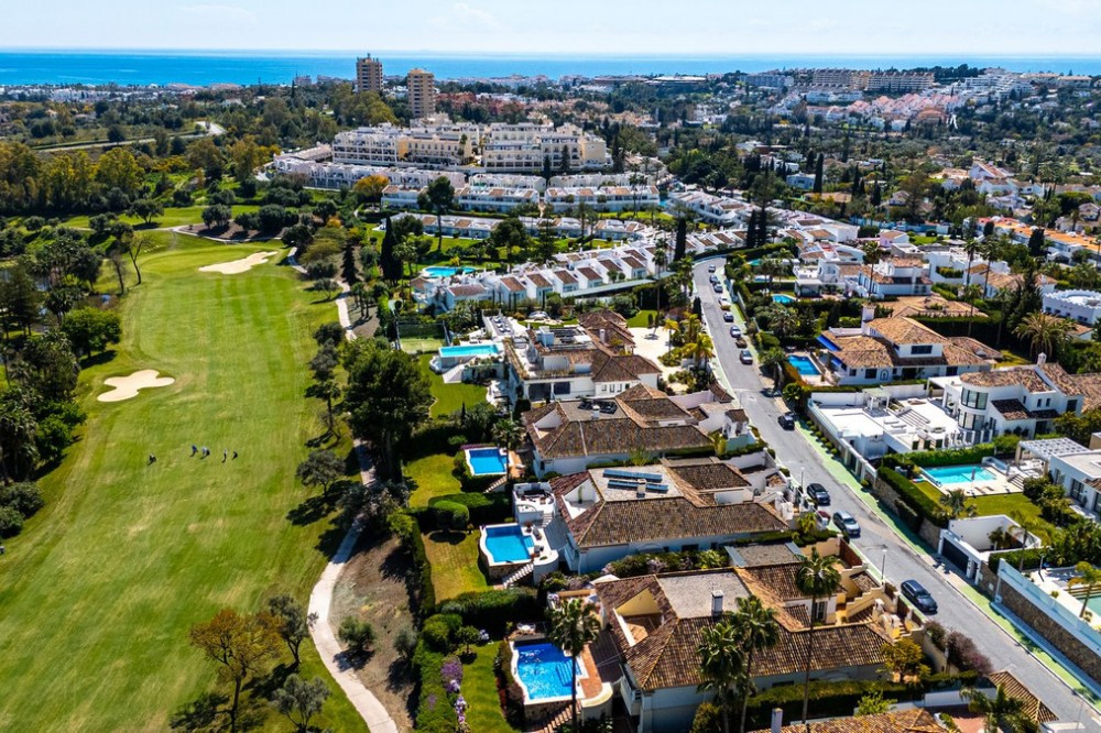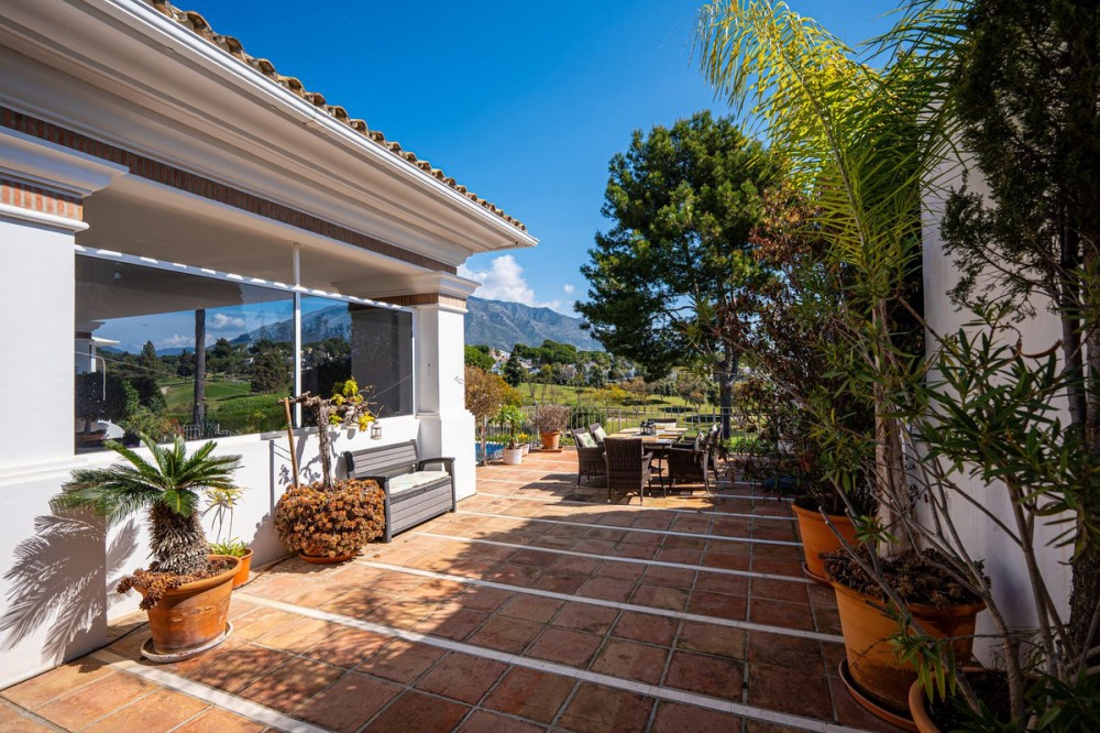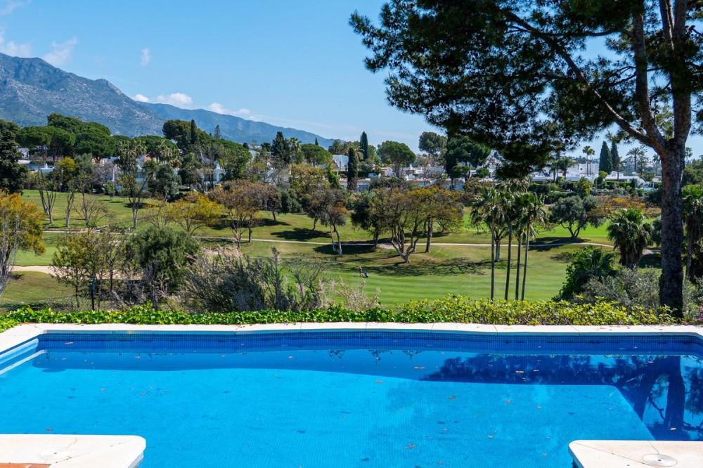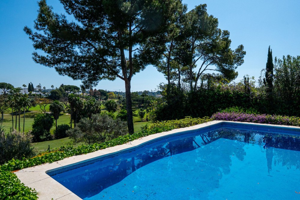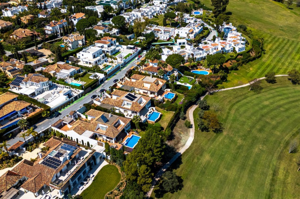 - Elegant 7-Bedroom Frontline Golf Villa with Iconic Mountain Views – Nueva Andalucía Introducing an exceptional Andalusian villa set in a prime frontline position overlooking Aloha Golf Club, where breathtaking panoramic views extend across the fairways to the iconic La Concha. Tucked away in a peaceful cul-de-sac in Nueva Andalucía, this remarkable residence offers the perfect balance of privacy and convenience, just minutes from the vibrant marina of Puerto Banús and the lifestyle amenities of Aloha Gardens. ⸻ A Home Designed for Effortless Living The villa’s layout has been thoughtfully designed to maximise comfort, natural light, and flow. The main living spaces—kitchen, dining area, and lounge—are seamlessly interconnected, each opening directly onto expansive terraces and outdoor entertaining areas. Large openings flood the interiors with sunlight, creating a bright and inviting atmosphere throughout. ⸻ Interior Highlights • Seven spacious en-suite bedrooms, each offering comfort and privacy • Lower-level bedrooms with direct access to the garden and swimming pool • Timeless Andalusian architecture combined with high-quality finishes • Open-plan living ideal for both everyday life and entertaining • Bright, airy interiors with abundant natural light ⸻ Outdoor Living at Its Finest Set within beautifully landscaped gardens, the villa’s exterior spaces are designed for the ultimate Mediterranean lifestyle: • Expansive sun-drenched terraces • Multiple outdoor lounging and entertaining areas • Private swimming pool with panoramic golf and mountain views ⸻ Why This Property Stands Out • Prime frontline golf position in Marbella’s prestigious Golf Valley • Stunning panoramic views of both the golf course and mountains • Exceptional layout ideal for families or hosting guests • Perfect as a full-time residence or luxury holiday home ⸻ This is a rare opportunity to acquire a standout home in one of Marbella’s most sought-after locations, where elegance, privacy, and lifestyle come together effortlessly.