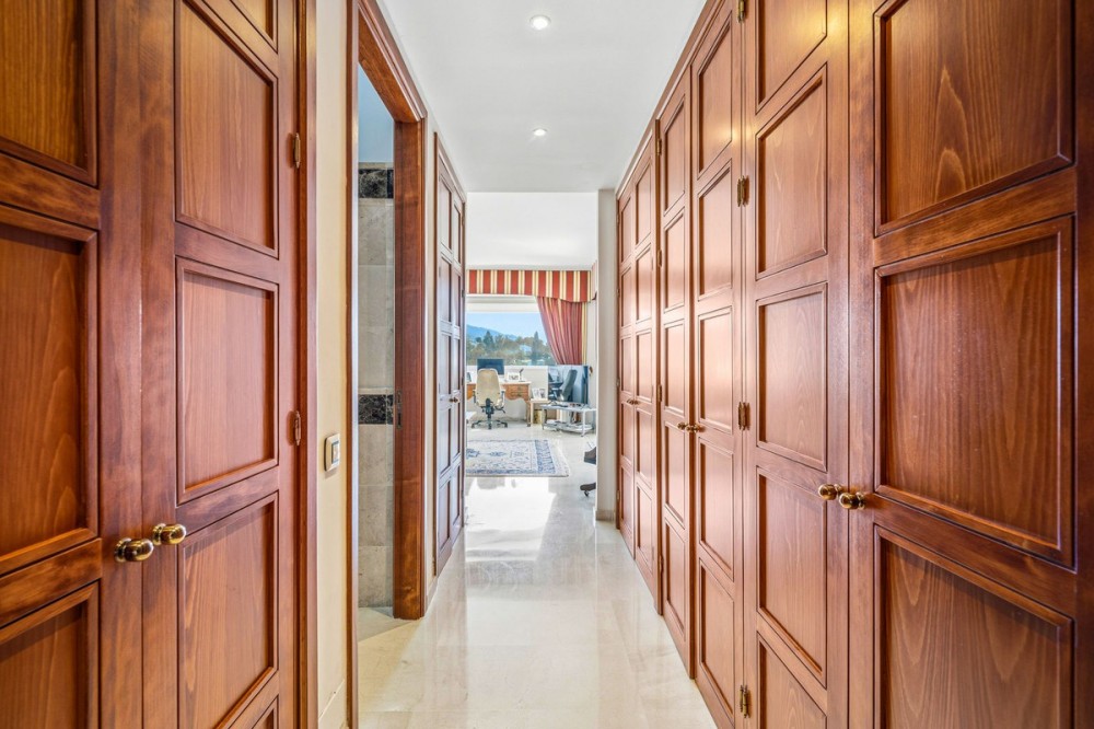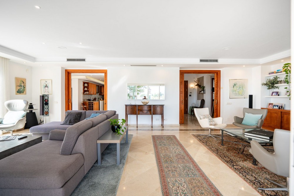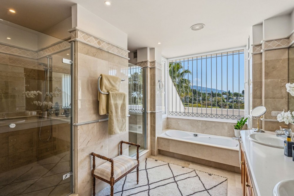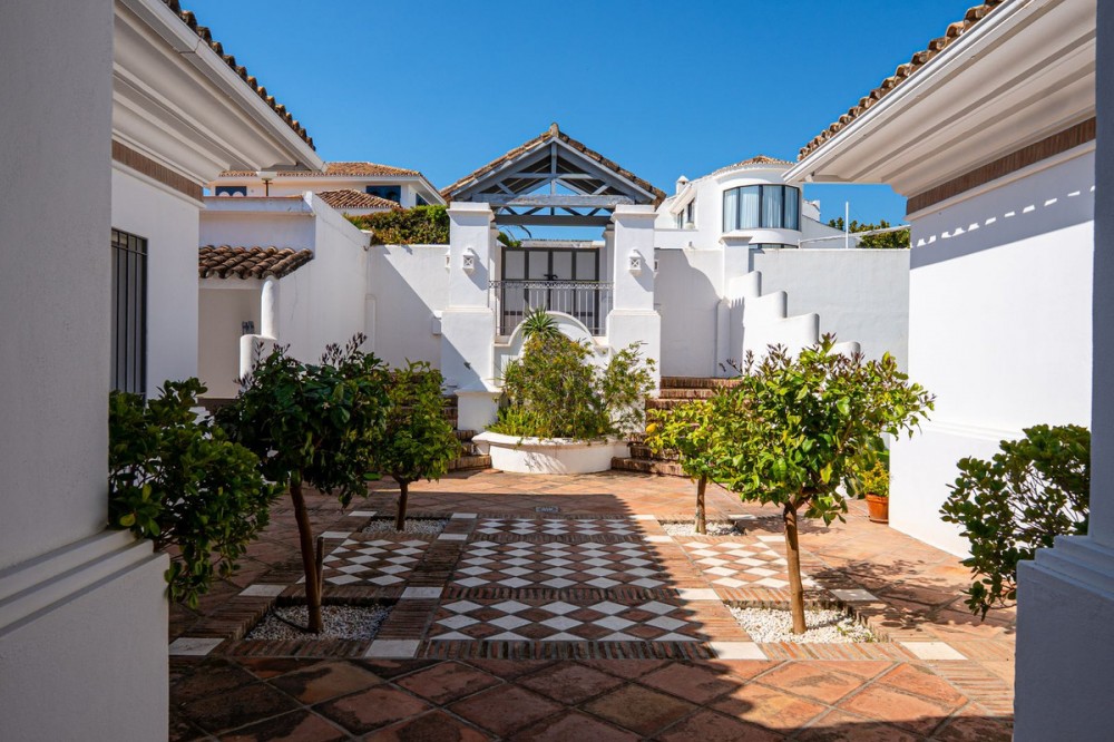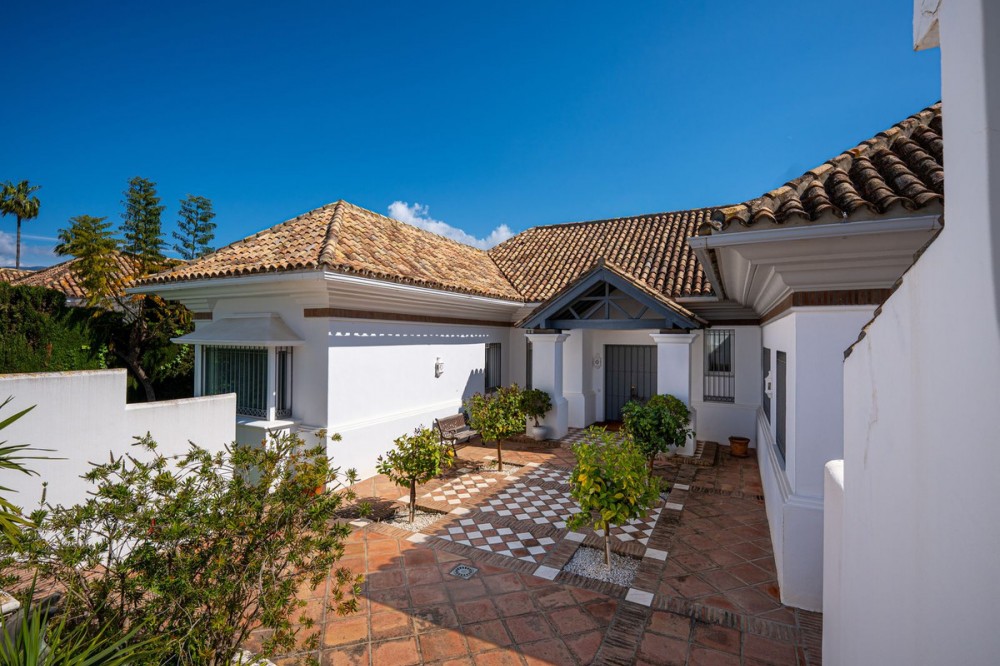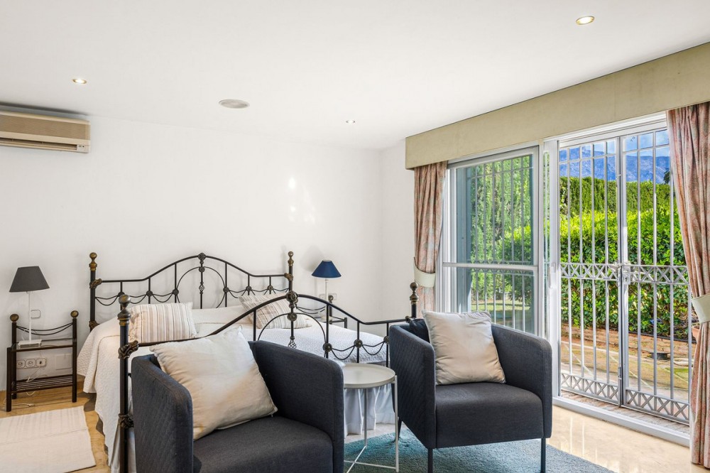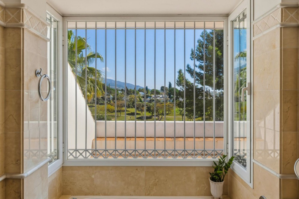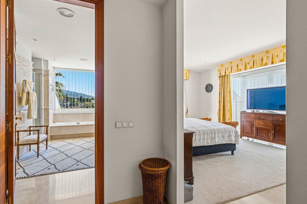 - Elegant 7-Bedroom Frontline Golf Villa with Iconic Mountain Views – Nueva Andalucía Introducing an exceptional Andalusian villa set in a prime frontline position overlooking Aloha Golf Club, where breathtaking panoramic views extend across the fairways to the iconic La Concha. Tucked away in a peaceful cul-de-sac in Nueva Andalucía, this remarkable residence offers the perfect balance of privacy and convenience, just minutes from the vibrant marina of Puerto Banús and the lifestyle amenities of Aloha Gardens. ⸻ A Home Designed for Effortless Living The villa’s layout has been thoughtfully designed to maximise comfort, natural light, and flow. The main living spaces—kitchen, dining area, and lounge—are seamlessly interconnected, each opening directly onto expansive terraces and outdoor entertaining areas. Large openings flood the interiors with sunlight, creating a bright and inviting atmosphere throughout. ⸻ Interior Highlights • Seven spacious en-suite bedrooms, each offering comfort and privacy • Lower-level bedrooms with direct access to the garden and swimming pool • Timeless Andalusian architecture combined with high-quality finishes • Open-plan living ideal for both everyday life and entertaining • Bright, airy interiors with abundant natural light ⸻ Outdoor Living at Its Finest Set within beautifully landscaped gardens, the villa’s exterior spaces are designed for the ultimate Mediterranean lifestyle: • Expansive sun-drenched terraces • Multiple outdoor lounging and entertaining areas • Private swimming pool with panoramic golf and mountain views ⸻ Why This Property Stands Out • Prime frontline golf position in Marbella’s prestigious Golf Valley • Stunning panoramic views of both the golf course and mountains • Exceptional layout ideal for families or hosting guests • Perfect as a full-time residence or luxury holiday home ⸻ This is a rare opportunity to acquire a standout home in one of Marbella’s most sought-after locations, where elegance, privacy, and lifestyle come together effortlessly.