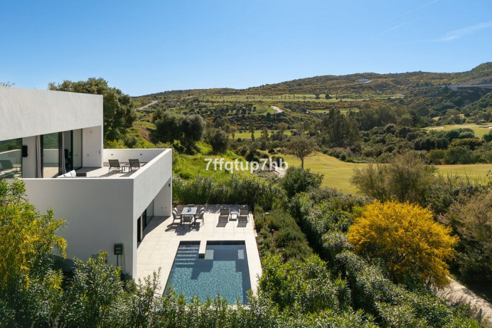- New villa in Valle Romano, Estepona We are pleased to present this elegant, contemporary-style villa situated on the golf course, in one of the quietest and most sought-after areas of Estepona. The property sits on a 553 m² plot and offers 219 m² of floor space, laid out in a comfortable and functional manner. It features 3 bedrooms, all with en-suite bathrooms, as well as a guest bathroom. The master bedroom boasts a spacious walk-in wardrobe, adding that extra touch of comfort. The heart of the home is its bright living-dining room with a modern open-plan kitchen, which opens directly onto a pleasant terrace and private garden, perfect for enjoying the natural surroundings and the Costa del Sol climate. The villa also includes a heated swimming pool and a cinema area, ideal for both relaxation and leisure. Key features include parking for two cars and a unique design, built to the highest standards and designed to offer year-round comfort. An ideal opportunity for those seeking privacy, design and a prime location next to the golf course.