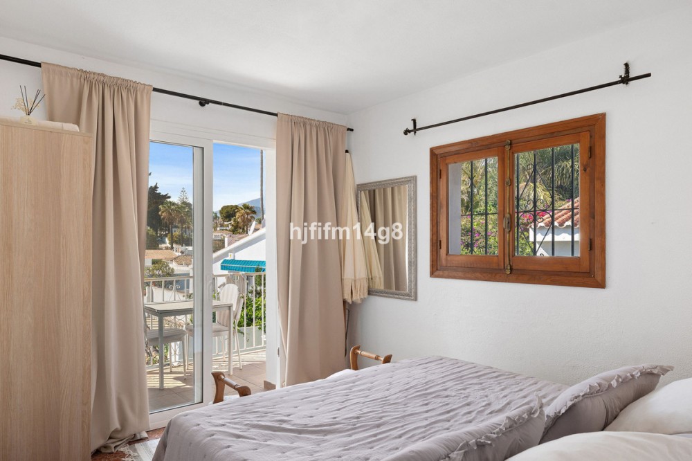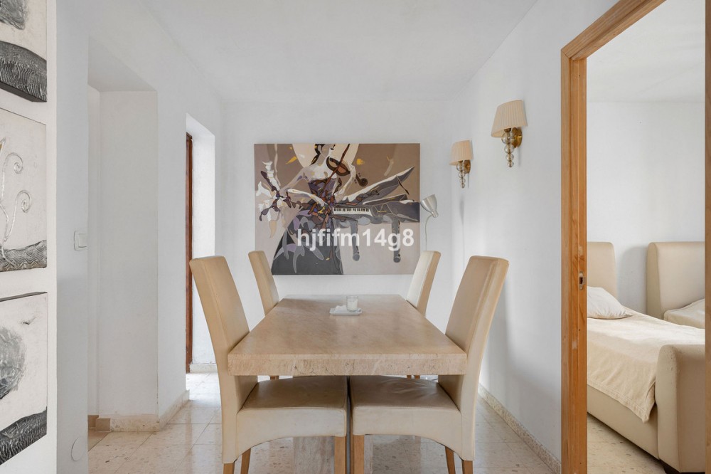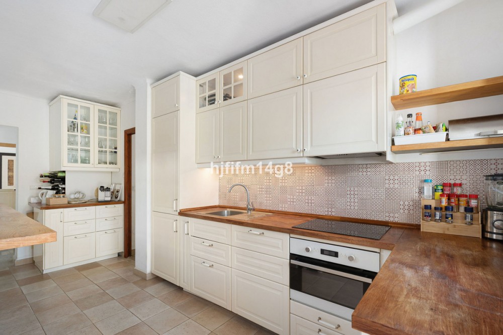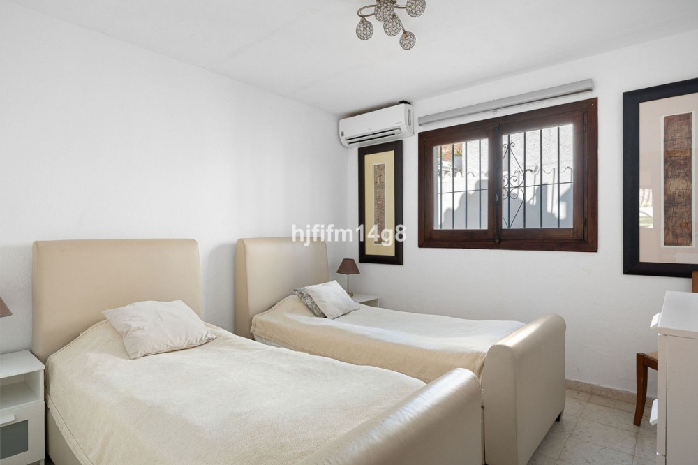 - Located in the highly sought-after area of La Campana, this charming 4-bedroom villa offers an exceptional opportunity to enjoy comfortable living in one of the most convenient and well-connected parts of Nueva Andalucía, just minutes from the vibrant lifestyle of Marbella. La Campana is known for its authentic Andalusian atmosphere, proximity to international schools, shops, restaurants, and easy access to Puerto Banús and the beach, making it an ideal location for both permanent residence and investment. Upon entering the property, you are welcomed into a bright and inviting open-plan living and dining area, complete with a cosy fireplace that creates a warm and homely ambiance. From here, you have direct access to a pleasant porch, perfect for relaxing or entertaining guests throughout the year. The independent fully fitted kitchen is both practical and well-appointed, offering direct access to the outdoor area. On the main level, the villa features three comfortable bedrooms, a full bathroom, and a guest toilet, providing a functional layout for family living. Both the kitchen and dining area lead out to a charming exterior wooden deck, where you will find a private jacuzzi—an ideal space to unwind and enjoy the Mediterranean climate. From this terrace, a walkway leads you to the upper level. The second floor is designed as a private guest apartment, offering excellent versatility. It includes a cosy sitting room with access to its own balcony, a kitchen, a bedroom, and a bathroom, making it perfect for visitors. The basement level presents a spacious open area with great potential, allowing the future owner to customise it according to their needs. This space could easily be transformed into a large garage, a home cinema, a gym, a games room, or a multifunctional entertainment area. Additionally, this level includes a storage room and a guest toilet, adding further practicality. At the entrance of the villa, there is a private outdoor parking space belonging to the property, ensuring convenient and easy access. This property combines comfort, flexibility, and an excellent location in La Campana, Nueva Andalucía, making it a fantastic opportunity to enjoy the Marbella lifestyle in a peaceful yet central setting.