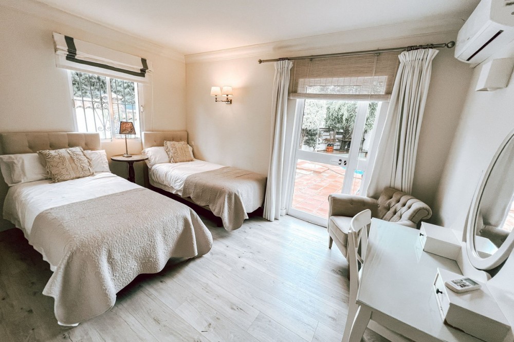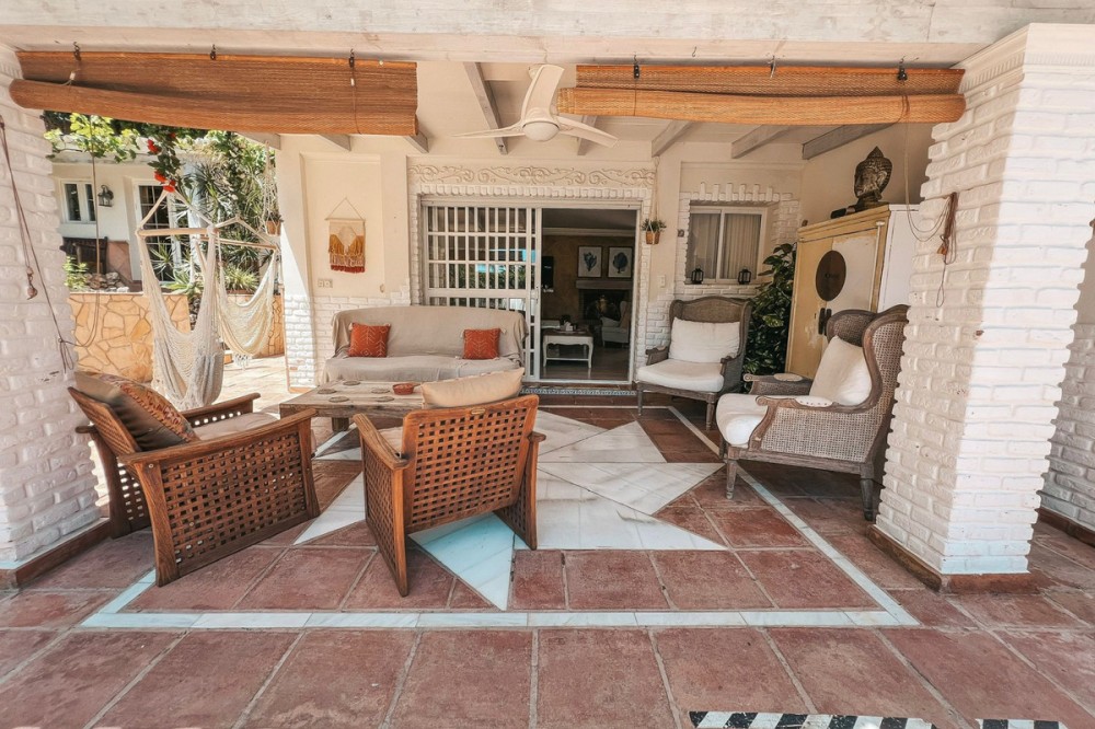 - This remarkable villa, located in the desirable Los Jazmines neighbourhood of San Pedro de Alcantara, Malaga, presents an exceptional opportunity for those seeking a comfortable and versatile residence or a lucrative investment. The property holds a valid tourist licence alredy in place, The property comprises five well-proportioned bedrooms and five modern bathrooms, providing ample space for families and guests alike. Designed with both comfort and practicality in mind, the villa spans a built area of 114m², complemented by an 18m² private terrace and set on a generous 377m² plot. The private pool and meticulously maintained garden offer inviting outdoor spaces for relaxation and entertaining, while the private garage ensures secure parking. Inside, the villa boasts a fully fitted kitchen, air conditioning with individual units, and a cosy fireplace in the living area. The residence is offered fully furnished and includes additional desirable features such as fitted wardrobes, wooden and gres floors, and both covered and private terraces with lovely views of the garden and pool. The presence of a guest room, guest toilet, dining room, and barbecue area further enhances its appeal for hosting and family living. Residents will appreciate the convenience of nearby transport links, as well as the close proximity to the sea, beaches, shops, and schools. The villa also benefits from modern amenities including high-speed fibre optic internet and Wi-Fi connectivity. With its excellent condition, well-chosen furnishings, and superb location, this villa is a distinguished offering in the San Pedro de Alcantara property market.