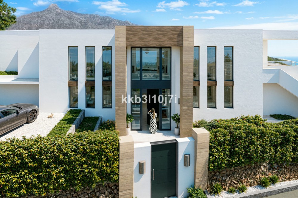 - Situated in one of the most desirable residential areas of Nueva Andalucía, this impressive new-build villa currently under construction represents a rare opportunity to acquire a contemporary home with spectacular views of the Mediterranean Sea and the iconic La Concha mountain. Designed with a focus on modern elegance, comfort, and functionality, this exceptional six-bedroom residence offers a seamless blend of cutting-edge architecture and luxurious living in a privileged setting. The property is thoughtfully distributed across multiple levels, each designed to maximise natural light, privacy, and the surrounding views. Floor-to-ceiling glass doors are featured throughout the home, enhancing the sense of space and allowing natural light to flood every room while creating a seamless connection between indoor and outdoor living areas. The upper floor is dedicated to rest and relaxation, featuring three beautifully designed en-suite bedrooms. Each of these rooms enjoys direct access to private terraces through expansive glass doors, where panoramic views of the sea and mountains create a tranquil and inspiring atmosphere. The main entrance level serves as the heart of the home, where expansive open-plan living spaces are framed by full-height glass doors that capture the dramatic silhouette of La Concha. The spacious living room flows effortlessly onto generous terraces, blurring the boundaries between interior and exterior spaces. A state-of-the-art kitchen, fitted with high-end appliances and refined finishes, is complemented by an elegant dining area, both of which benefit from the same impressive mountain views and direct terrace access. This level also hosts a superb master suite, complete with a luxurious en-suite bathroom and walk-in wardrobe, as well as a conveniently located guest toilet for added practicality. Outdoor living is a defining feature of the property, with expansive terraces designed for both relaxation and entertaining. In addition to the covered exterior dining area, the villa incorporates a fully equipped outdoor kitchen and dedicated BBQ area, creating the perfect setting for hosting gatherings and enjoying Marbella’s year-round climate. This space is complemented by convenient guest facilities, including an exterior toilet and shower, ensuring comfort when spending time by the pool. The infinity pool appears to merge seamlessly with the horizon, while surrounding lounging areas, a jacuzzi, and a fire pit are set within beautifully landscaped gardens that provide both privacy and a tranquil ambiance. The lower level of the villa is designed to deliver a complete luxury lifestyle experience. In addition to two further en-suite bedrooms for guests or staff, this level features a private cinema room, a wine cellar, a games room, a fully equipped gym, and a dedicated laundry area. A bespoke wellness area elevates the offering even further, including a sauna, hammam, and ice bath, creating a private spa environment within the home. The property also benefits from an expansive five-car garage, providing ample space for vehicles and additional storage, complemented by an exterior carport. For added convenience and comfort, the property is equipped with a private lift, ensuring easy access between all levels of the residence. Access to the property is both convenient and discreet, with two separate entrances: one providing direct vehicle access from the road, and a second main entrance located on a parallel road, enhancing both privacy and ease of arrival. Combining exceptional design, premium amenities, and a prime location in Nueva Andalucía, this villa represents an outstanding opportunity to enjoy a sophisticated lifestyle in one of Marbella’s most prestigious residential enclaves. Estimated completion and handover: March–May 2027 attractive phased payment terms available