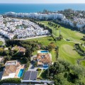 - Villa Los Leones Set in one of the most prestigious and sought-after enclaves of San Pedro, this exceptional frontline golf villa in Linda Vista offers a rare combination of privacy, scale and future development potential all within walking distance to the beach, Laude school and a wide selection of restaurants. Occupying an expansive plot of 2,322m² directly bordering the renowned Guadalmina golf course the property enjoys a privileged south position with open green views, mature landscaping and complete tranquillity while still being moments away from the vibrant lifestyle of the coast. The existing residence is thoughtfully distributed across 460m² of built space, with 264m² of interior living and 331 m² of terraces designed to maximise outdoor living. The home features a heated saltwater swimming pool generous garden areas a private football pitch and a fully equipped gym, creating a perfect environment for both relaxation and family life. Inside the property is equipped with modern comforts including underfloor heating in all bathrooms and the kitchen, triple-glazed security windows and a fully integrated smart home system controlled via tablet or mobile. A comprehensive security system with cameras and sensors ensures peace of mind while the recently upgraded hot water system and energy-efficient solar installation (120m² of panels) significantly reduce running costs. The garage offers space for three vehicles with independent access further enhancing practicality and convenience. A key highlight of this property is its remarkable development potential. The plot permits a total build of approximately 1,508m² including the option to construct up to 812m² plus a basement with a 35% building allowance and the possibility to develop up to 696m² on a single level. In addition the land can be divided into four separate plots making it possible to build four independent villas. This creates a unique opportunity for developers or investors to fully capitalise on the value of this prime location as well as for end-users seeking to design and build a bespoke luxury home in one of the most exclusive beachside areas with limited availability. Linda Vista is one of the few remaining areas on the San Pedro beachside where large plots of this calibre still exist offering a unique blend of exclusivity space and proximity to the sea. A rare opportunity to secure a frontline golf villa with significant upside potential in one of Marbella’s most desirable locations.