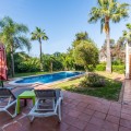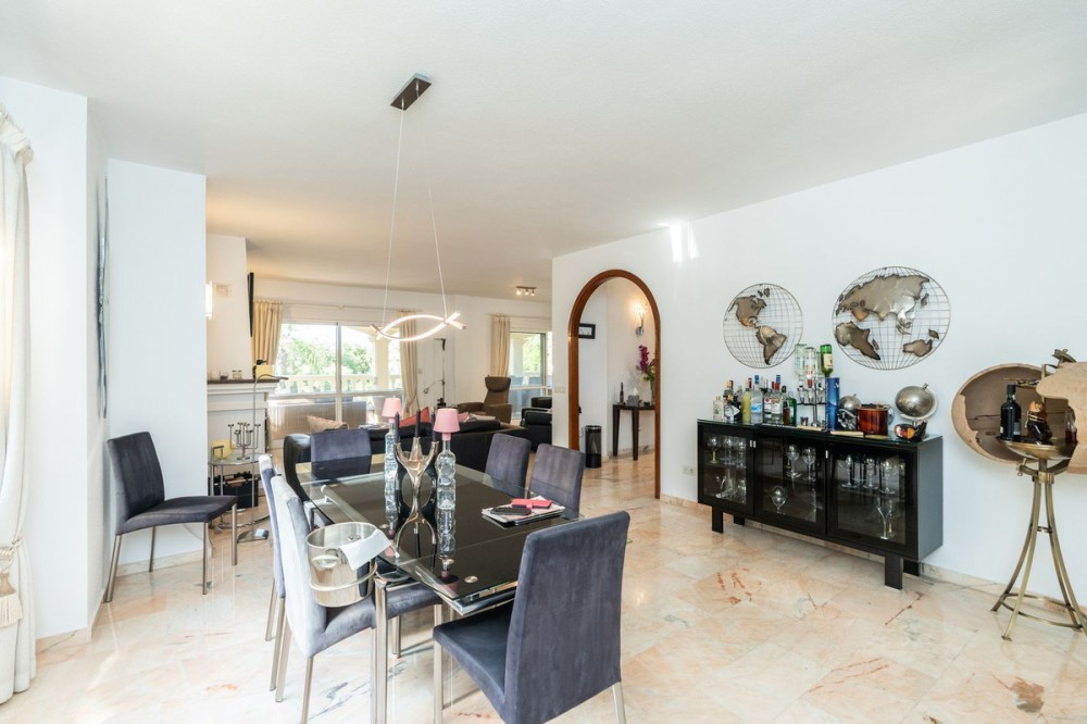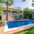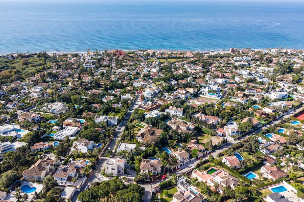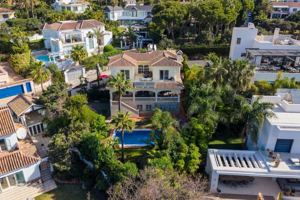 - This elegant detached villa is located in the exclusive Marbesa area, situated in East Marbella. It is an ideal property for those seeking a tranquil residential environment by the sea, combining privacy with proximity to both the beach and the main services and amenities of the area. Easy walking distance to 1 supermarket & 5 restaurants. The home boasts a generous built area of 405 m² and sits on a spacious plot of 750 m². The layout of the villa includes 5 bedrooms and 5 bathrooms across three levels and a total built area of approx. 292 m². The main living room features a fireplace and connects both to the dining area, office and a fully equipped kitchen, as well as an additional practical pantry. Outside, the villa offers a privileged setting thanks to its well-maintained mature gardens, private pool, and spacious terrace, ideal for outdoor living. Additional highlights include a barbecue area and private gardens. Air conditioning ensures a perfect environment throughout the year. Internet available at 590 mb download speed, 609 mb upload! cc tv remotely monitored, 5 cameras via web/i phone/ i pad monitored by security company in the area. On the upper floor: 3 spacious bedrooms with bathroom en suite, 2 of which enjoy access to a private balcony with sea views, while the third bedroom and bathroom provides extra comfort. The lower level includes a self contained guest apartment with kitchen and independent access, and a double garage with plenty of storage space. The location of this villa is unbeatable: just a short distance from the beach and with all services at hand, such as supermarkets and restaurants, as well as quick access to the centre of Marbella. The property is perfect both as a permanent residence and as an investment for renovation, taking advantage of its magnificent potential in one of the most sought-after areas of the Costa del Sol.