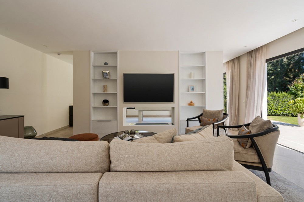 - Introducing this fully renovated villa, ideally situated on a quiet cul-de-sac in the highly sought-after area of Las Brisas, just a short walk from Las Brisas Golf Club. Meticulously designed and finished to an exceptional standard, this home seamlessly blends contemporary interiors with striking modern architecture, enhanced by elegant stonework. Set on a private, mature landscaped plot, the villa offers complete privacy and a tranquil living environment. Upon arrival, the property immediately impresses with its clean architectural lines and sense of scale, framed by the iconic La Concha Mountain as a breath taking backdrop. Inside, the villa welcomes you with beautifully curated light-filled interiors, neutral spaces where expansive windows flood the home with natural light from every angle. The ground floor features a stylish, fully equipped kitchen with adjoining utility room, direct access to a guest en-suite bedroom, and a spacious open-plan living and dining area. A striking modern double-sided fireplace serves as the focal point, offering flexibility to create both formal and informal living spaces. Floor-to-ceiling windows blur the boundary between indoors and out, bringing the lush greenery of the garden into the heart of the home and creating a calm, inviting atmosphere. From both the living area and kitchen, there is direct access to the terrace and landscaped garden. Thoughtfully designed, the terrace provides ample shaded areas for comfortable summer living, while the lower level of the plot features an expansive swimming pool and sunbathing area, perfectly positioned to enjoy sunlight throughout the day and into the evening. Ascending the impressive triple-height staircase, the upper level hosts three additional en-suite bedrooms. The principal suite is particularly luxurious, featuring both a bathtub and walk-in shower and large wrap around terrace, perfect to enjoy the stunning La Concha views. Three of the four bedrooms enjoy stunning views towards La Concha, further enhancing the villa’s appeal. The property is equipped with underfloor heating, hot and cold air conditioning, a security alarm system, and electric blinds for added comfort, privacy, and ease of living. A gated driveway with space for two vehicles completes this exceptional offering. This villa is ideal for those looking to upgrade from an apartment without the upkeep of a large estate, or for buyers seeking a refined holiday home that is both low-maintenance and generously proportioned. Located within close proximity to some of Marbella’s finest golf courses, as well as a short drive from a wide selection of restaurants, cafés, shops, and amenities, this property represents a superb opportunity to enjoy the Marbella lifestyle all year round. For those looking for a smart investment vehicle , this property would also be prime for high rental returns all year around.