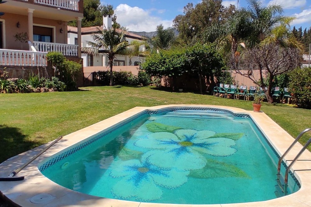 - Exceptional Villa in the Most Prestigious Area of La Sierrezuela Welcome to a property that truly stands out. Located in the lower part of La Sierrezuela — one of the most desirable and convenient areas — this stunning villa offers complete privacy, beautifully landscaped gardens, and generous outdoor spaces designed for effortless living. Within walking distance you’ll find a bus stop, pharmacy, supermarket, restaurants, and schools, making this one of the most practical and sought‑after locations in Mijas. A large pool and open, far‑reaching views create the perfect backdrop for a peaceful and exclusive lifestyle. From the moment you enter, the villa exudes presence and character. High ceilings, generous proportions, and carefully selected architectural details bring elegance and personality to every room. The main floor features a bright and spacious living‑dining area with direct access to the garden and panoramic views. The kitchen, fitted with handcrafted cabinetry, combines charm with functionality. This level also includes a versatile room ideal as an office or additional bedroom, along with a large bathroom. Upstairs, two generous double bedrooms and a full bathroom accompany the impressive master suite — a true highlight of the home — complete with a walk‑in wardrobe and private en‑suite bathroom, offering comfort and privacy. The lower level opens up a world of possibilities. Currently used as storage, it is perfectly suited for conversion into a bar, games room, cinema, or entertainment area. This floor also includes a sauna, a bodega, and ample parking for several vehicles, in addition to a closed garage. The villa has been impeccably maintained, and with a touch of modernisation, it has the potential to become even more extraordinary. A home of this calibre is rare. If you’re ready to elevate your lifestyle, this villa is ready to welcome you.