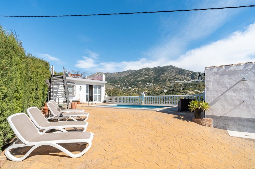 - This exclusive detached villa represents an excellent opportunity for those who value absolute privacy and space without sacrificing proximity to the coast. Set on a generous private plot of 1,605 sqm , the property stands out for its layout across three independent structures: a main residence, a self-contained guest house, and a large garage. Its orientation and elevated position guarantee a constant flow of natural light and unobstructed views that beautifully combine the mountain landscape with the Mediterranean Sea. The property features a total built area of 313 sqm, intelligently distributed to maximize comfort and functionality. The 193 sqm main house comprises three bedrooms (including a master suite) , and spacious living areas equipped with a fireplace and air conditioning. The exterior is designed for year-round enjoyment of the Costa del Sol climate, highlighting a private swimming pool and mature garden areas. A key added value is the 35 sqm guest house , perfect for hosting visitors independently or as a rental investment, alongside a 45 sqm enclosed garage with ample capacity for multiple vehicles. Located in the peaceful area of Diseminado El Hornillo in Mijas, the estate offers a tranquil retreat just minutes away from major transport routes. Its strategic location provides quick access to the A-7 highway, seamlessly connecting to Malaga International Airport and Marbella. Furthermore, it benefits from the convenience of having shopping centers, schools, and golf courses only a short drive away, ensuring an exceptional quality of life in a well-established residential environment.