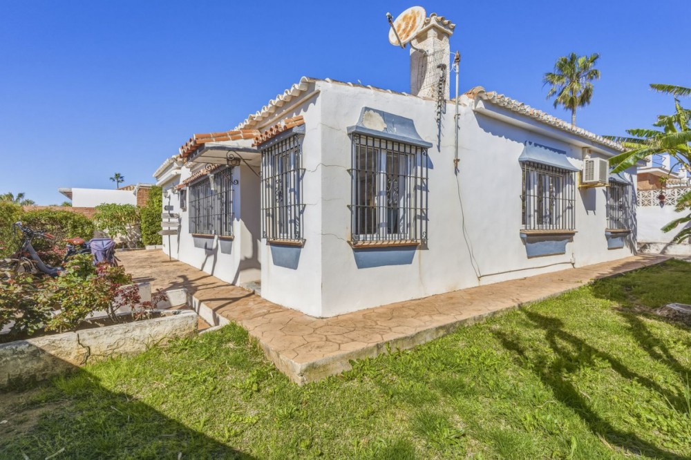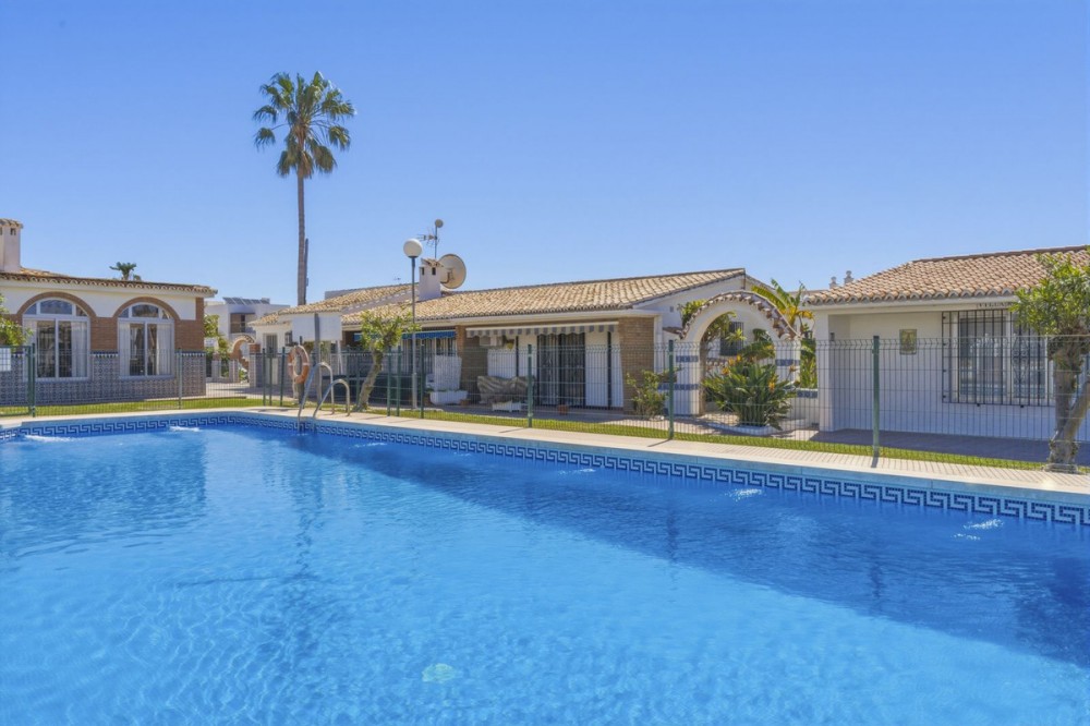 - Beautiful house just a stone's throw from the sea! This lovely house in El Chaparral is 50 meters from the sea. If you enter the house from the back, you come into a utility room where, among other things, the washing machine is located. From here, you enter the spacious, recently renovated kitchen. The kitchen is a beautiful bright space due to the large windows. All necessary built-in appliances are present in the kitchen. From the kitchen, you enter the large living room, a very pleasant space with plenty of natural light. The house has three spacious bedrooms with built-in wardrobes and three bathrooms, two of which have been recently renovated. Around the house, there is a lot of space; you can create various seating areas here, and there is also space to park two cars on the property. Additionally, there is a small shed for storage on the property. The community has a beautiful swimming pool, which is 150 meters from the house. The location of this versatile house is perfect. Via a footbridge, you can reach the beach in just a few minutes. A walk to La Cala de Mijas can be done in 15 minutes. By car, you can reach La Cala de Mijas in 3 minutes. The airport can be reached in 20 minutes. In short, a house with many possibilities, come and see it soon!