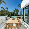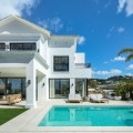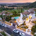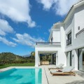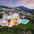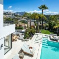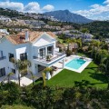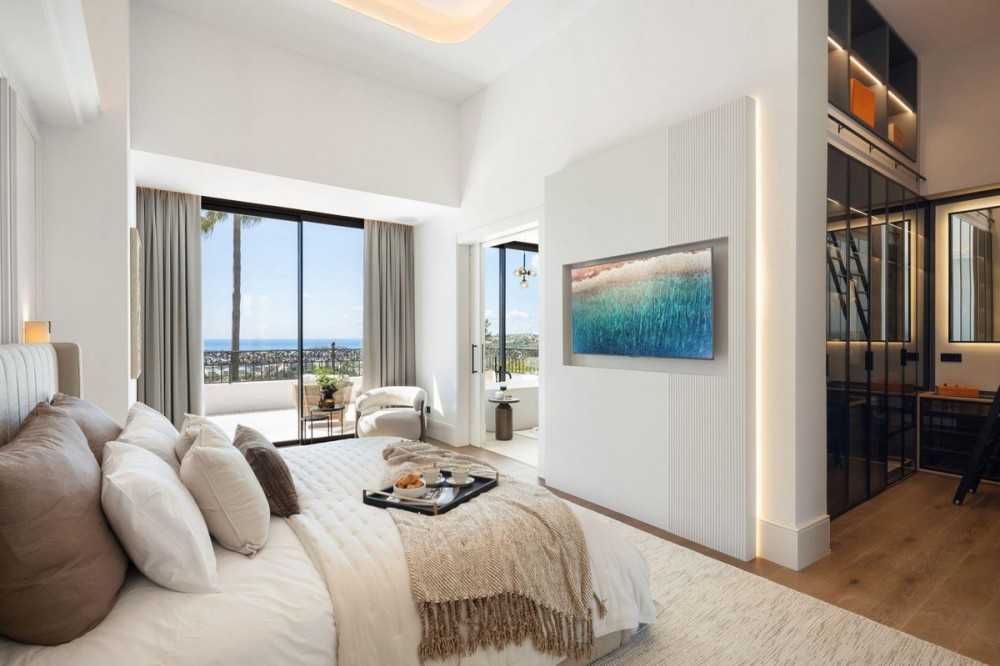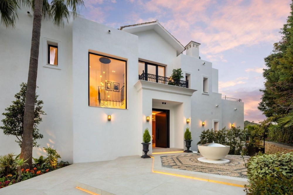 - Stunning Renovated 5-Bed Villa in Los Arqueros, Sea Views, Pool & Smart Home Discover Villa Fortuna, a beautifully renovated luxury villa in the prestigious gated community of Los Arqueros. Boasting spectacular views over Los Arqueros Golf Course and the Mediterranean, this Mediterranean-style home blends timeless design with modern elegance. Spanning 972 m² on a 1,016 m² plot, the villa offers bright, sunlit interiors and expansive terraces. It features five spacious bedrooms, each with ensuite bathroom, plus a guest powder room. The open-plan ground floor includes a sophisticated living area, a custom Danish kitchen equipped with Gaggenau and Siemens appliances, Dekton countertops, and sleek lacquered cabinets. Adjacent is an elegant dining area and a cozy TV lounge—ideal for relaxation or entertaining. Outside, lush landscaped gardens welcome outdoor living: al fresco dining with barbecue, sunbathing zones, and even a private outdoor gym. South-facing orientation ensures optimal sunlight, and the 50 m² pool is perfect for cooling off in luxury. The top floor hosts a luxurious master suite with walk-in closet, lavish bathroom, and private terrace offering panoramic vistas. Two additional ensuite bedrooms and multiple terraces on this level provide ample space for family or guests. The lower level is dedicated to entertainment: a stylish bar/lounge, glass wine cellar for collectors, and a bespoke cinema room. Car enthusiasts will appreciate the garage with glass wall showcasing vehicles. Modern smart home tech includes Control4 system, Sonos sound, underfloor heating, and pre-installed solar panels for sustainability and comfort. Premium finishes—Porcelanic tiles, custom bathroom features—define the villa’s elegant, cohesive aesthetic. The Villa offers luxury, privacy, and proximity to Marbella—ideal for golf lovers or anyone seeking upscale Mediterranean living. Contact Homerun Brokers today to schedule a private viewing of this exceptional property.