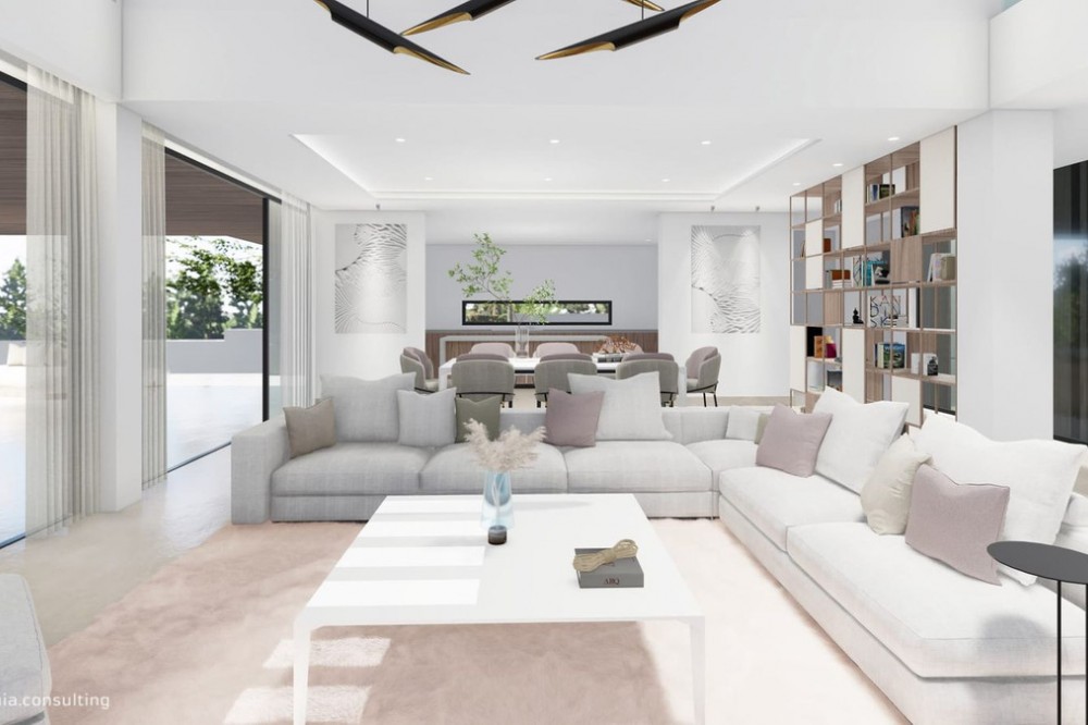 - Exclusive Designer Villa – Hacienda Las Chapas, Marbella Located on a 1.969 m² urban plot in one of the most established and prestigious areas of Marbella East, this extraordinary villa under construction represents a perfect combination of contemporary architecture, privacy, and a premium lifestyle. Designed to maximize light, space, and a connection with the surrounding environment, the home is distributed over two floors, featuring spacious open-plan living areas, large windows, and a seamless integration of indoors and outdoors. The project includes five large bedrooms, including a generously sized master suite, several living areas, a private gym, service areas, and an elegant central staircase as a key architectural feature. The exterior offers landscaped gardens, terraces, a private pool, and areas designed for relaxation and entertainment, all within a tranquil and secure residential setting surrounded by nature, just minutes from the best beaches, international schools, the center of Marbella, and Málaga International Airport (20 minutes away). A property designed for those seeking exclusivity, design, and long-term value in one of the most sought-after locations on the Costa del Sol. Delivery 1st semester 2028