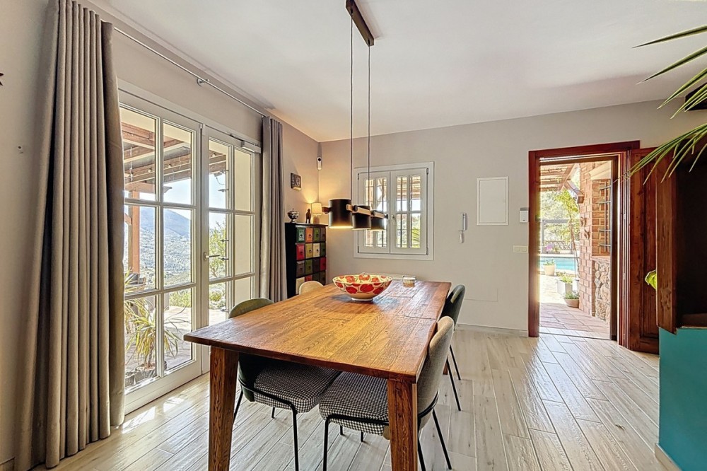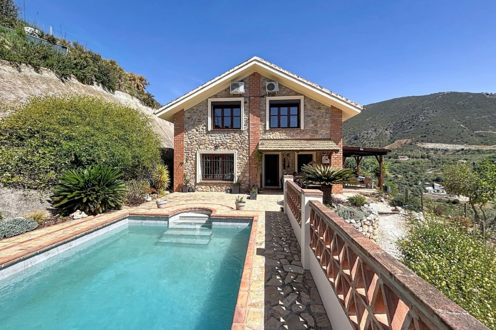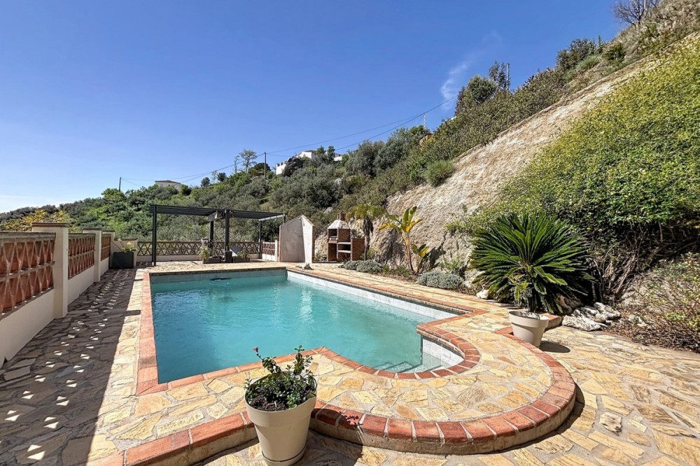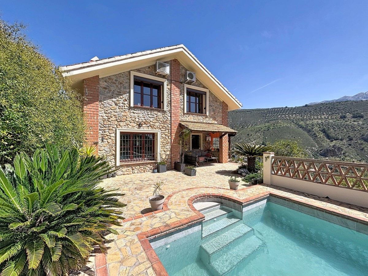 - Magnificent villa for sale in Alcaucín, ideal for those looking for space, comfort and to enjoy the natural environment. In the main house, on the first floor, we find a spacious and bright living-dining room with an open kitchen, creating a modern and functional space, as well as a bedroom and a full bathroom. On the second floor, the house has 3 bedrooms, one of them with an en-suite bathroom, as well as another bathroom, offering comfort and privacy for the whole family. Outside, the property has two covered terraces, perfect for enjoying all year round, as well as a private pool, outdoor shower and barbecue area, ideal for leisure and rest. It also has a separate room, currently used as a storage room, but with the possibility of adapting it as a guest apartment, providing great added value to the property. The house enjoys stunning mountain views and slight sea views, creating a unique and privileged environment. A villa with a lot of potential, in a quiet environment, perfect both as a permanent home and to enjoy getaways. We are delighted to be able to present this property to you soon, either personally or via virtual viewing. Because this world is unique - like our Axarquía. In Andalusia. On the Costa del Sol. Here, on the sunny side of life...